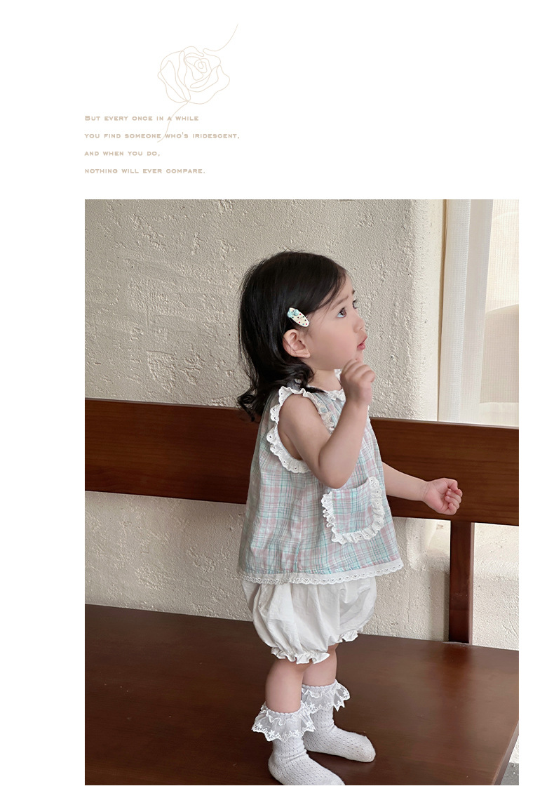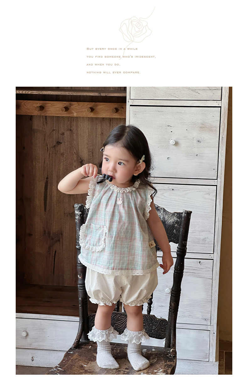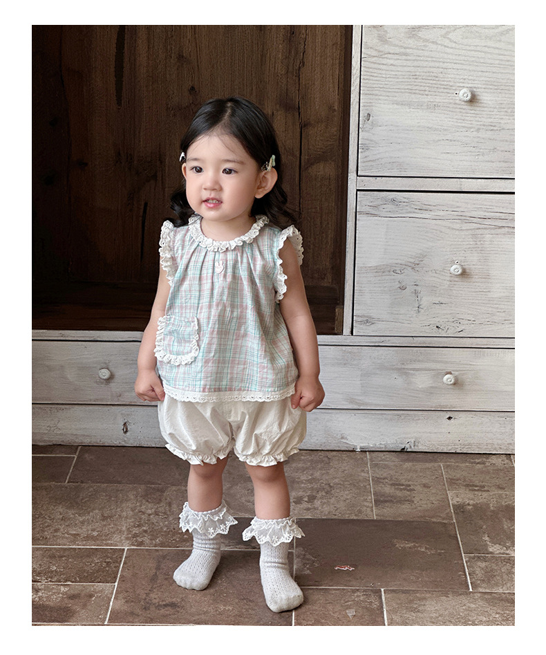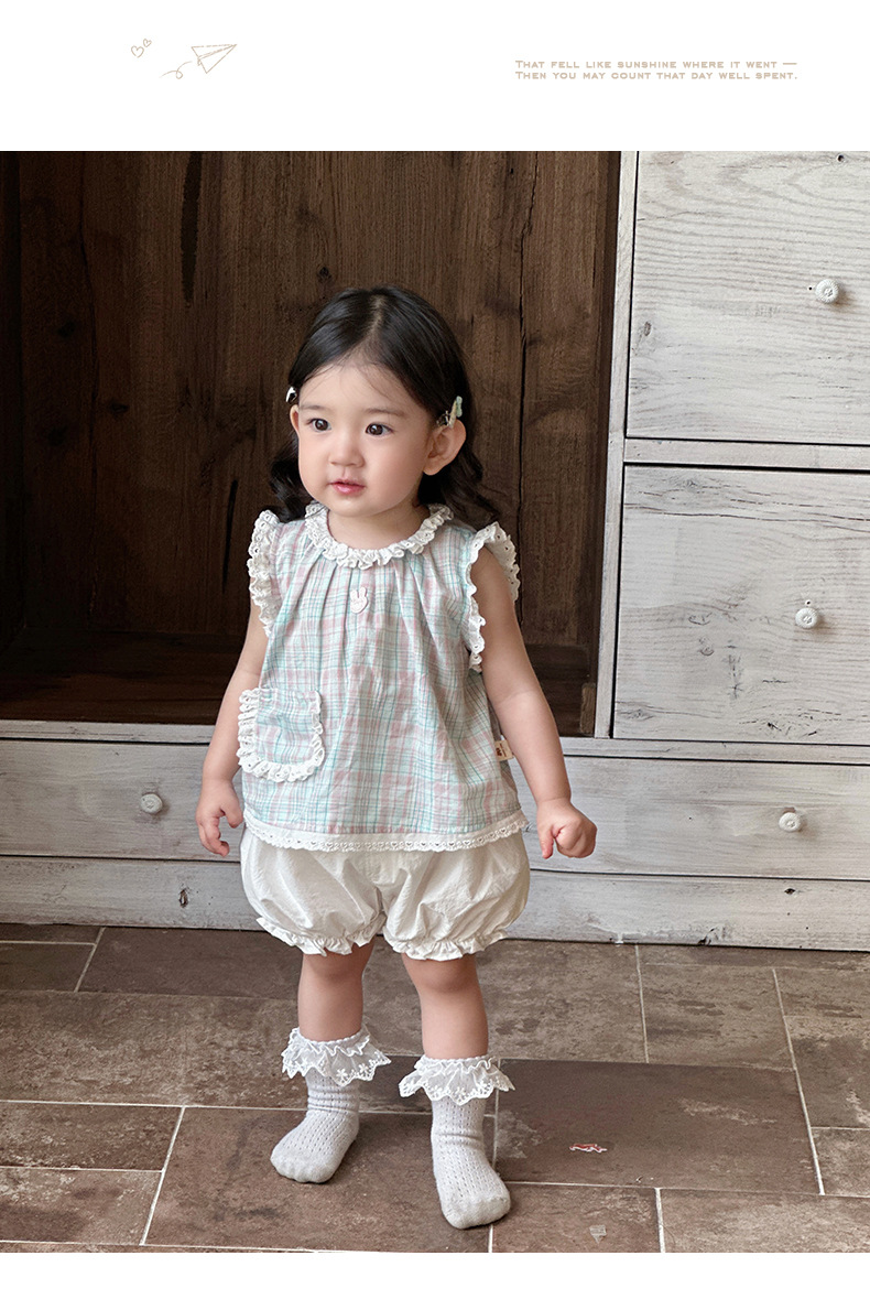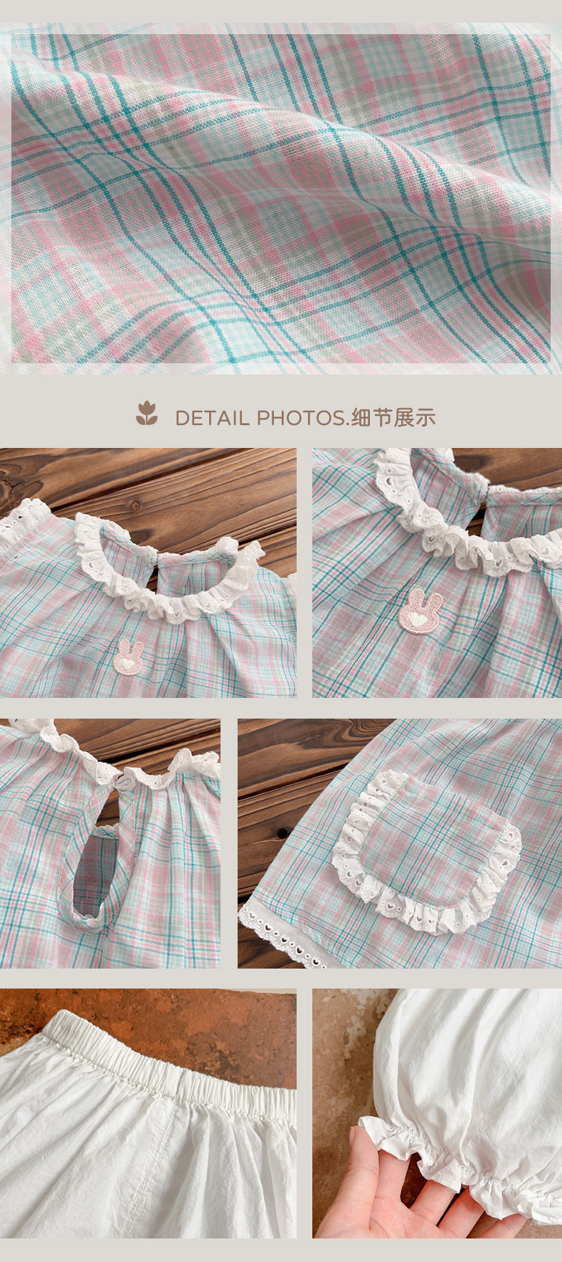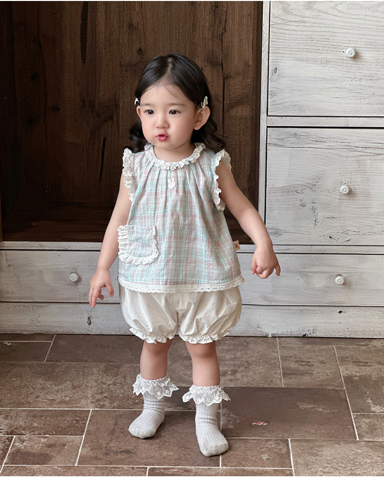 Traje pequeño de estilo occidental de la luna pequeña 2025 chaleco de encaje de verano lindo conejo bebé salir traje de dos piezas