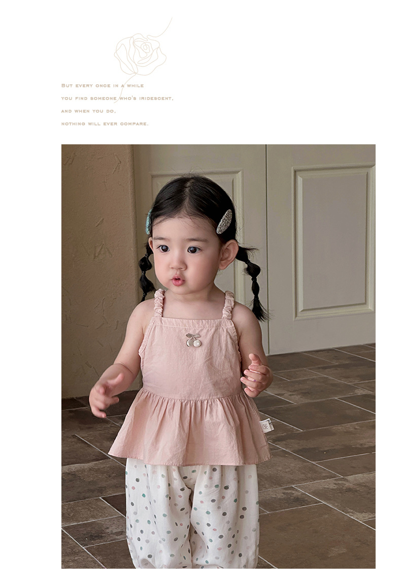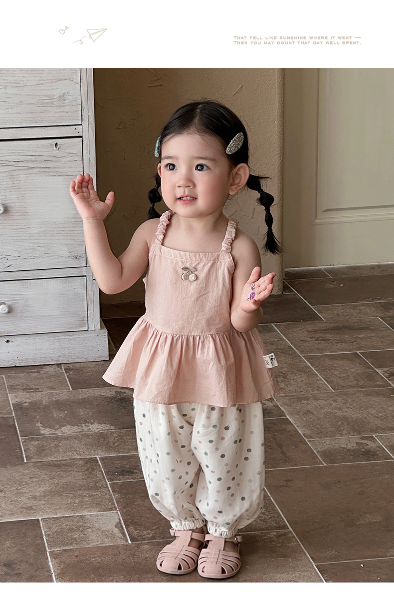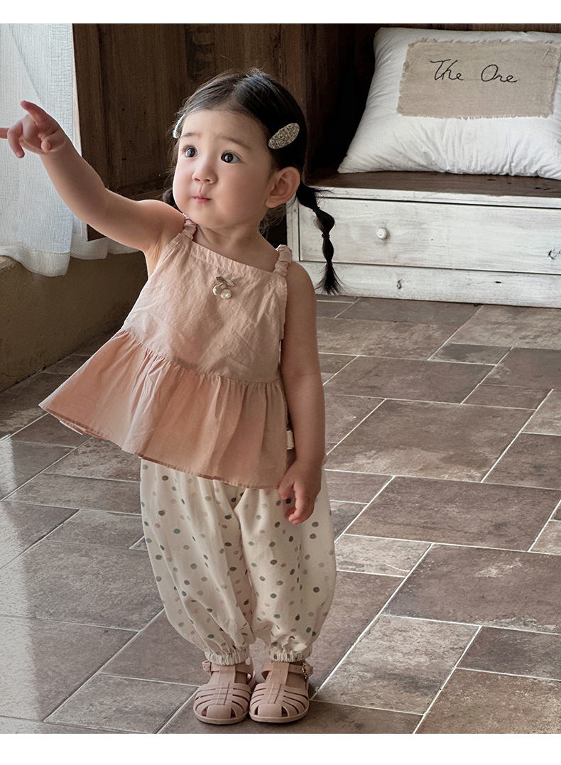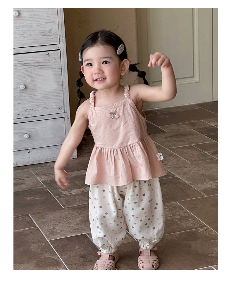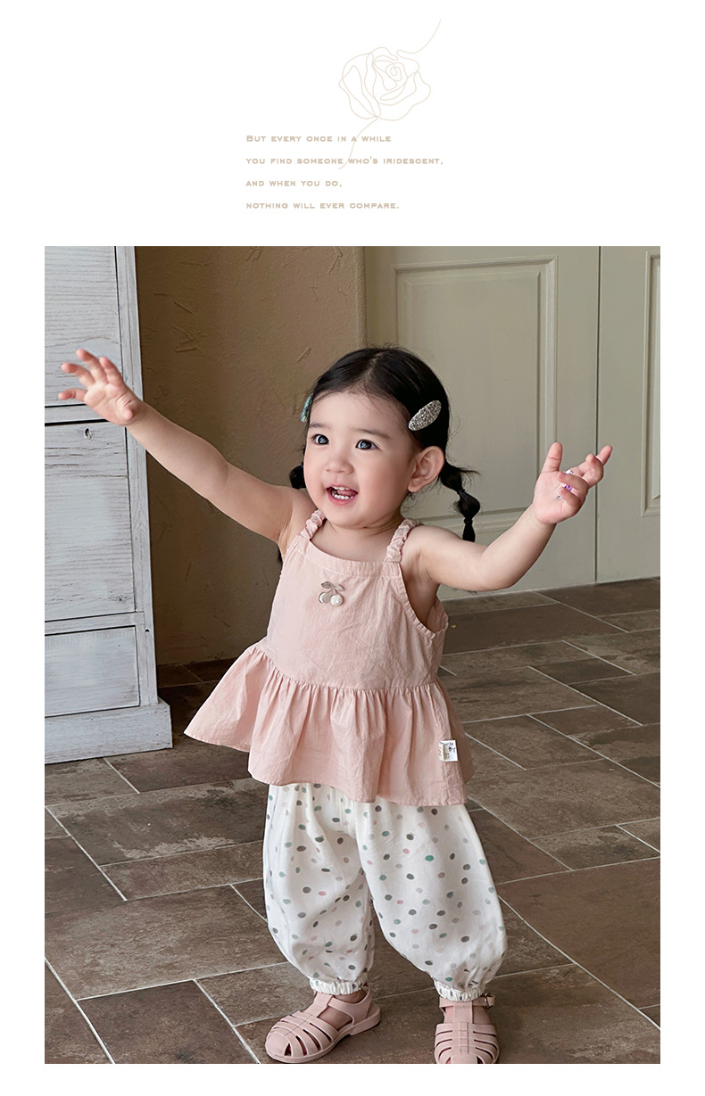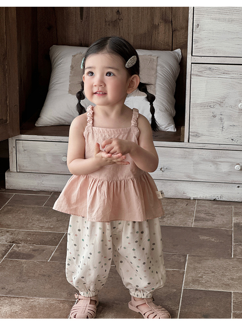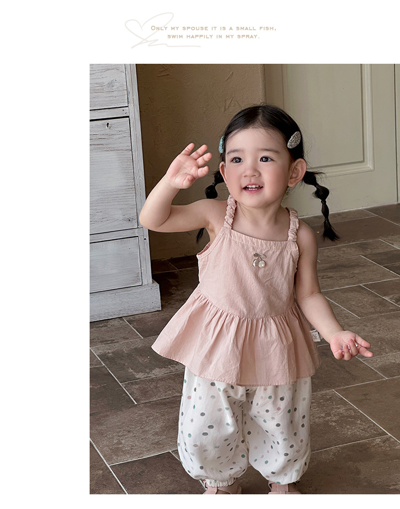 Traje de niña Youhe nuevo estilo de verano con tirantes, pantalones de punto de estilo occidental de luna pequeña, traje de dos piezas para bebés y niños pequeños