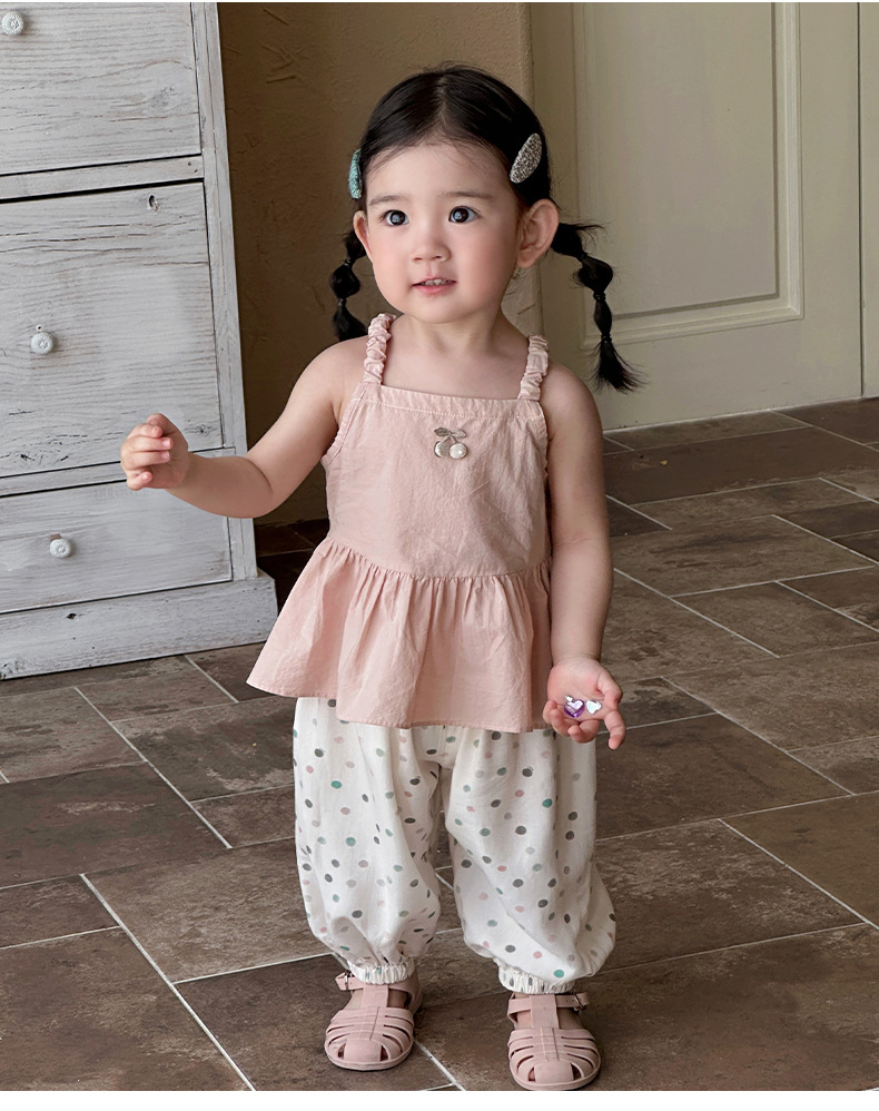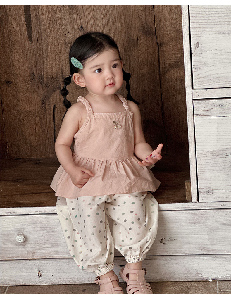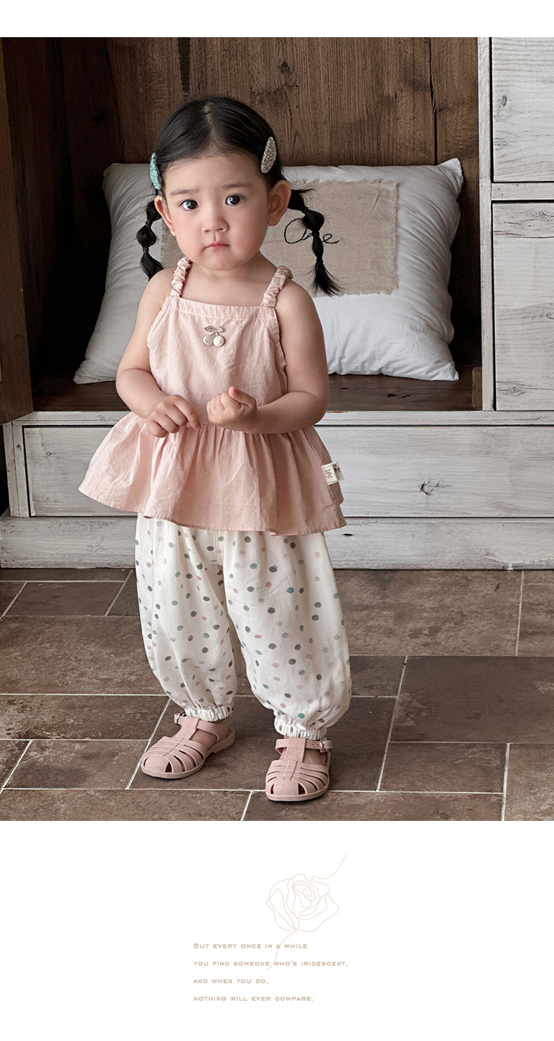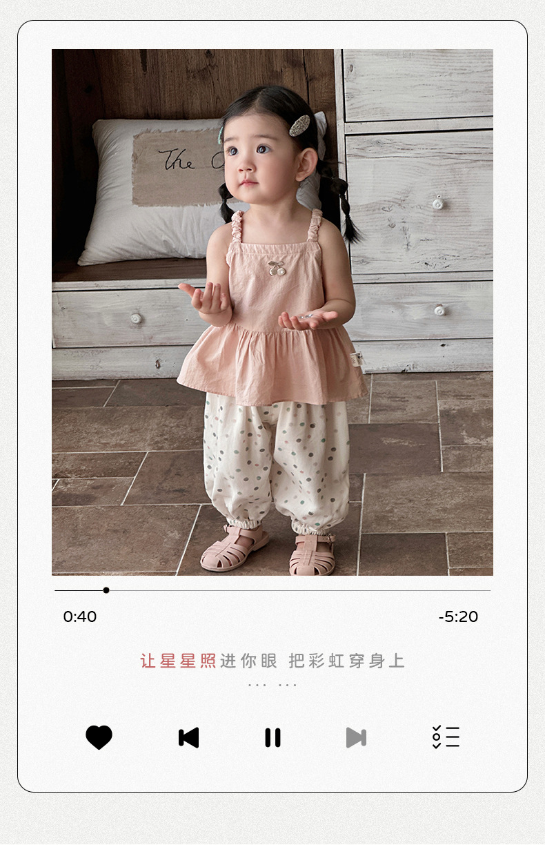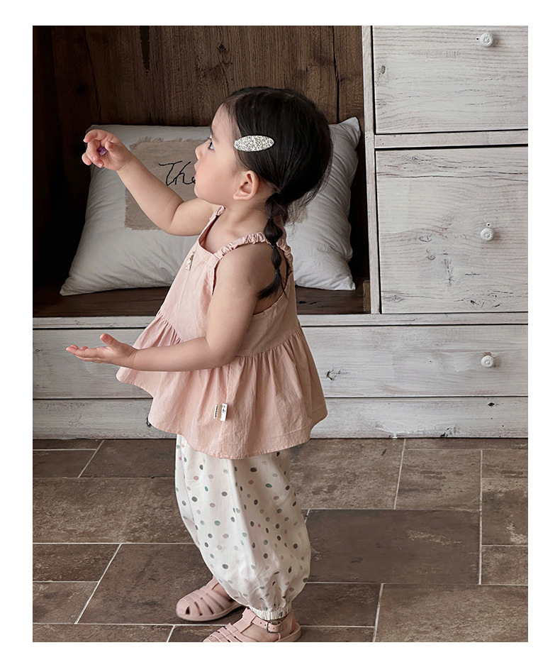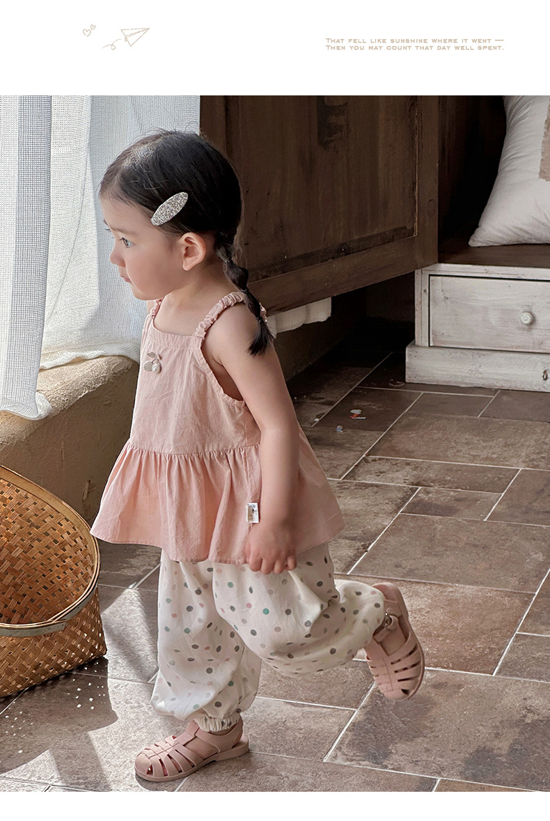 Traje de niña Youhe nuevo estilo de verano con tirantes, pantalones de punto de estilo occidental de luna pequeña, traje de dos piezas para bebés y niños pequeños