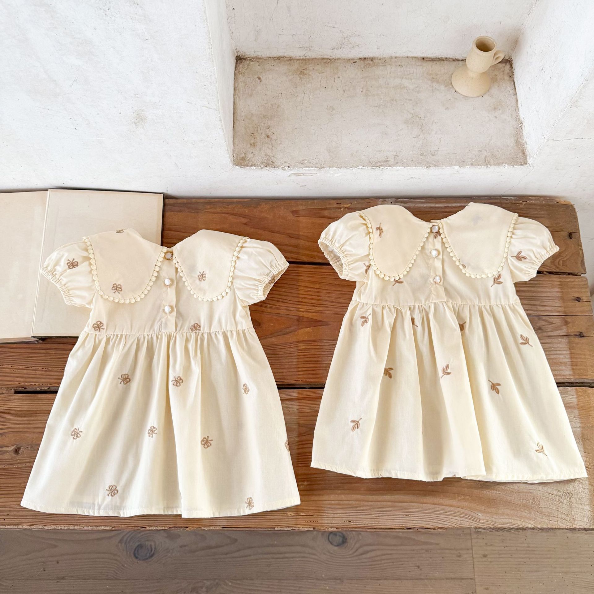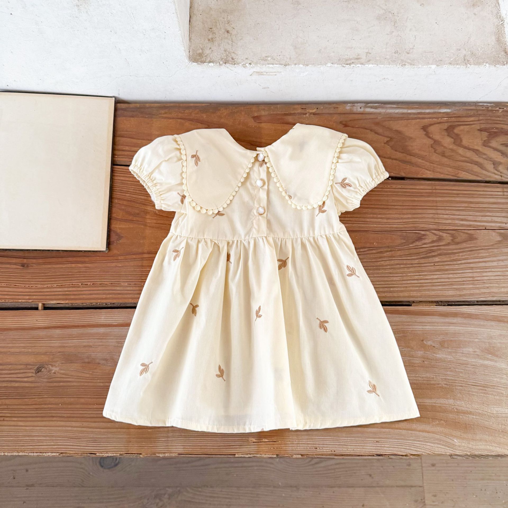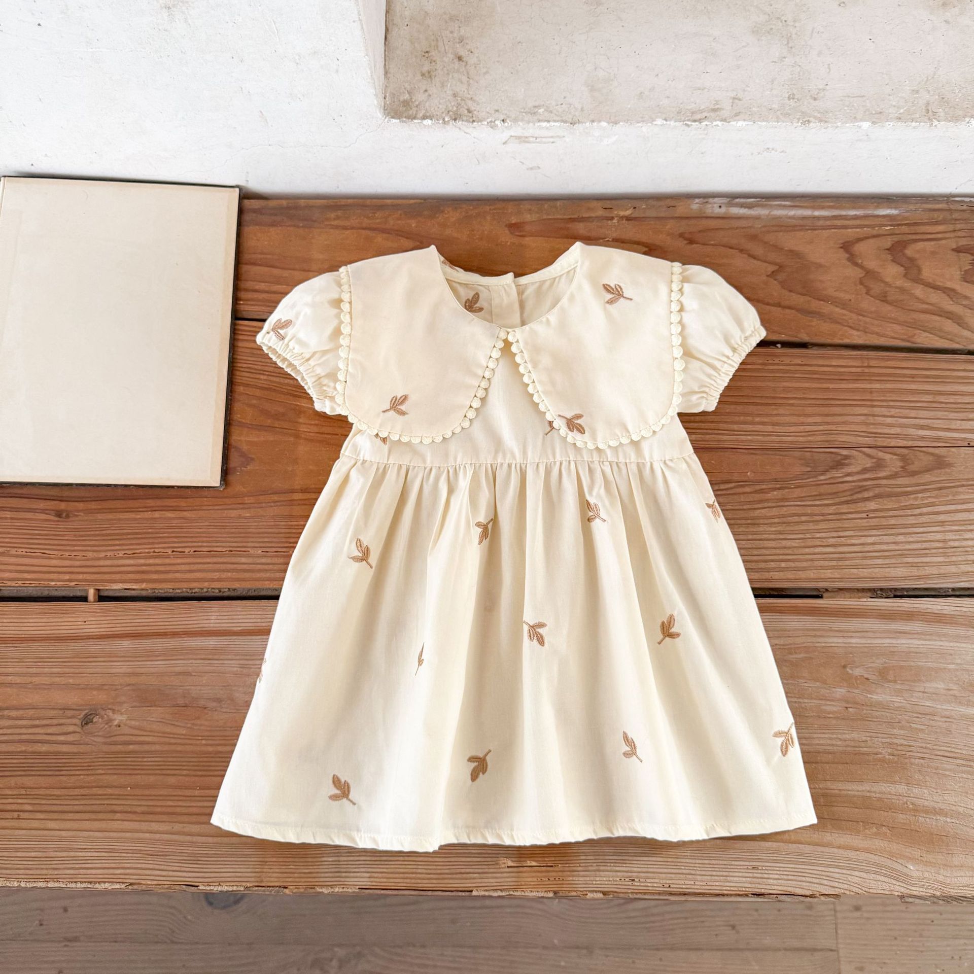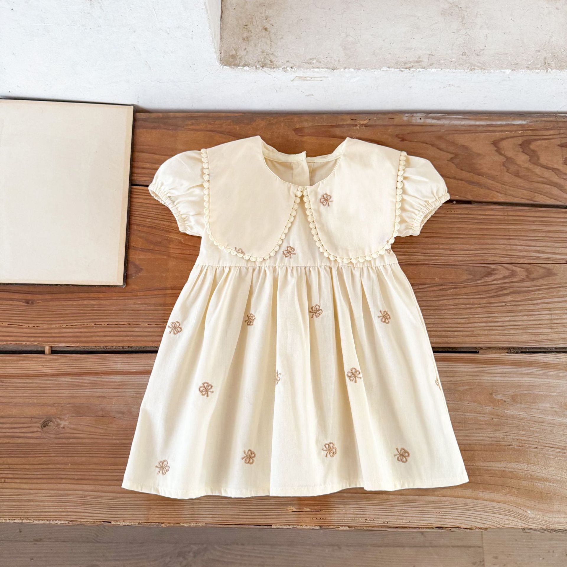 Ins vestido de manga corta con solapa bordada de dibujos animados de algodón para niñas coreanas