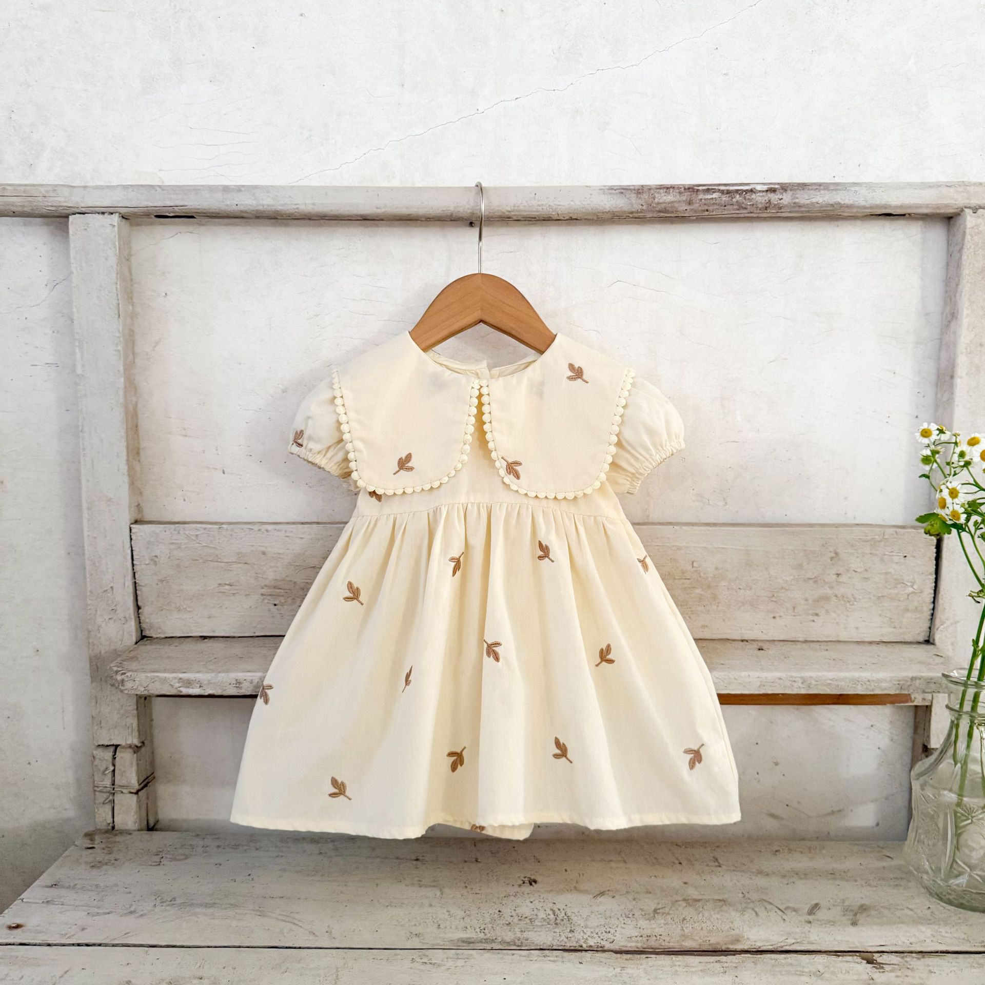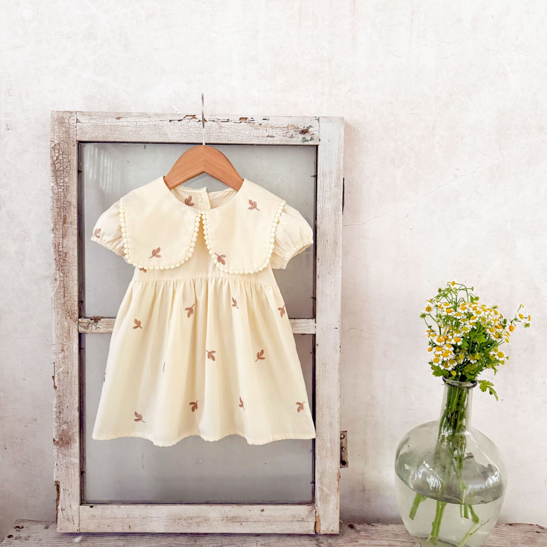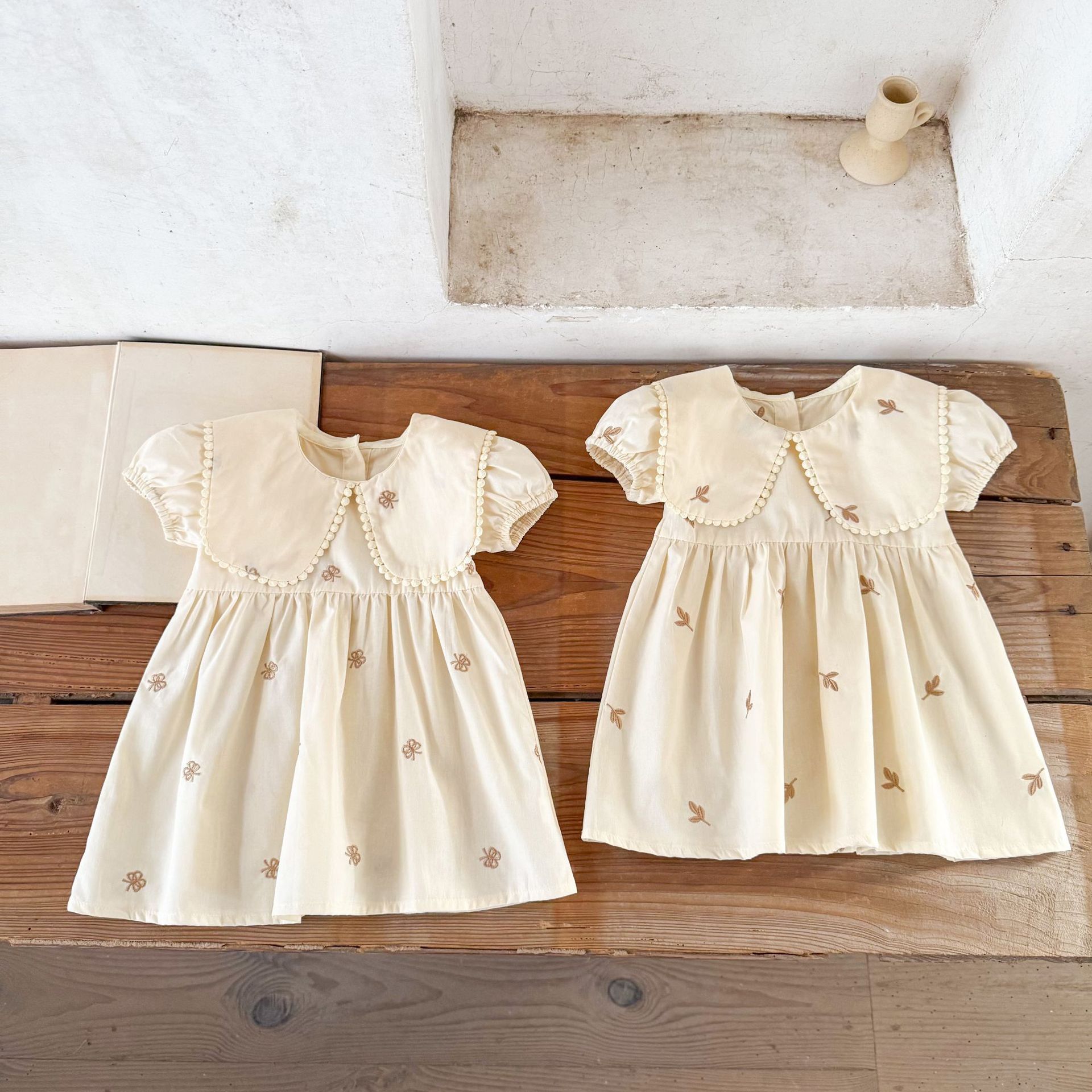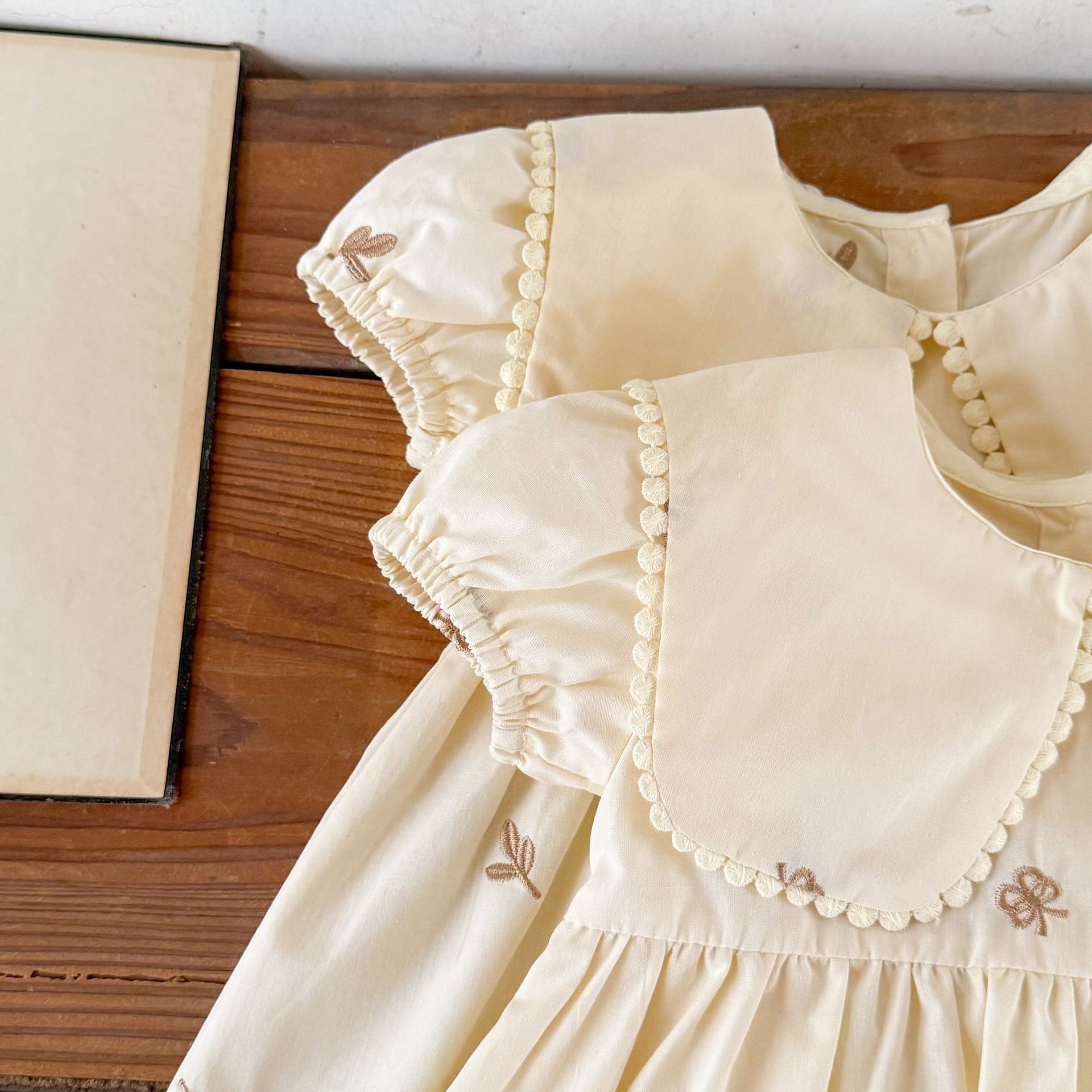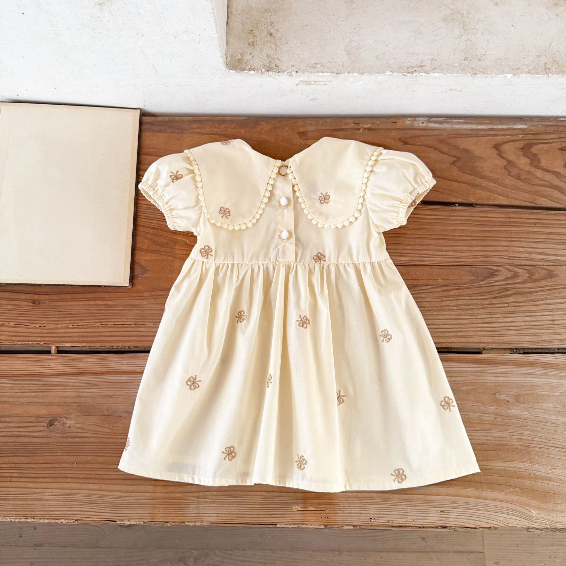Ins vestido de manga corta con solapa bordada de dibujos animados de algodón para niñas coreanas