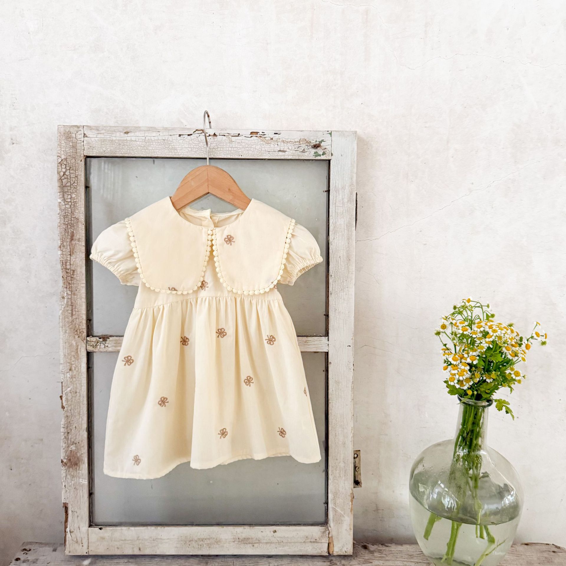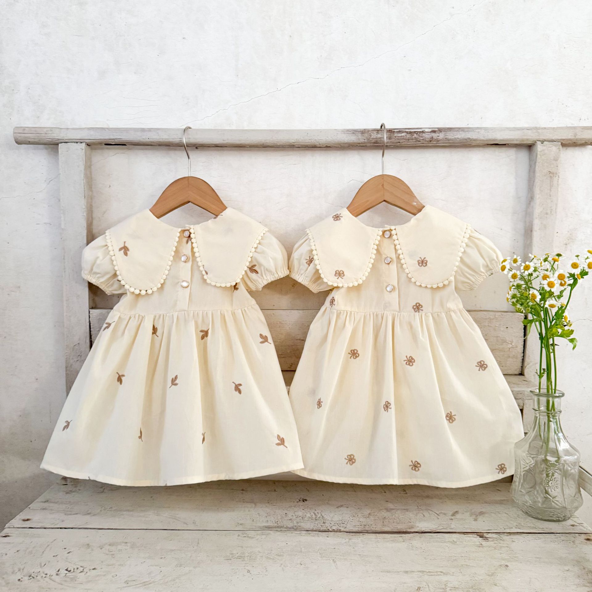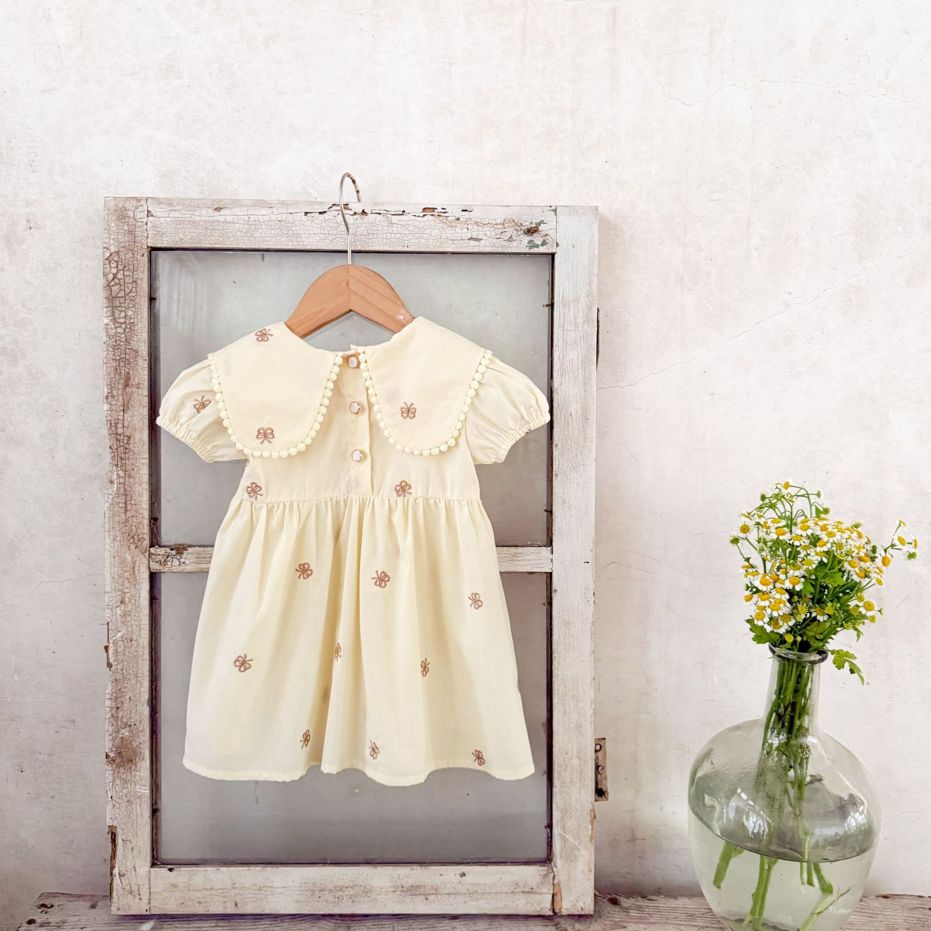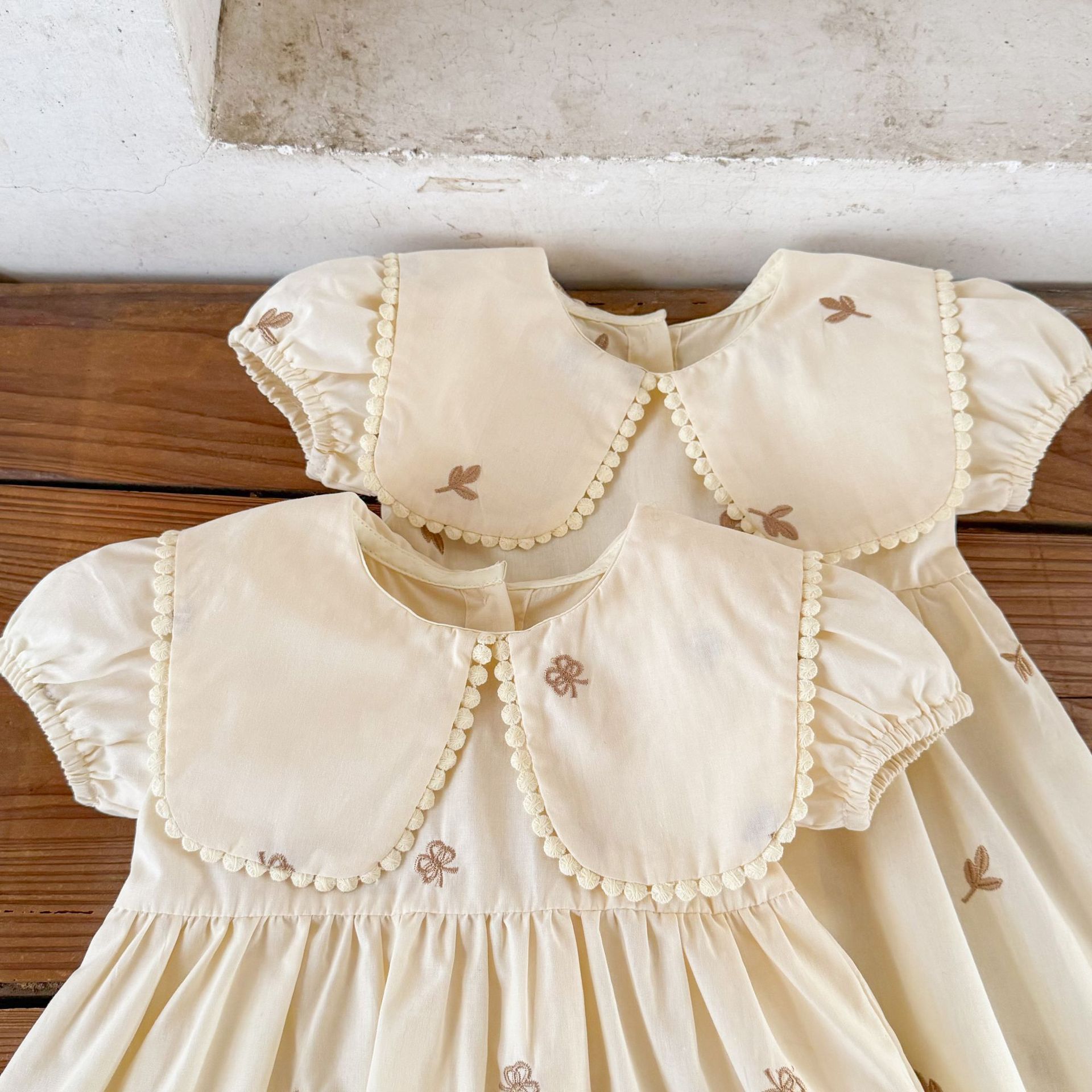 Ins vestido de manga corta con solapa bordada de dibujos animados de algodón para niñas coreanas