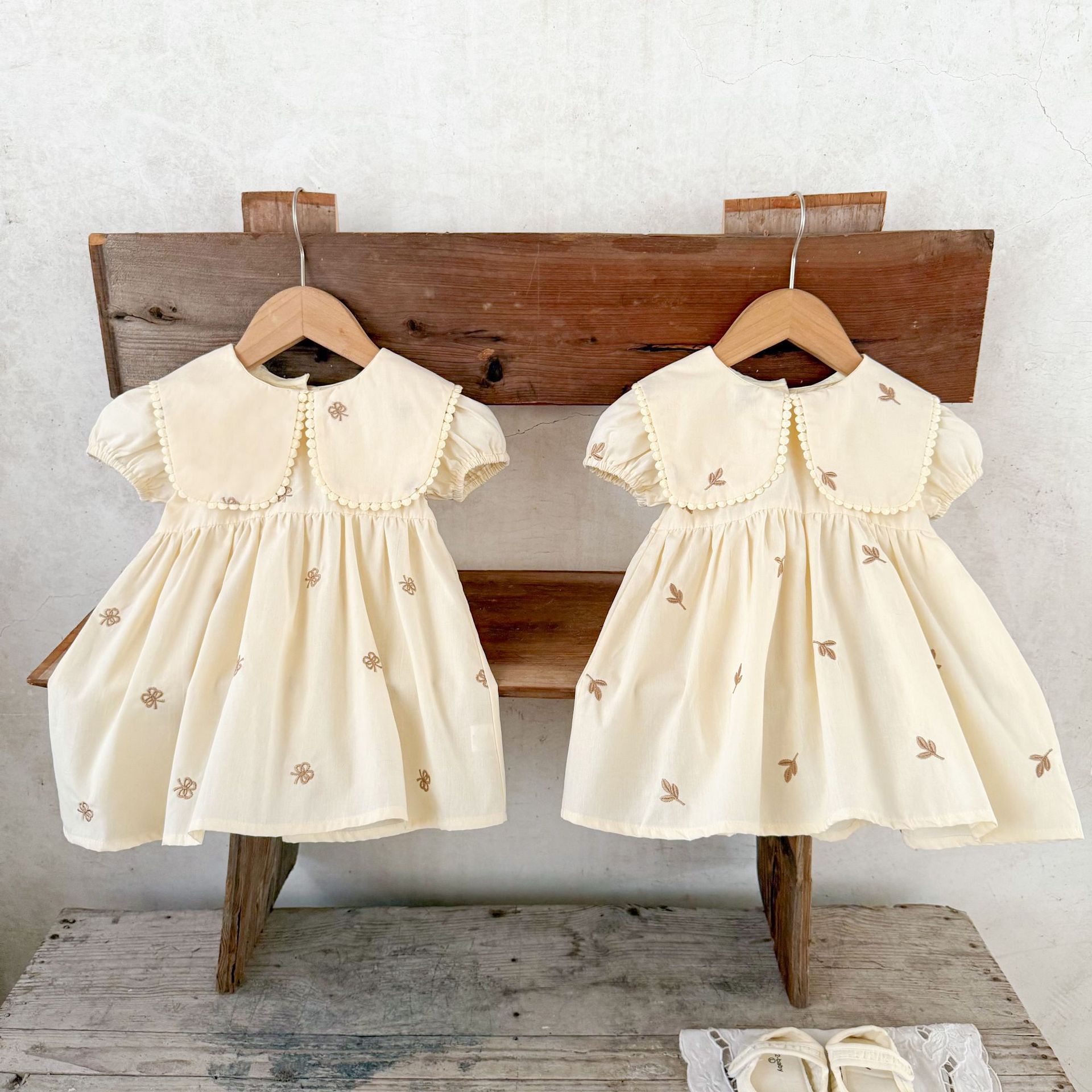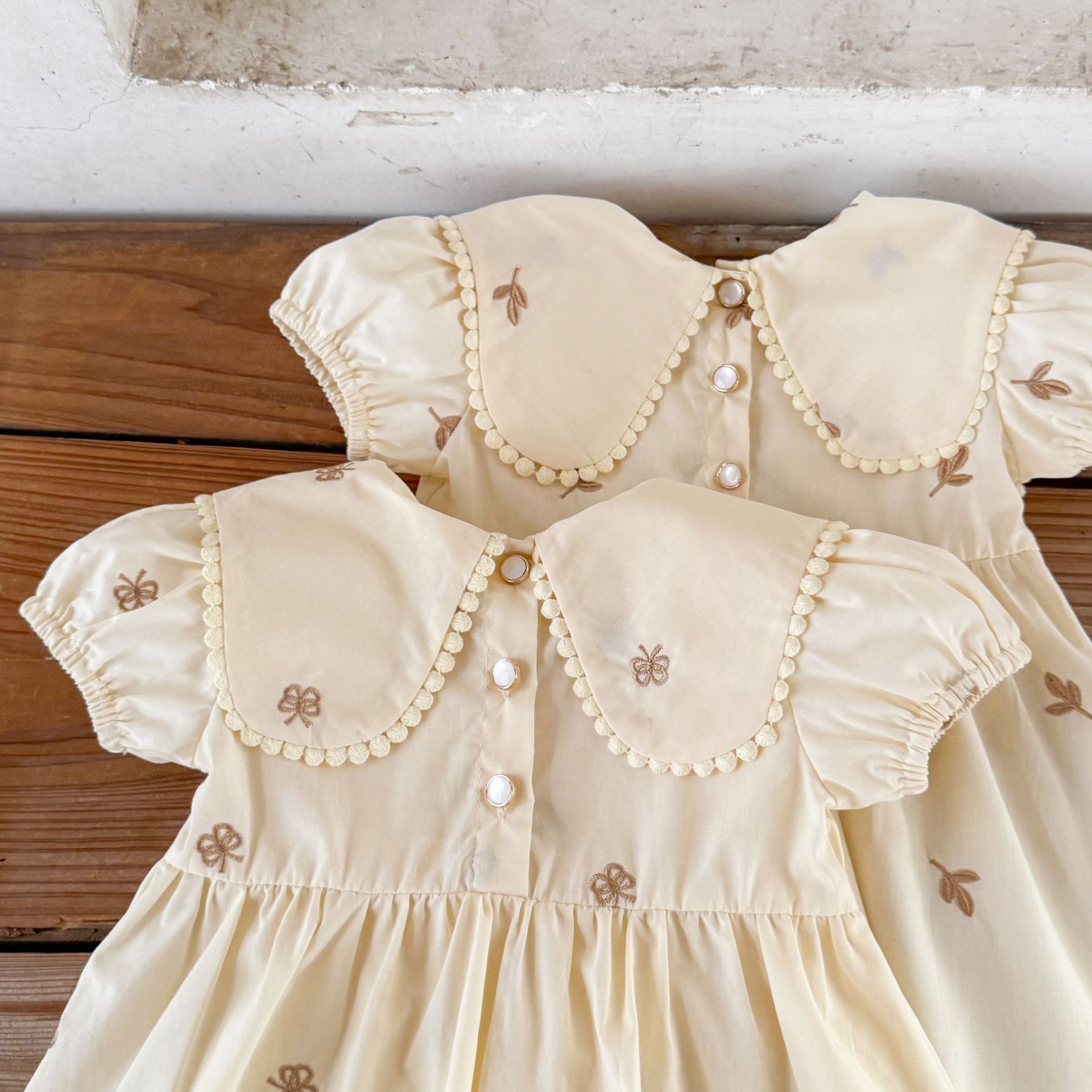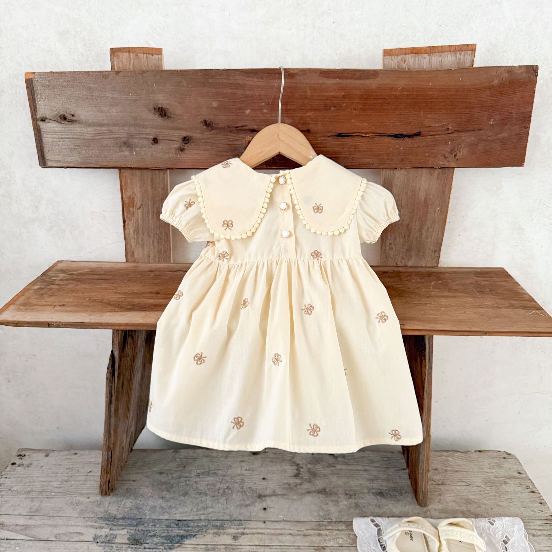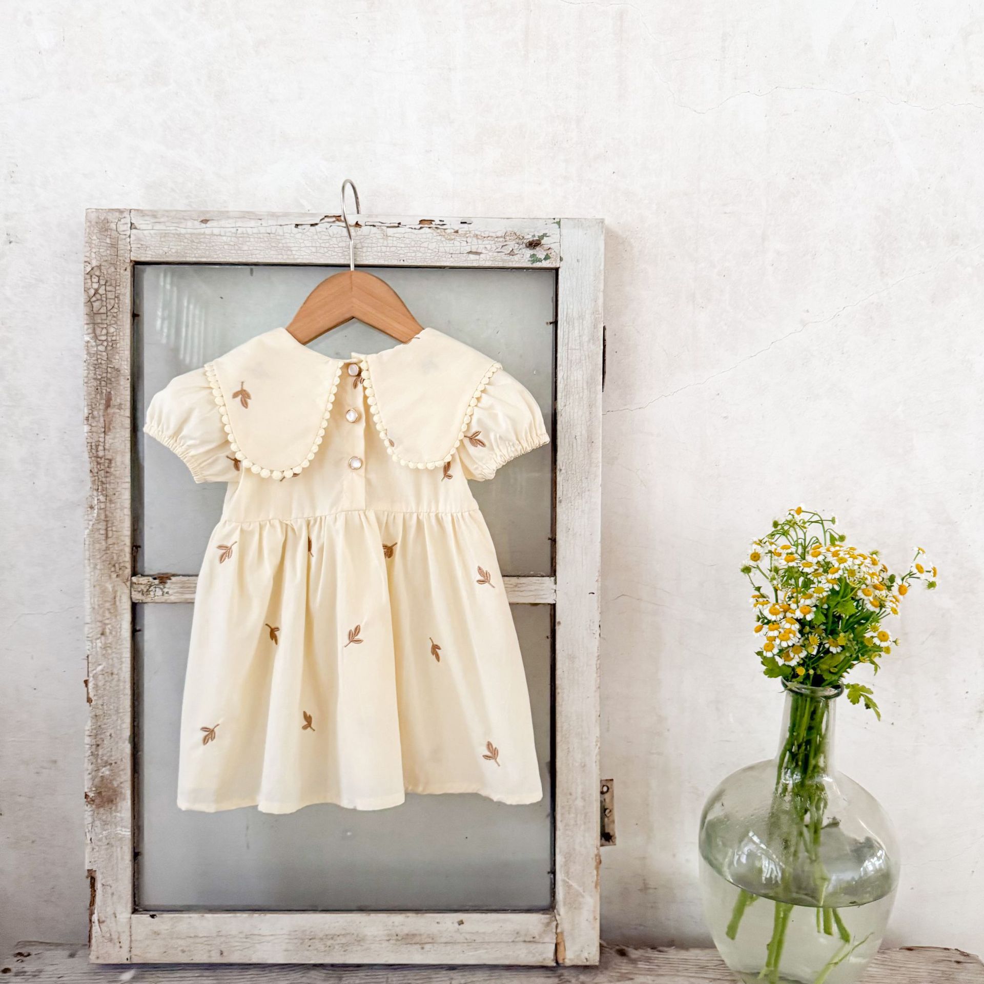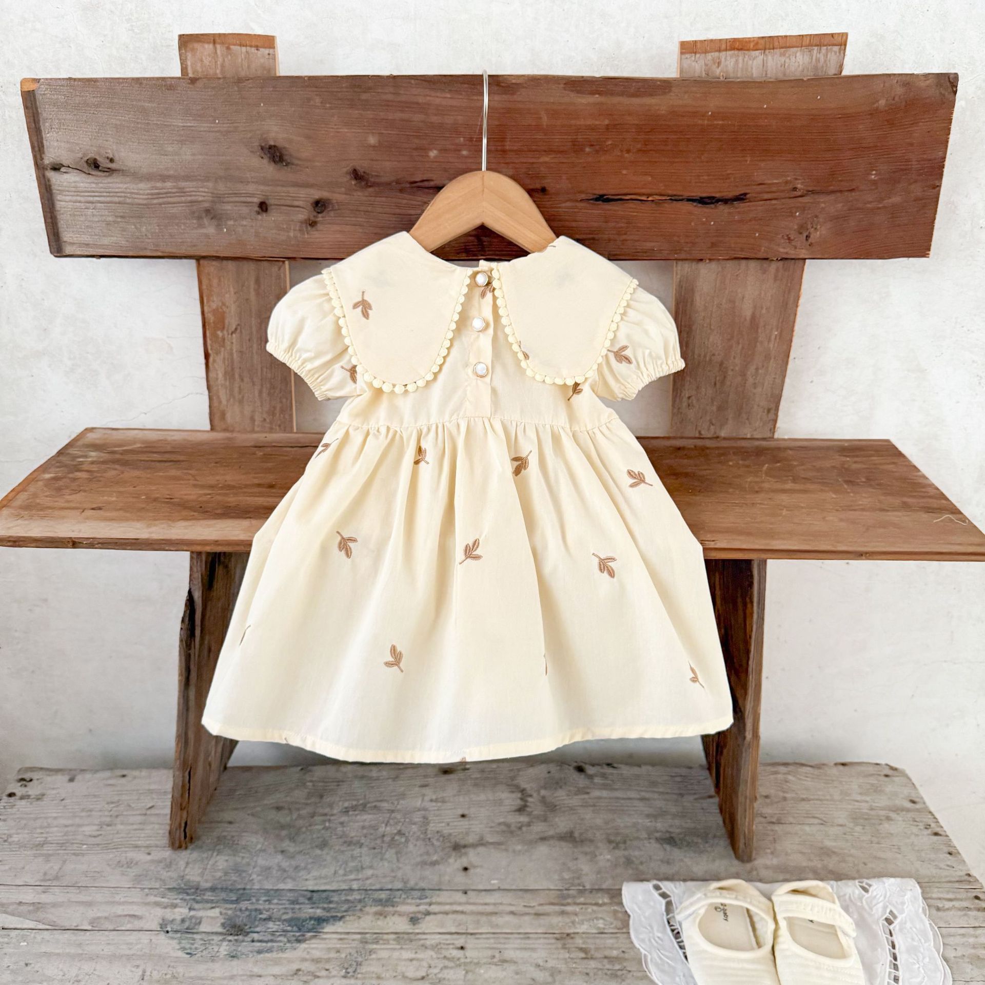 Ins vestido de manga corta con solapa bordada de dibujos animados de algodón para niñas coreanas