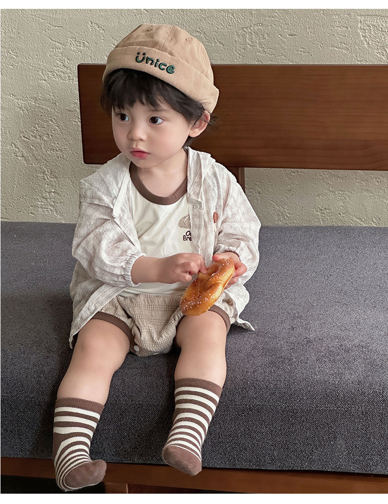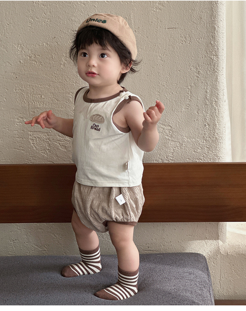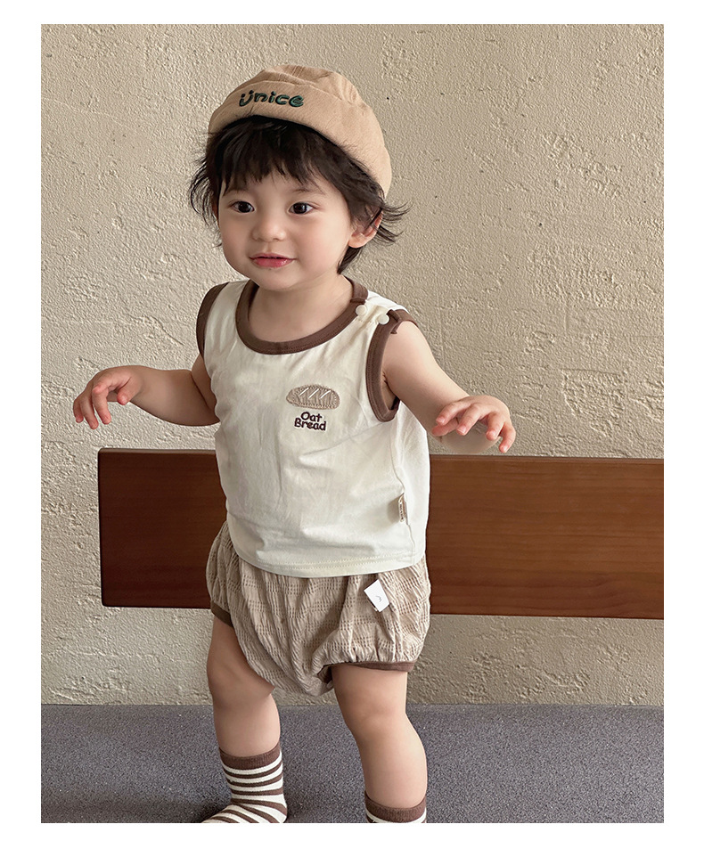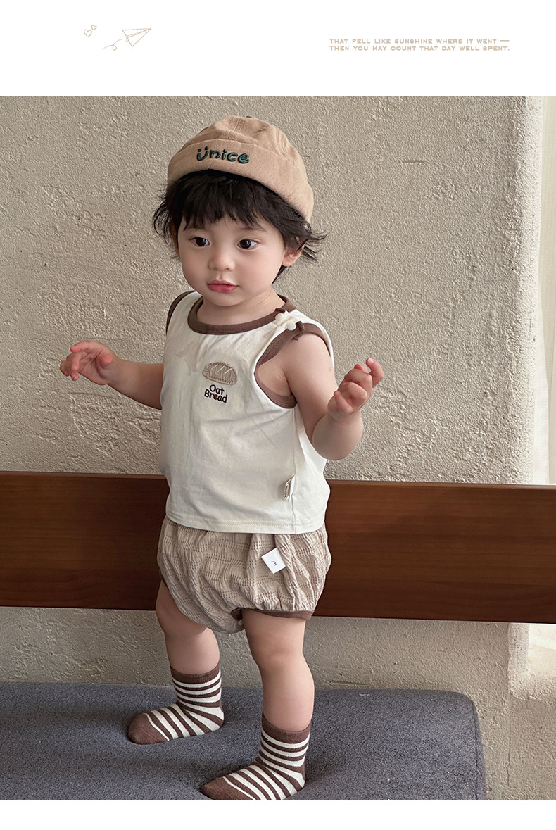 Ropa de bebé verano estilo coreano traje delgado clase A ropa de protección solar para bebés para hombres chaleco pantalones cortos ropa de salida de tres piezas