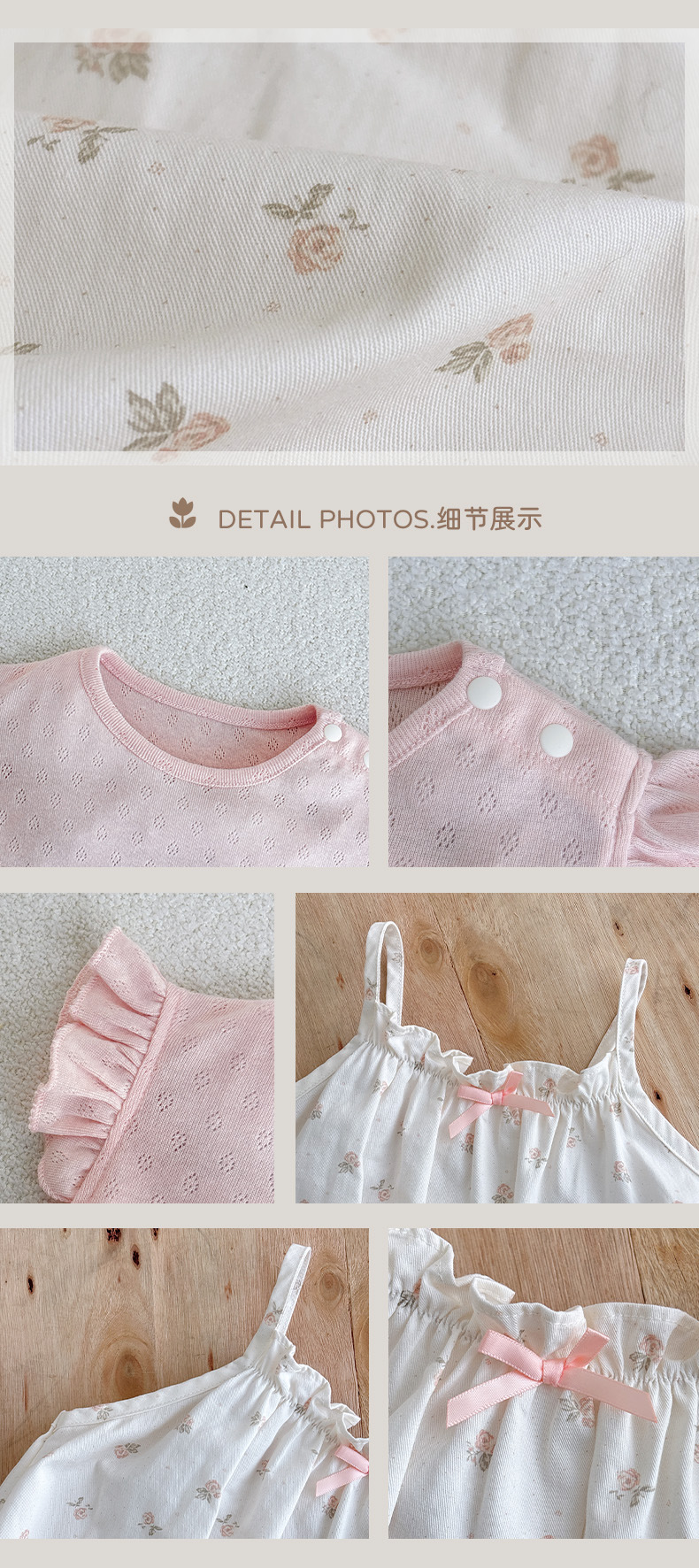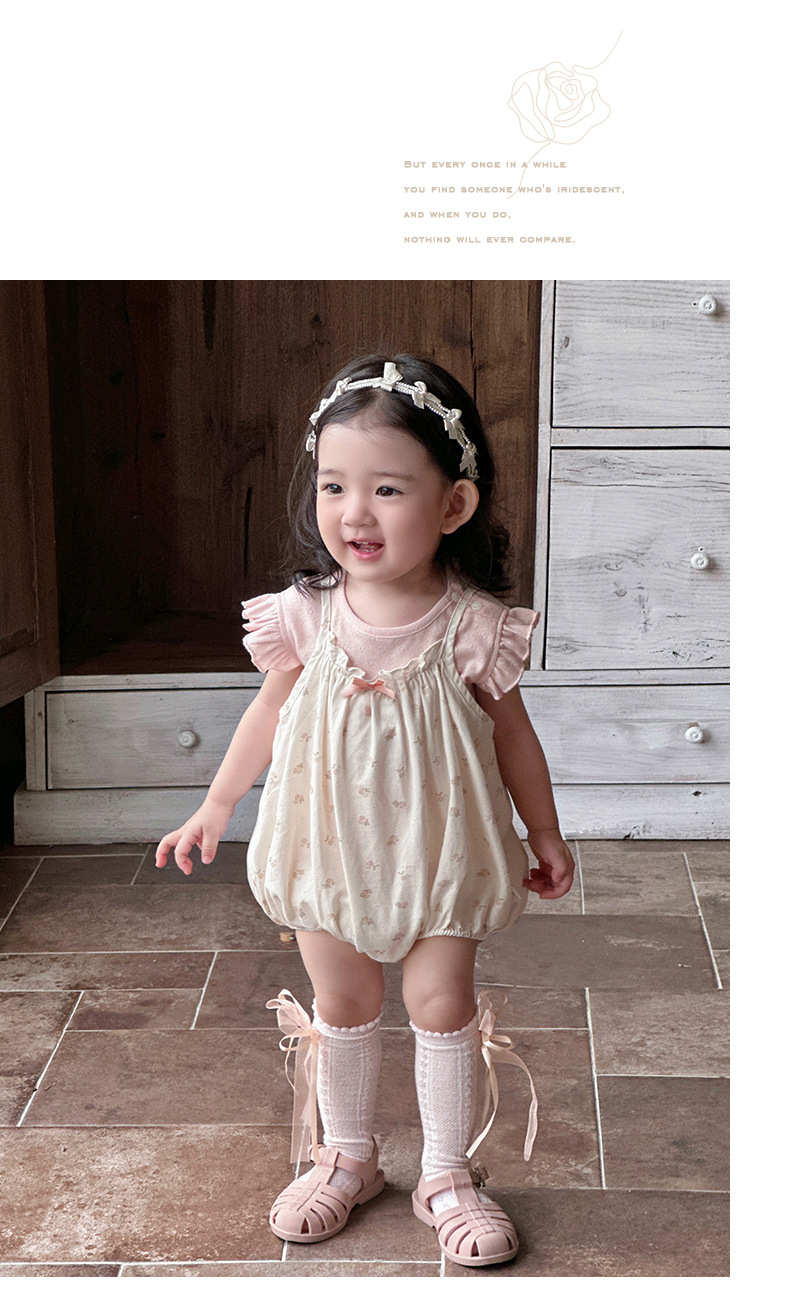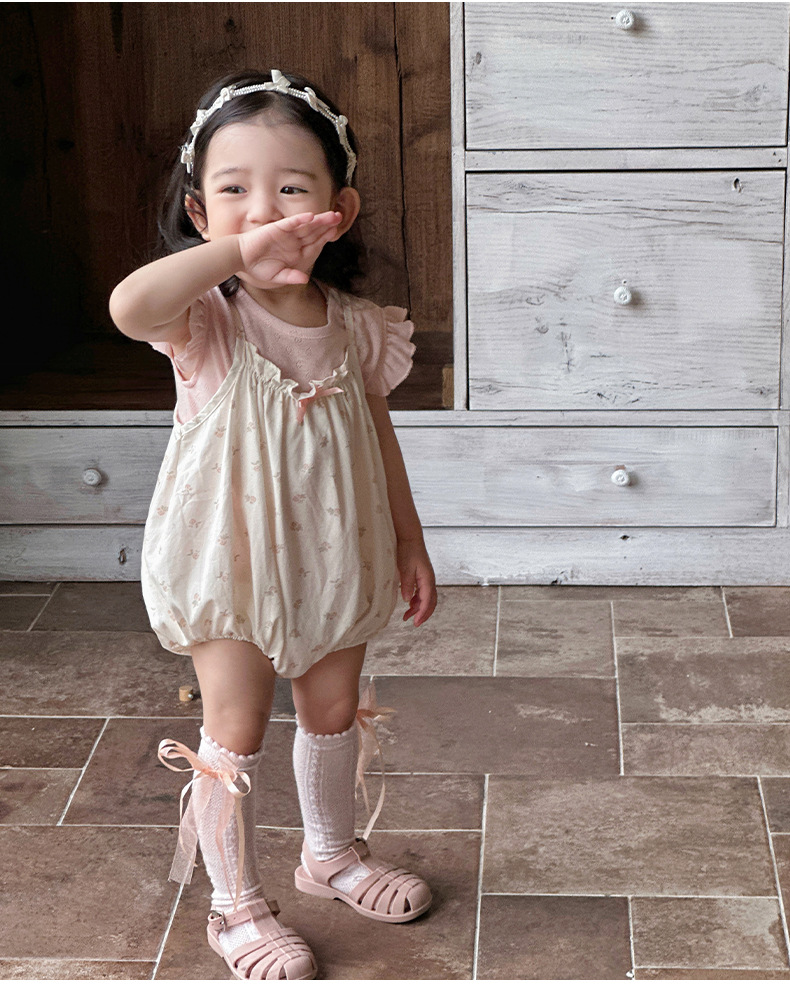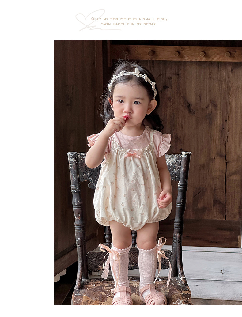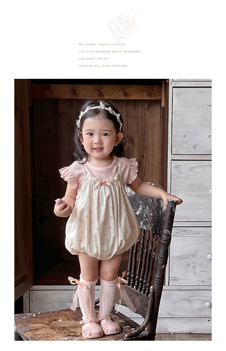 Traje de baby super lindo 2025 nuevo verano de 1 a 3 años de edad, traje de dos piezas de manga voladora floral pequeña delgada