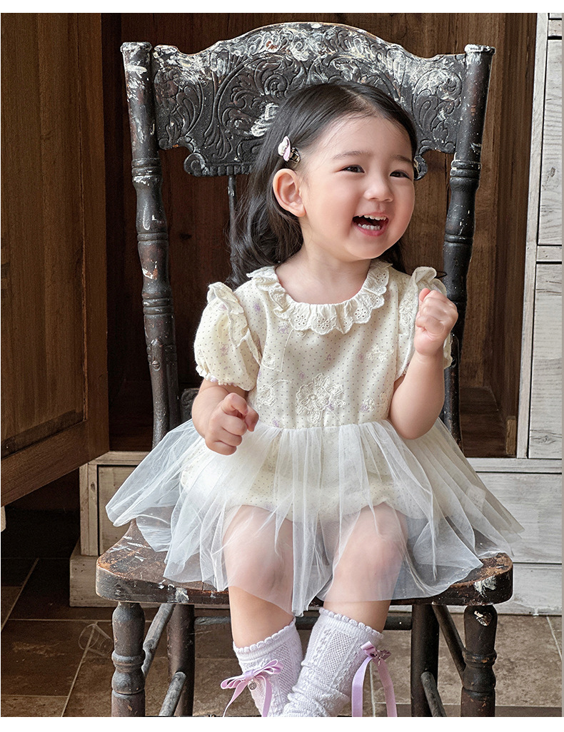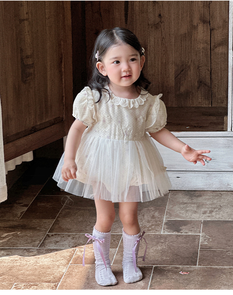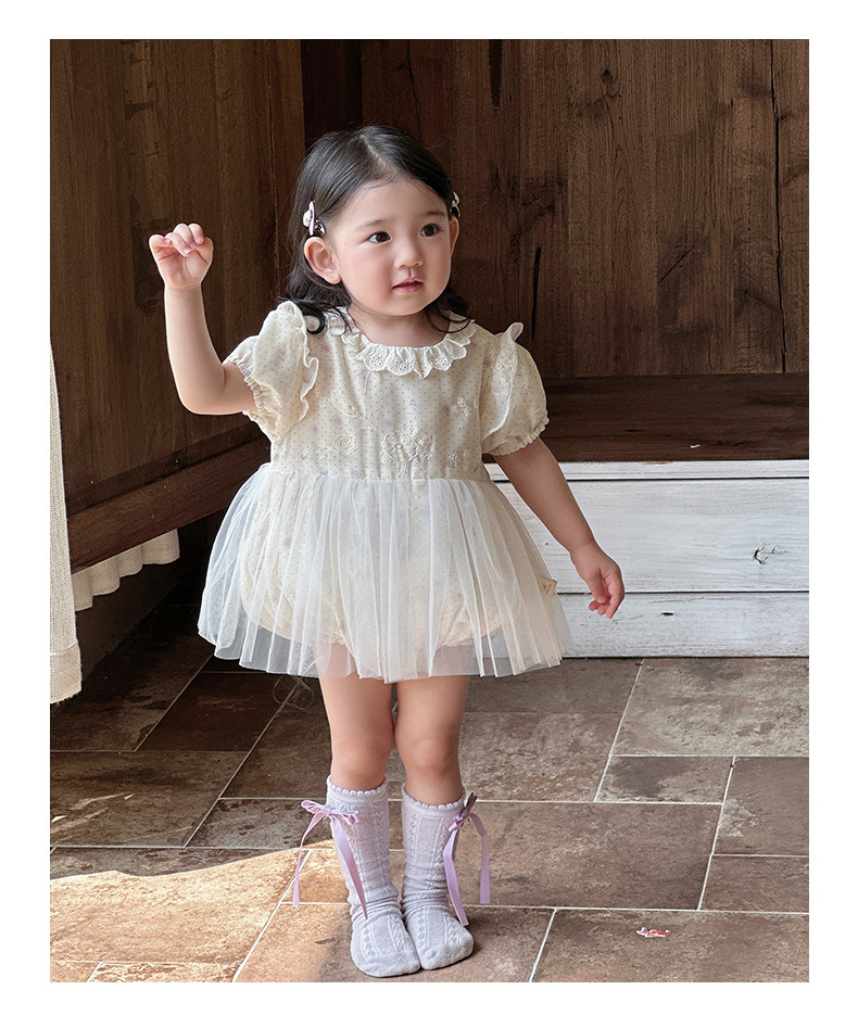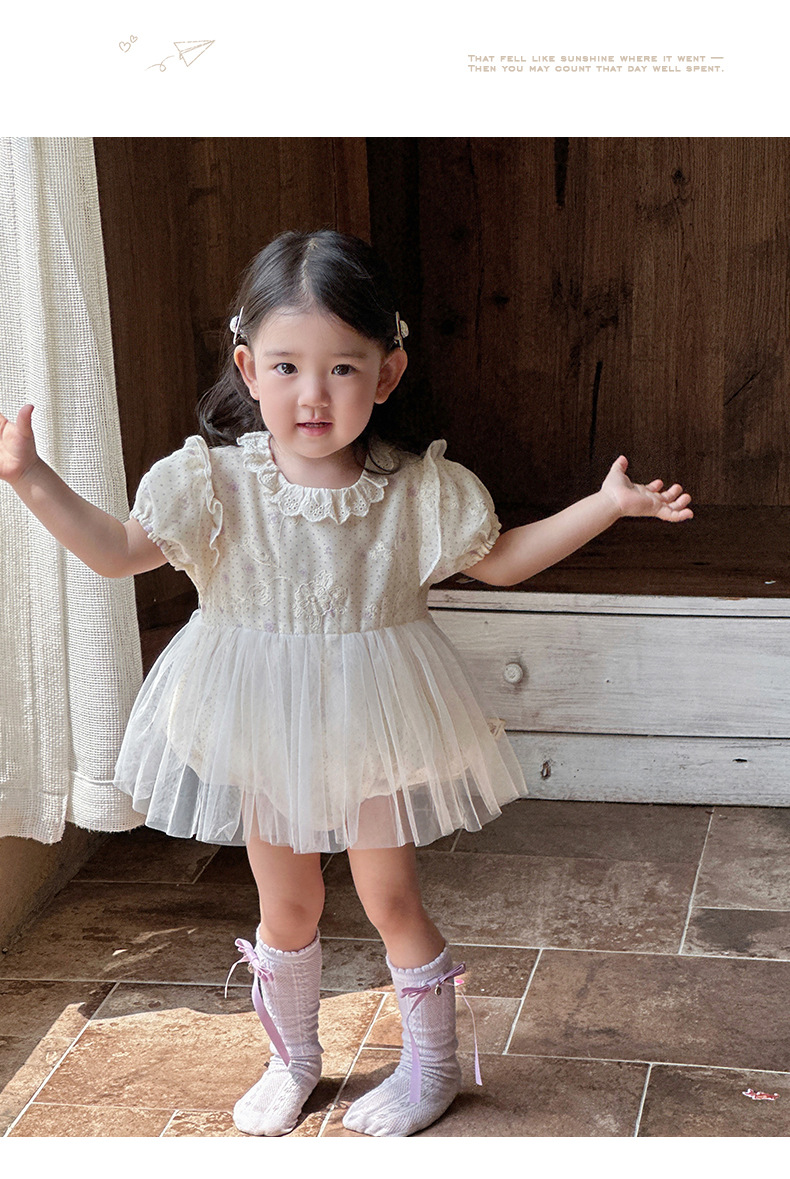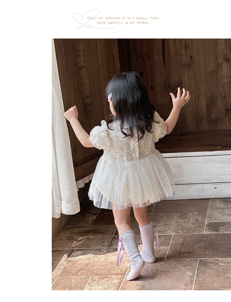 2025 verano nuevo producto versión coreana del vestido de gatear de manga corta de la princesa del banquete de un año