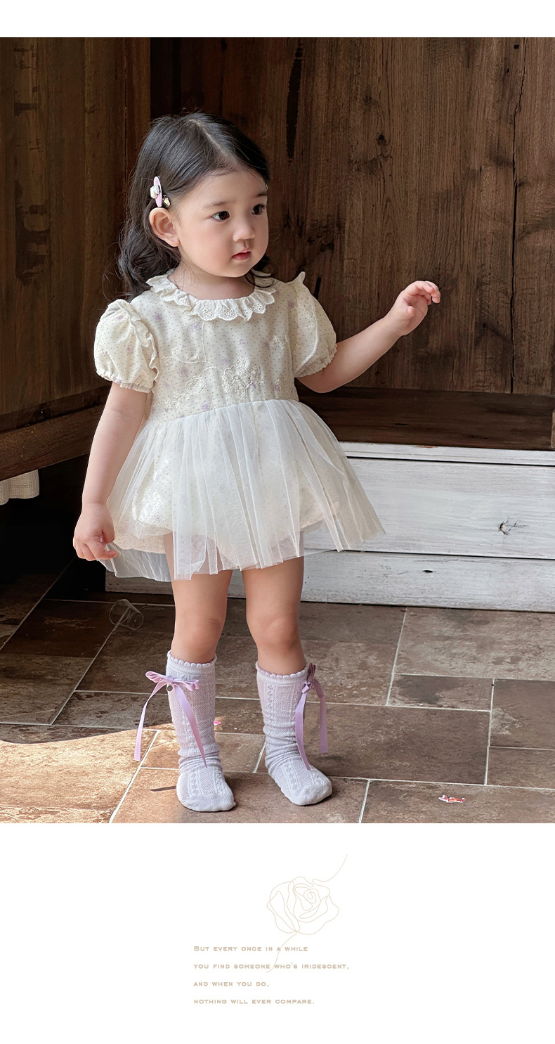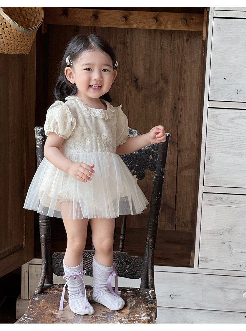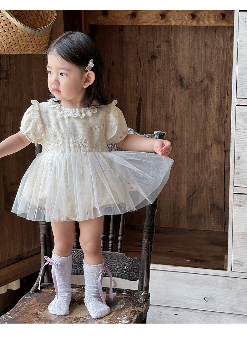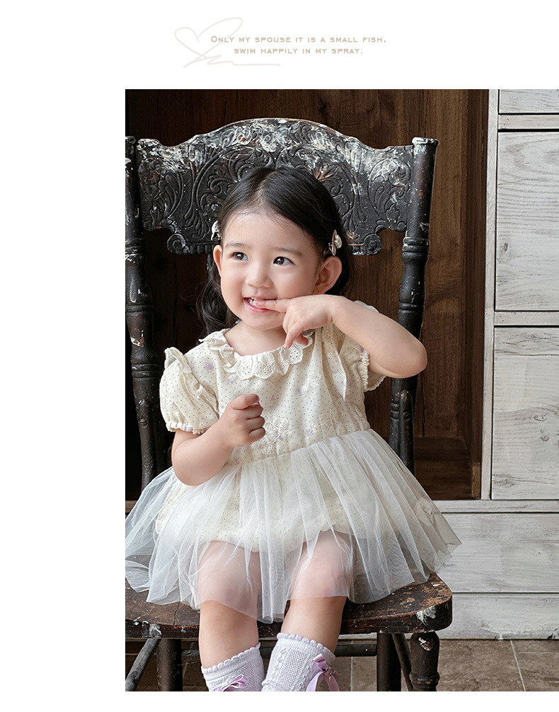 2025 verano nuevo producto versión coreana del vestido de gatear de manga corta de la princesa del banquete de un año