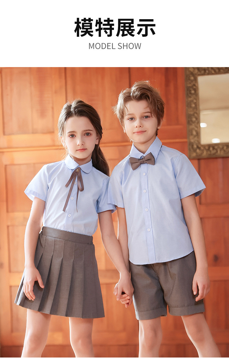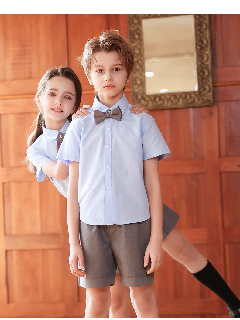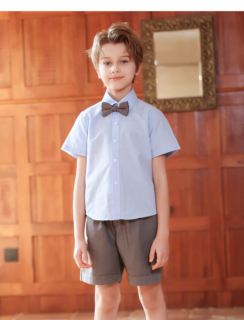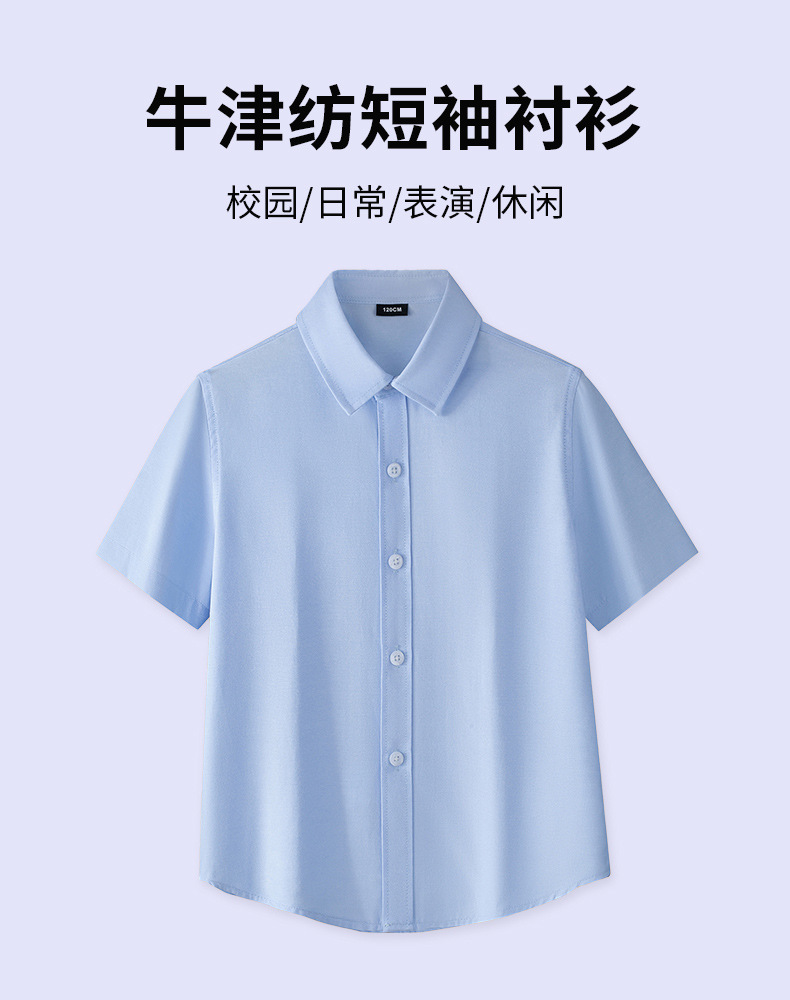 Camisa para niños Camisa de manga corta Oxford azul Camisa de verano para niños y niñas Camisa de rendimiento para niños