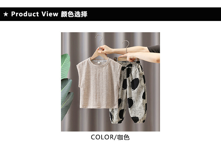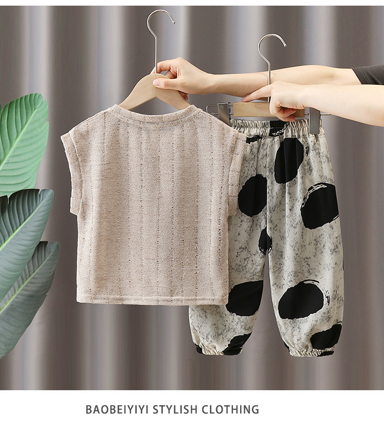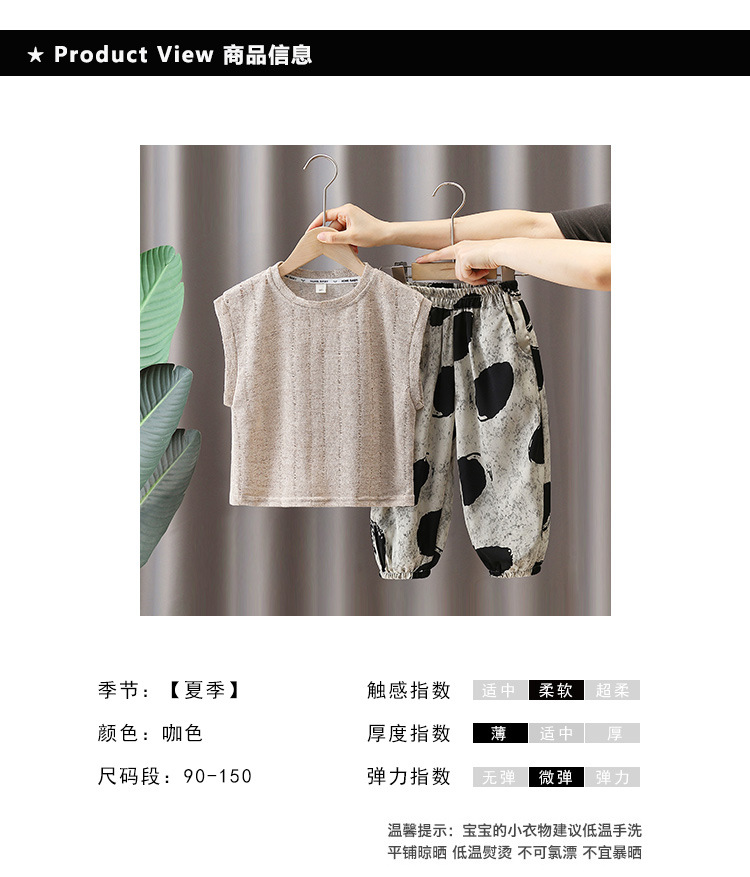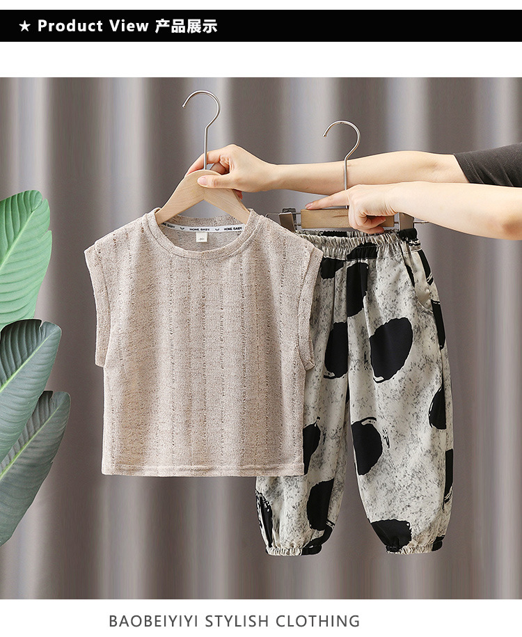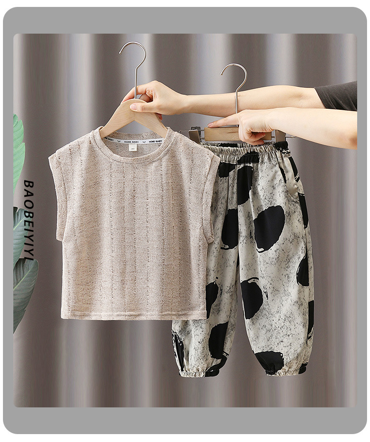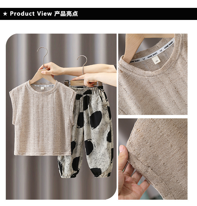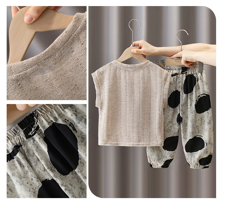 5717 traje de verano para niños 2025 nuevo chaleco hueco sin mangas para niños pantalones anti-mosquitos de verano para niños de dos piezas
