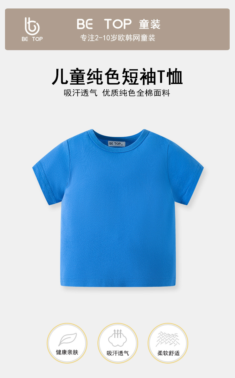 Ser Superior Camiseta de manga corta para niños y niñas verano Delgado color sólido cuello redondo ropa de publicidad bebé versátil media manga