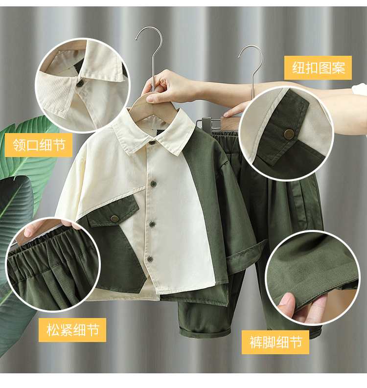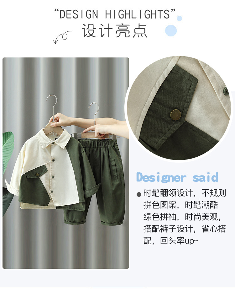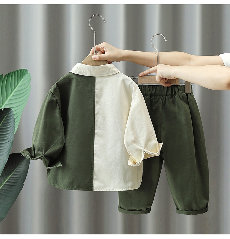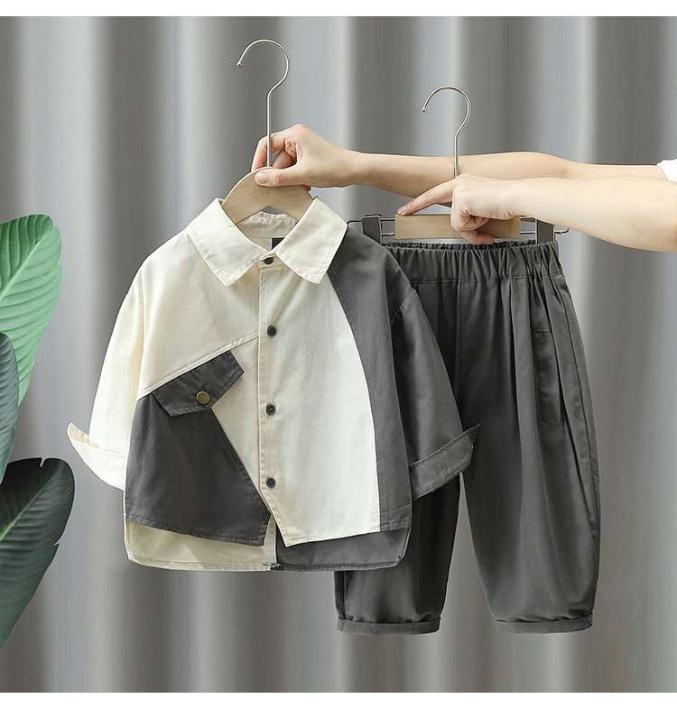 4085 traje de ropa de otoño para niños 2023 nuevo estilo frito calle Ruan Shuai bebé de los hombres sueltos camisa de manga larga para niños traje de dos piezas moda