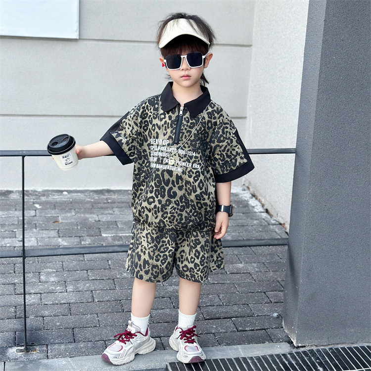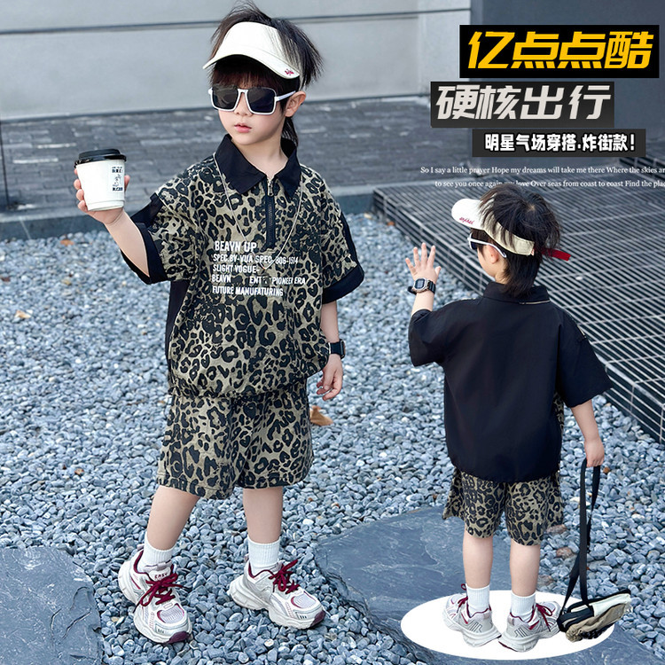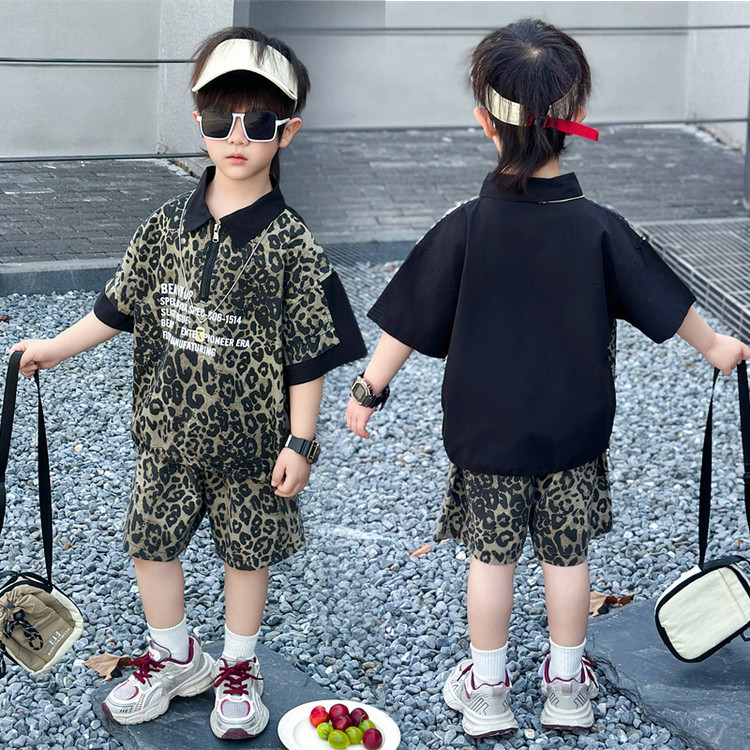 8246 traje de manga corta de verano para niños 2025 nuevos pantalones cortos para niños coreanos camisa POLO traje de dos piezas ropa fresca de moda