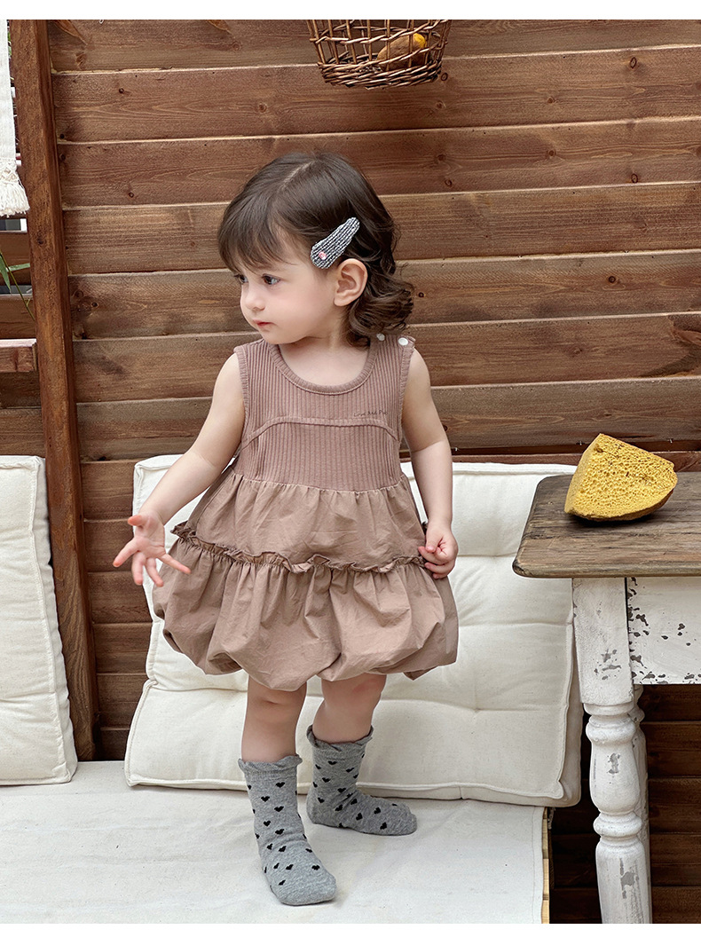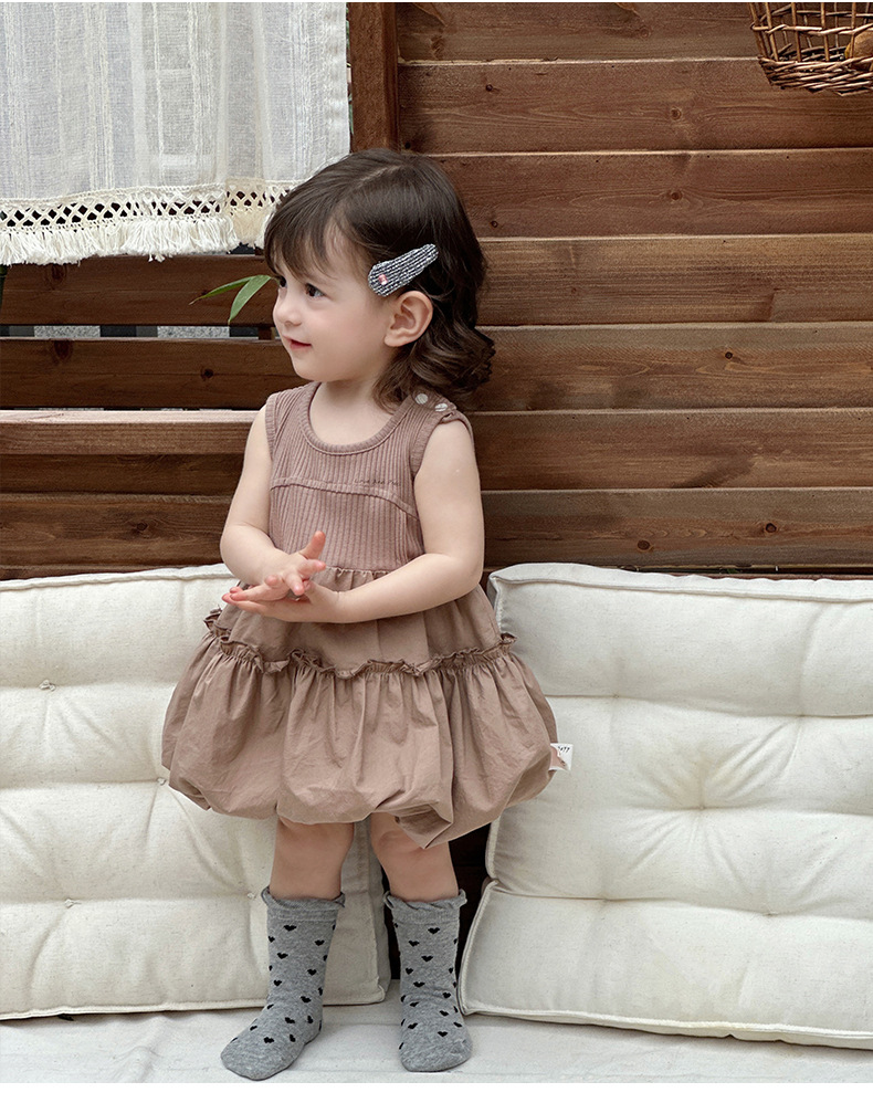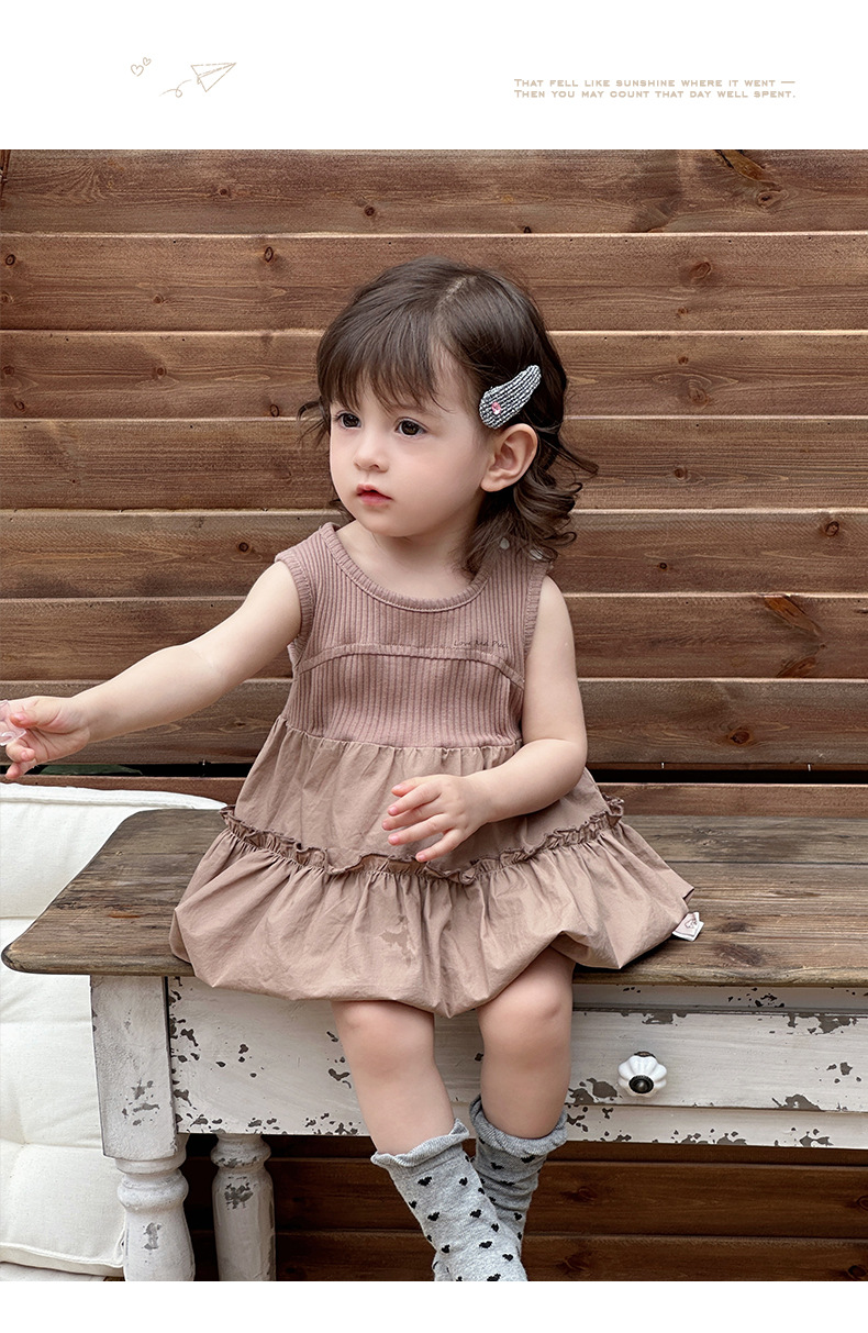 Vestido de verano para niñas 2025 nuevo estilo Clase A Vestido de princesa para bebés y niños pequeños Vestido de chaleco de color sólido para bebés de estilo occidental
