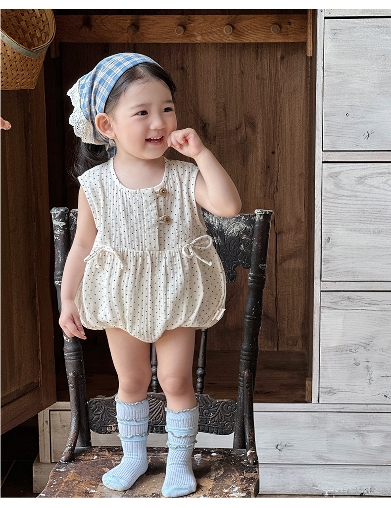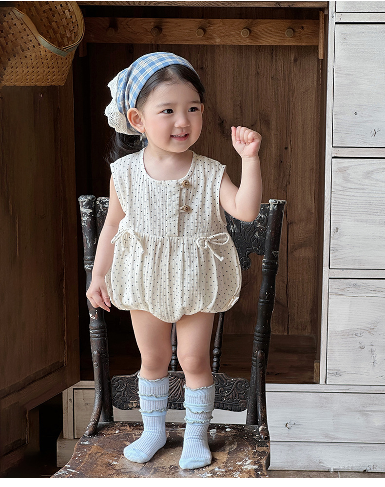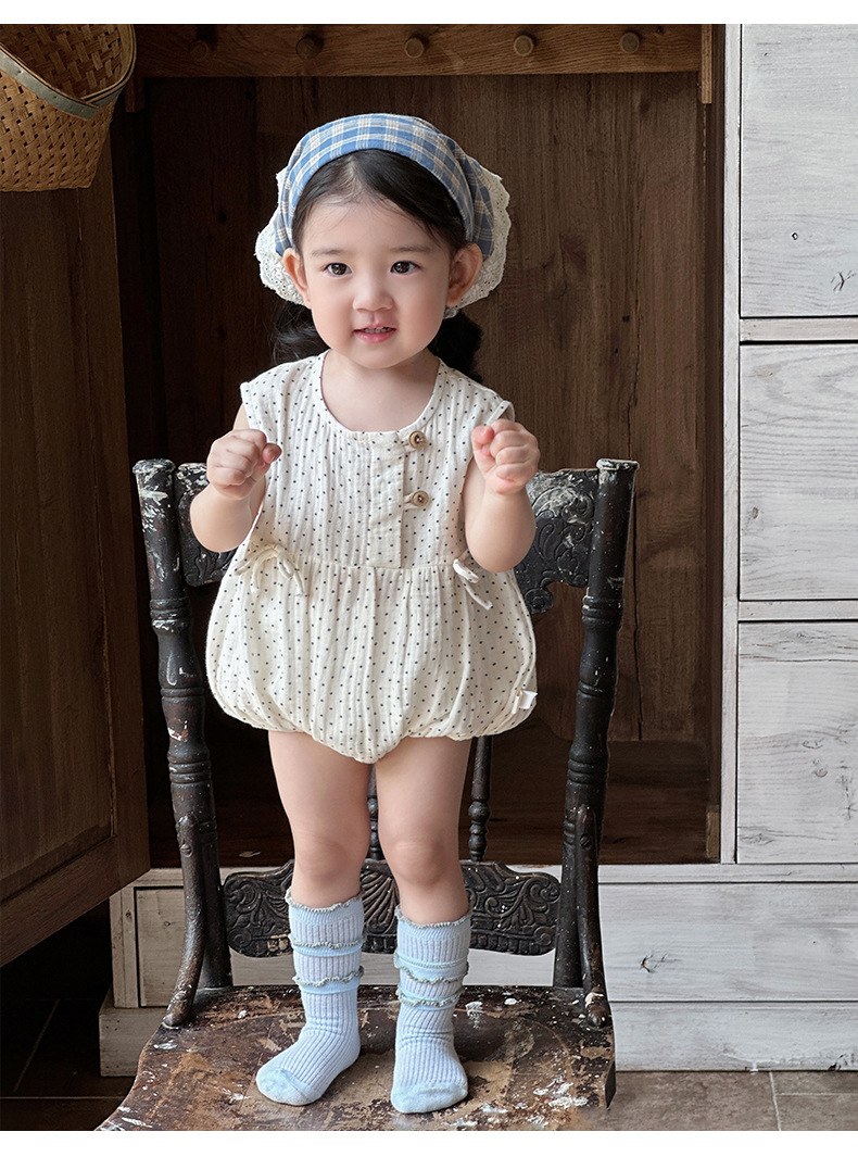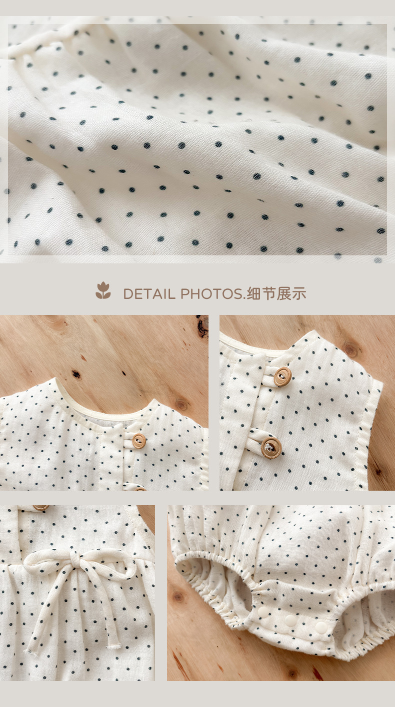 2025 ropa de bebé verano estilo delgado pedo algodón puro tipo a recién nacido lunares sin mangas traje de escalada transpirable mameluco