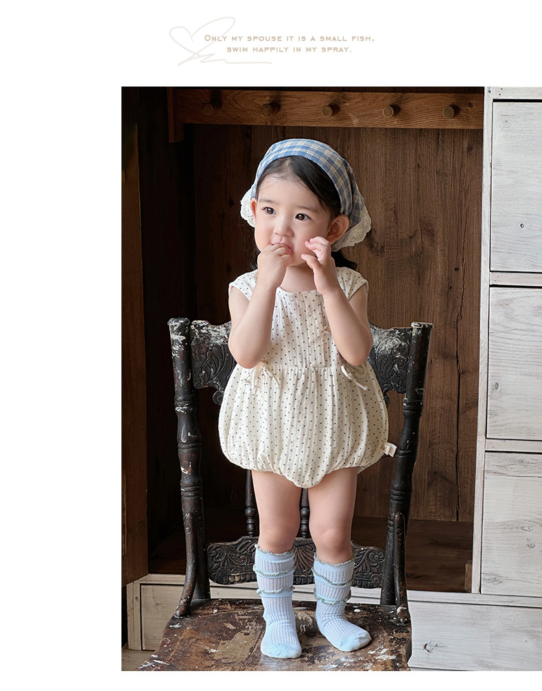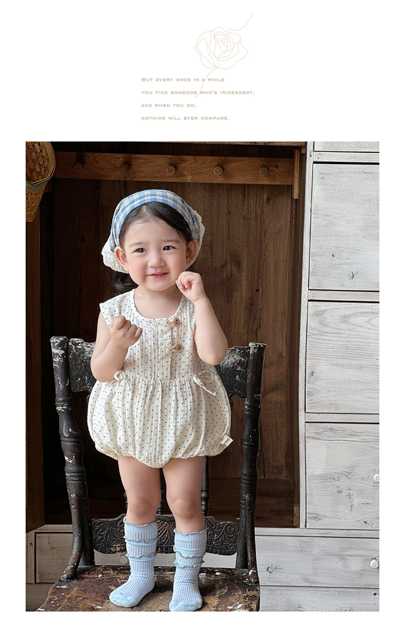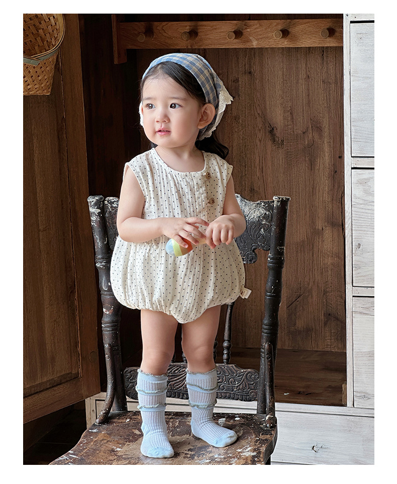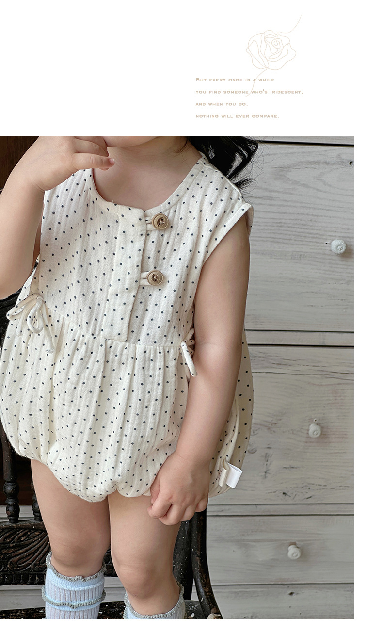 2025 ropa de bebé verano estilo delgado pedo algodón puro tipo a recién nacido lunares sin mangas traje de escalada transpirable mameluco