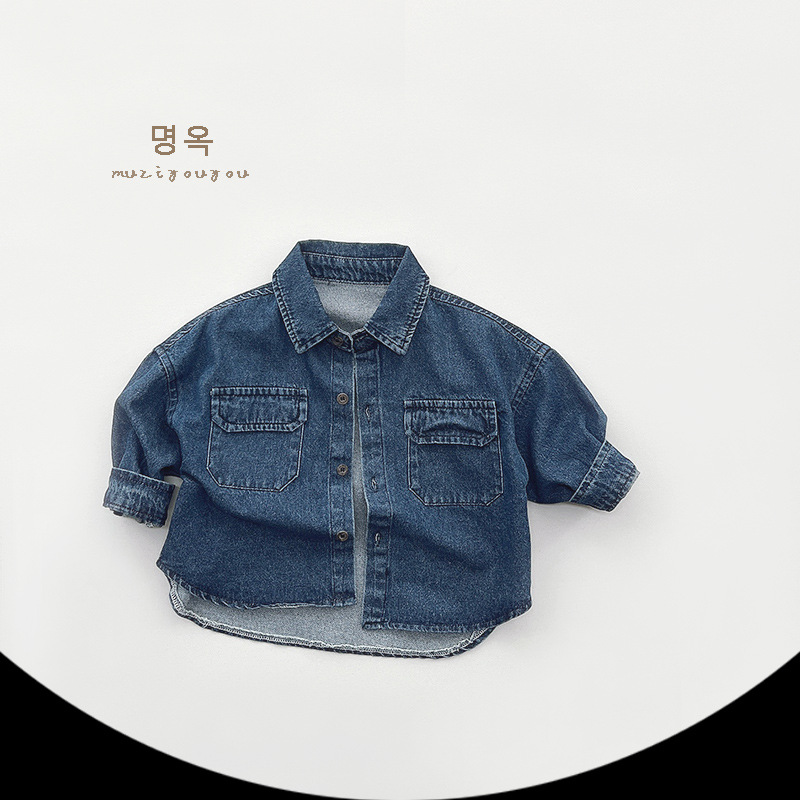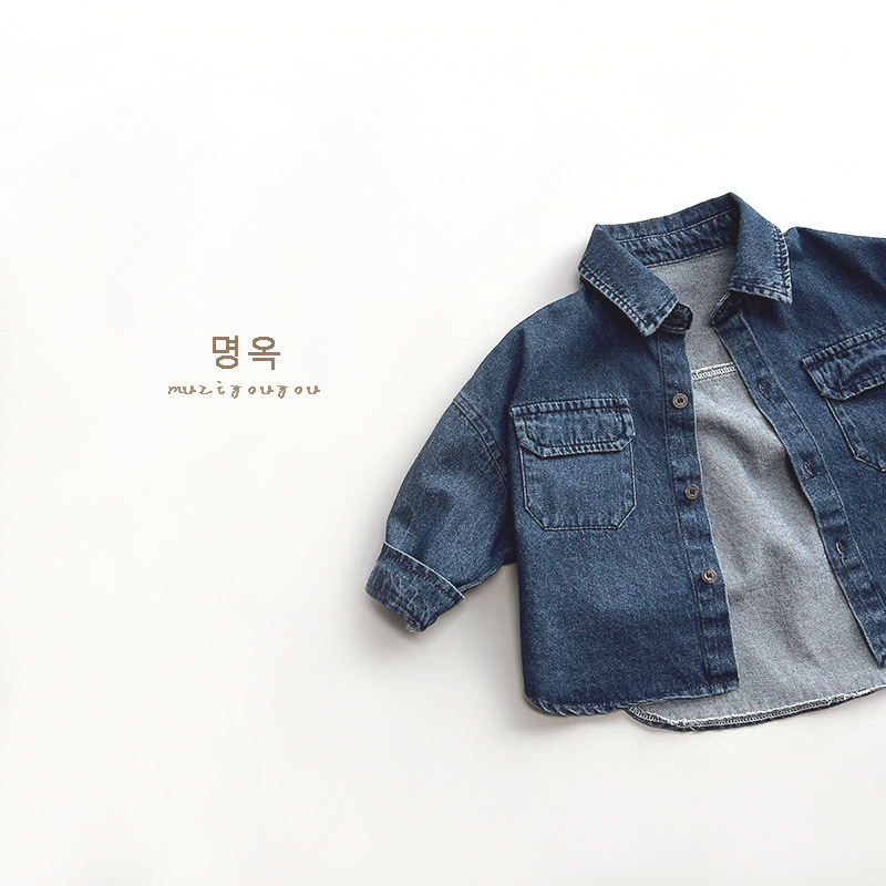 Desgaste del resorte ~ camisa de Mezclilla los muchachos 2024 Nuevas muchachas ocasionales Top moda abrigo para medianos y pequeños niños