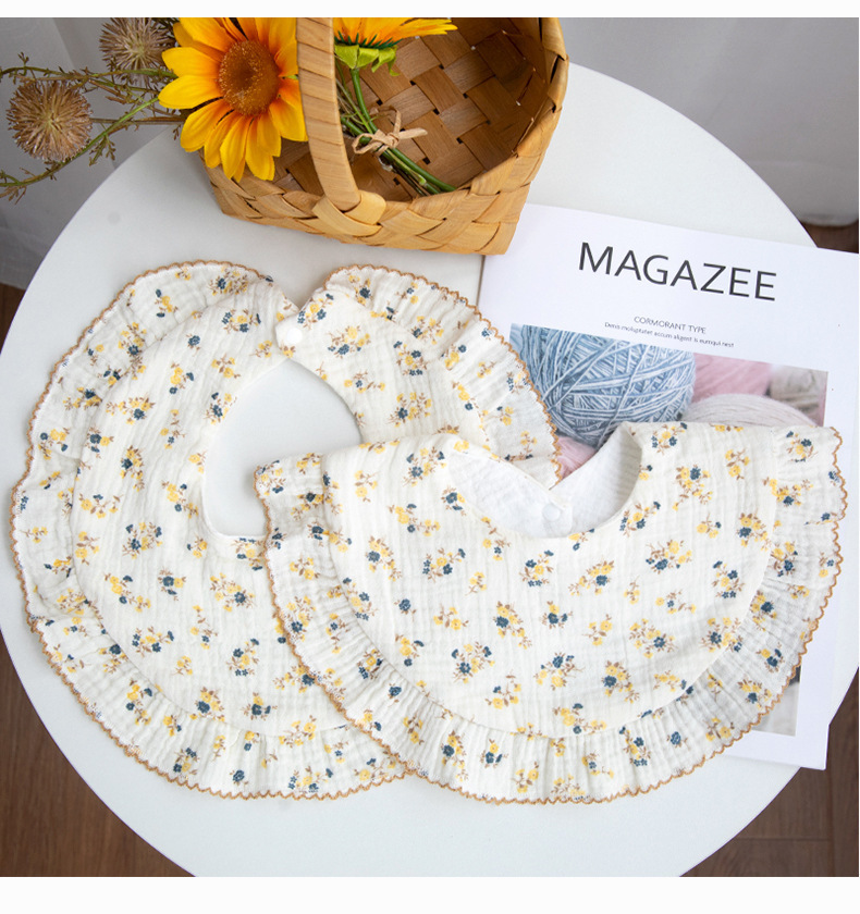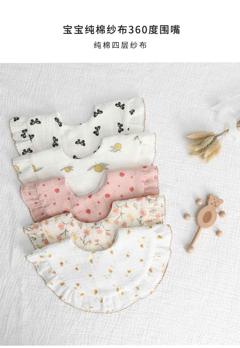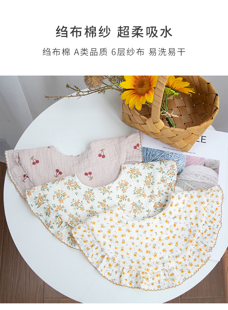 Toalla de saliva de bebé femenino de encaje coreano de verano estilo ins babero de gasa de algodón de clase a bebé babero productos para niños
