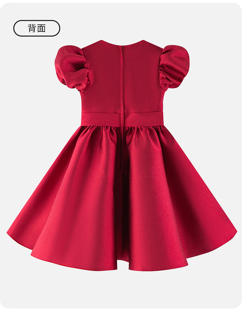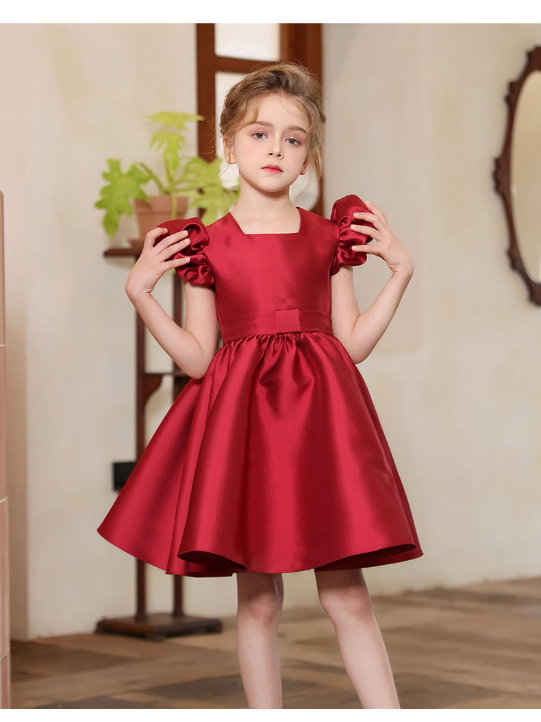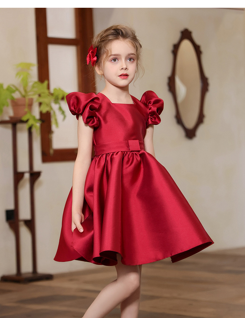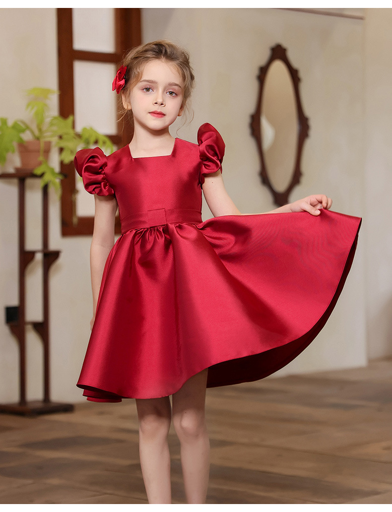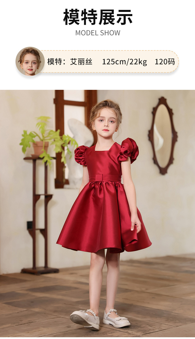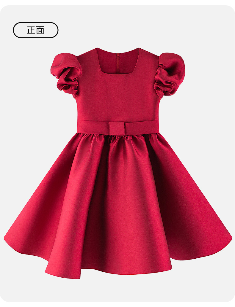 Nuevo vestido de vestir para niños, vestido de princesa con mangas abullonadas para niñas europeas y americanas transfronterizas, vestido de satén para niños, traje de fiesta de alta gama