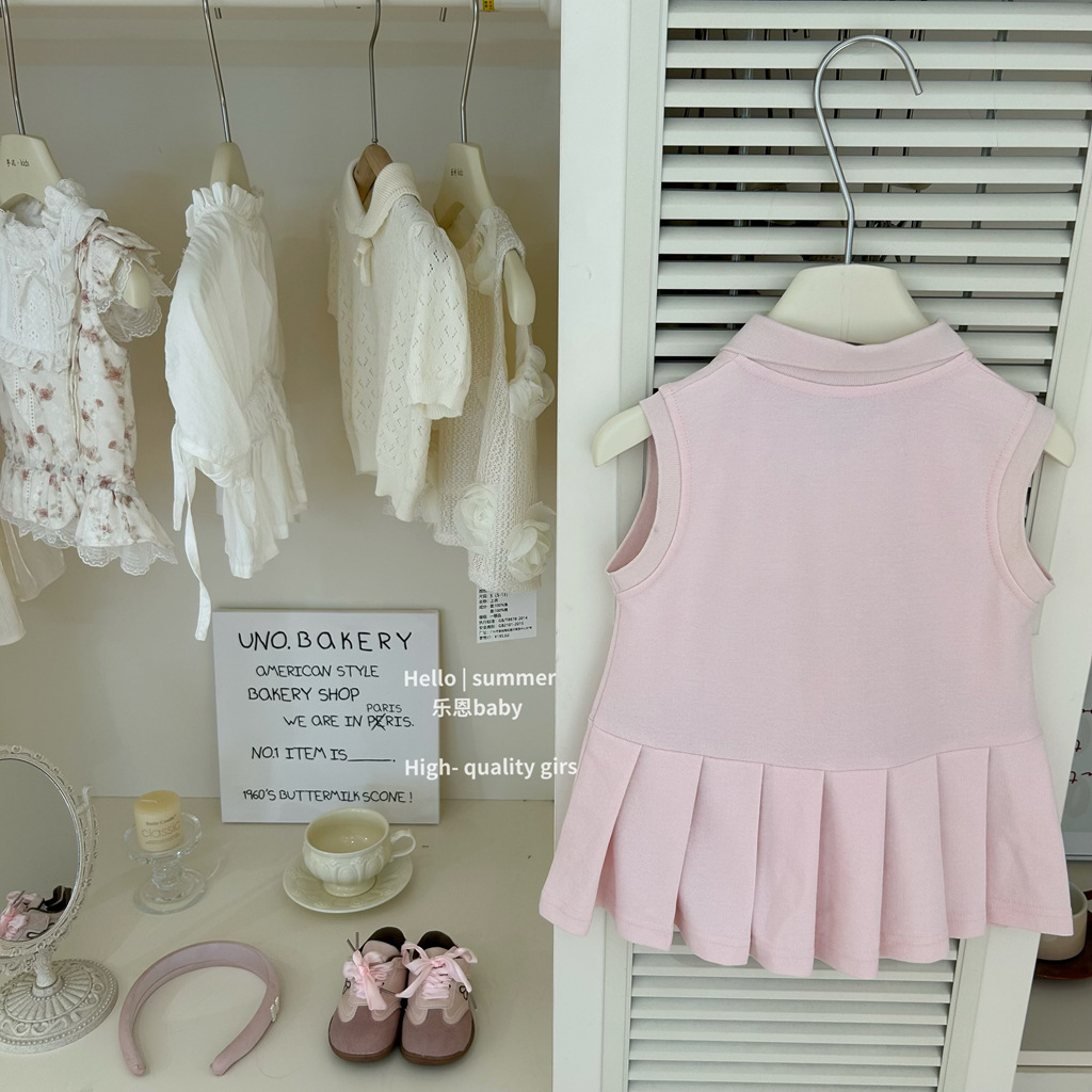 [Le En baby] Vestido de verano de niña estilo universitario Chaleco plisado con cuello POLO Vestido de princesa Estilo occidental bebé