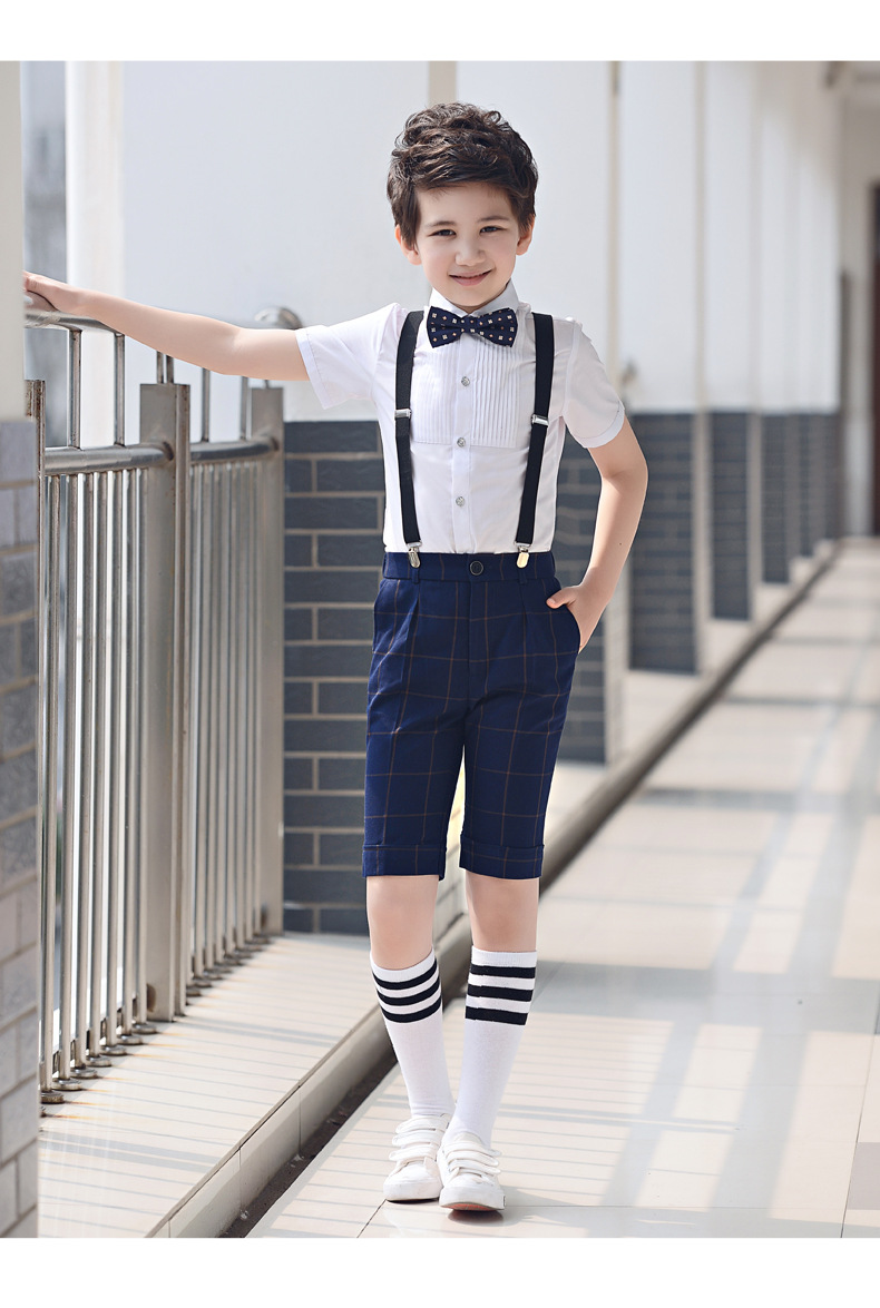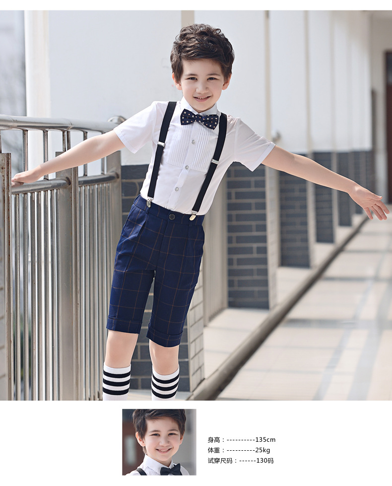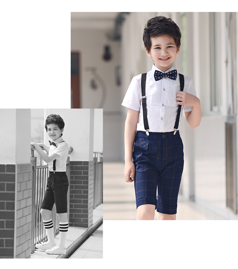 Vestido de niña de las flores de los niños del muchacho de piano rendimiento traje coro suspender Pantalones Niño rendimiento traje de verano