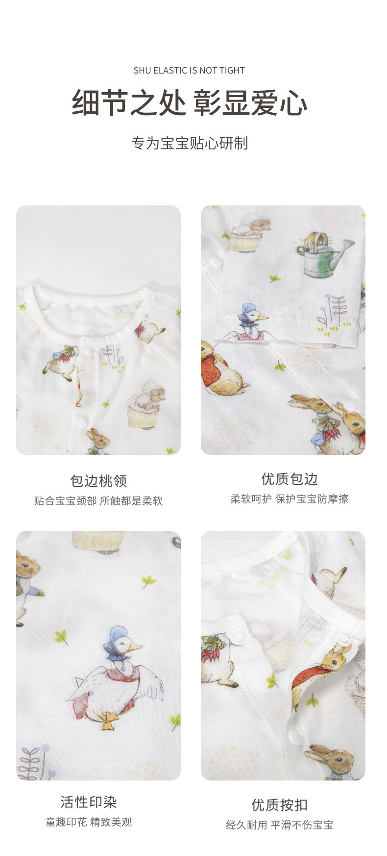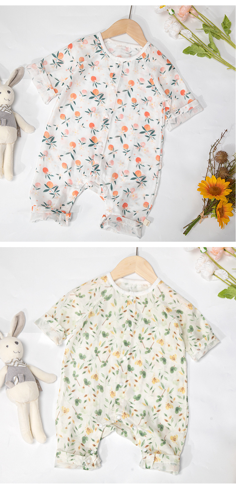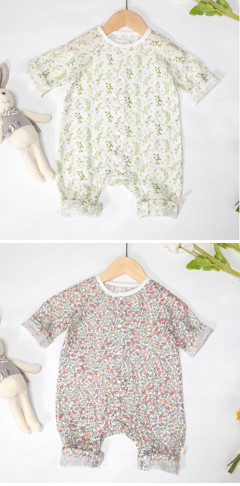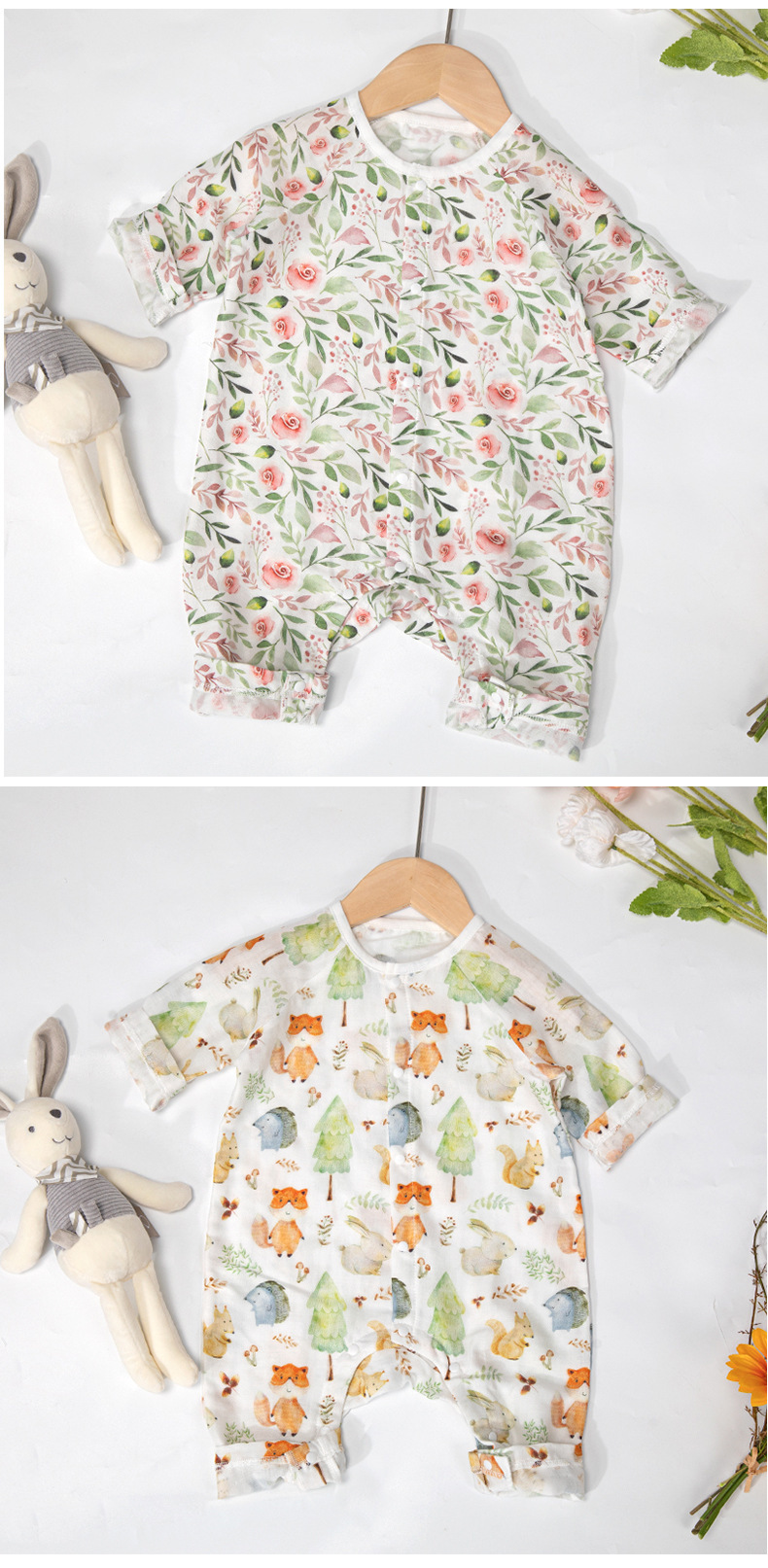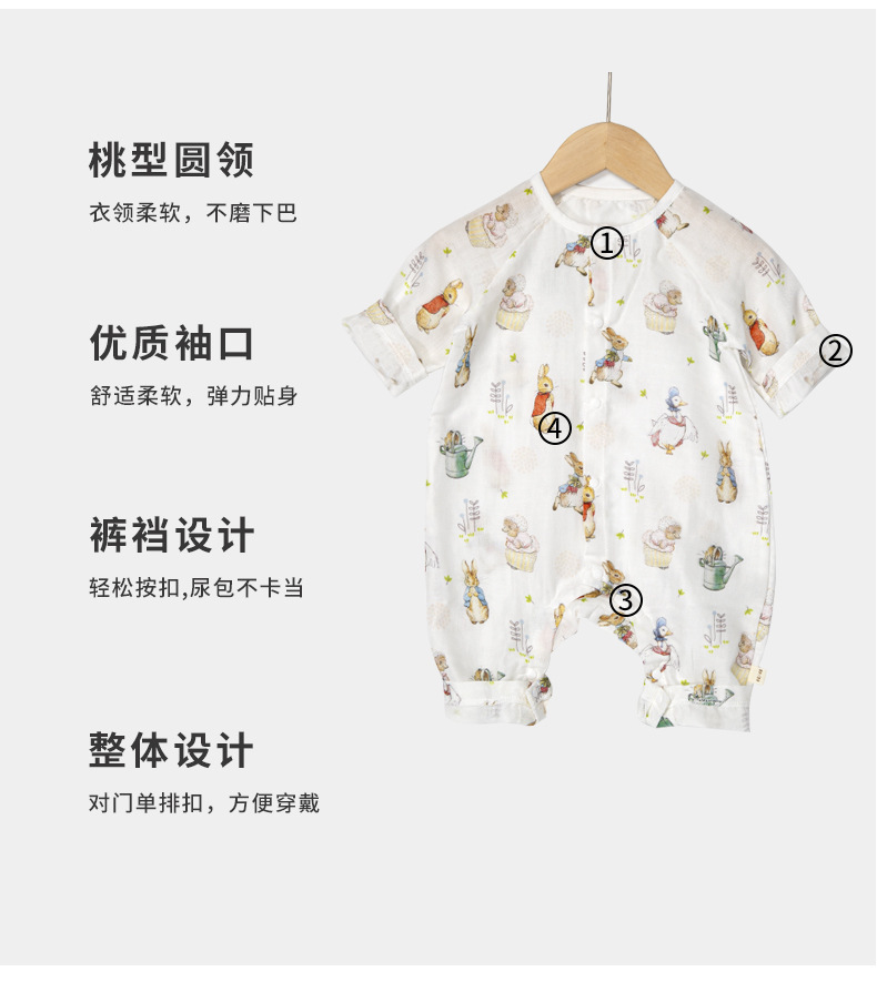 Ropa de verano para bebés Clase A Gasa de algodón de bambú antibacteriana Ropa de hogar Ropa de una pieza para recién nacido Ropa de cama para bebés para hombres