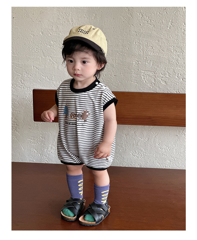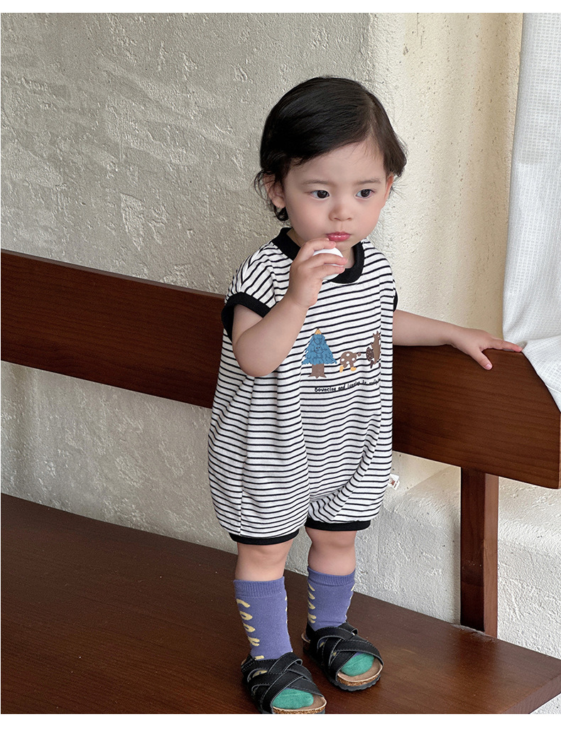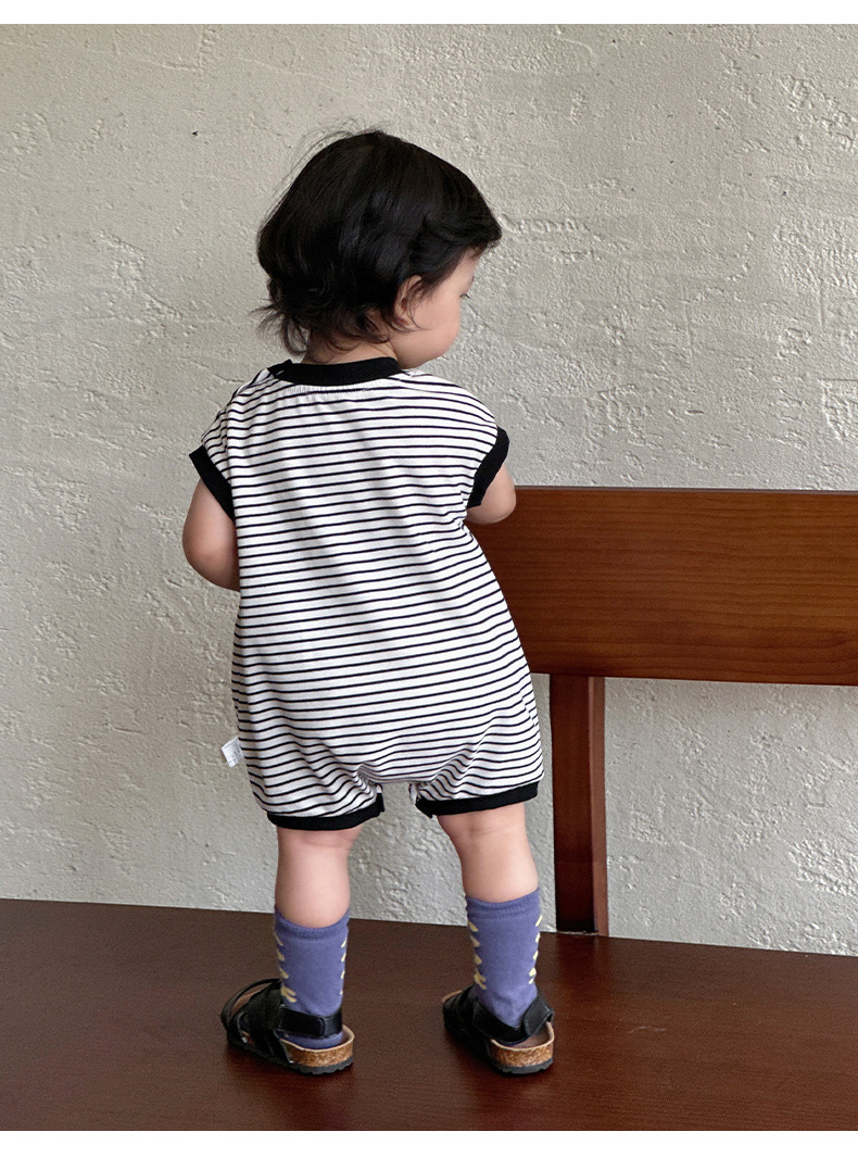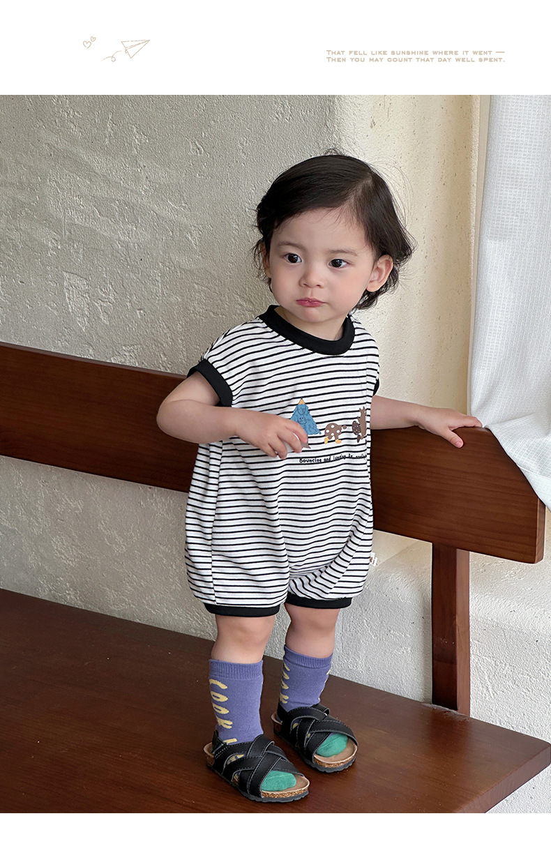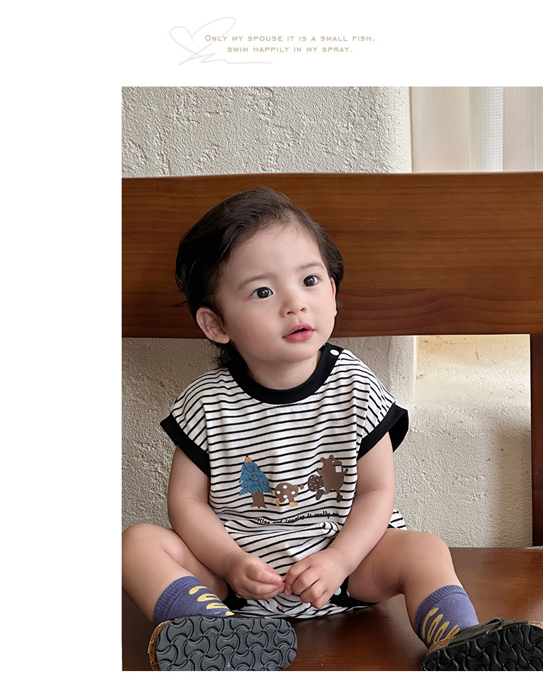 Youhe 2025 nueva ropa delgada de verano para bebés, mampara de bebé de estilo occidental a rayas coreanas