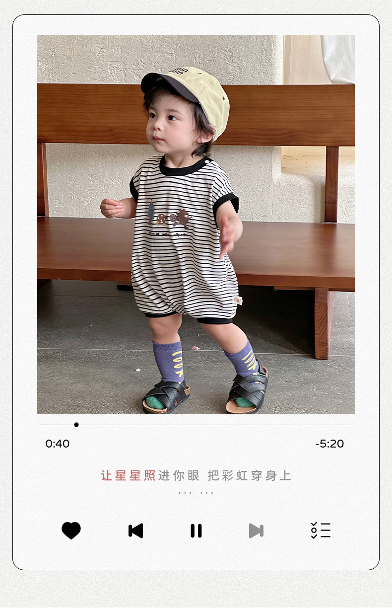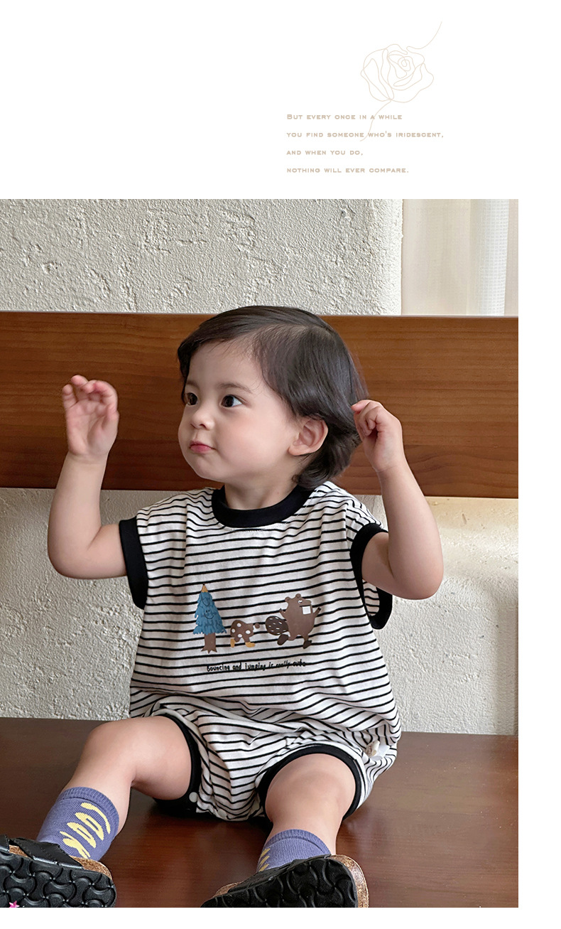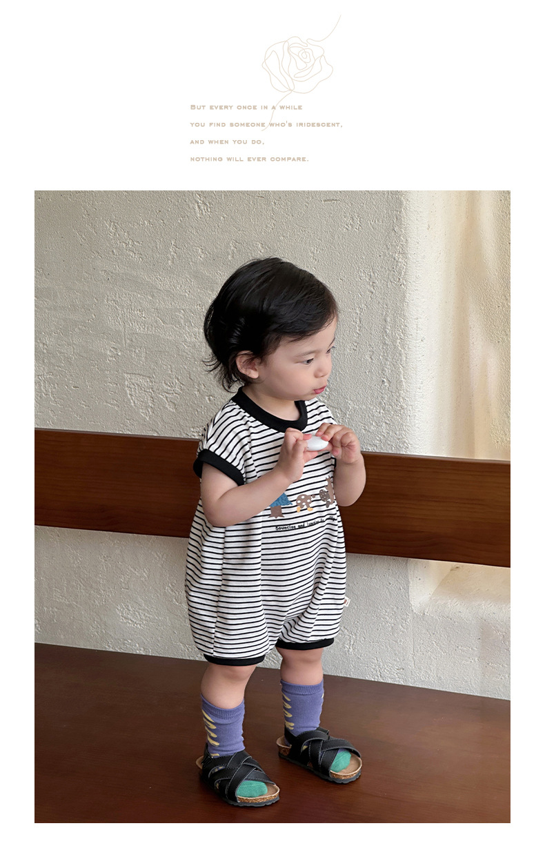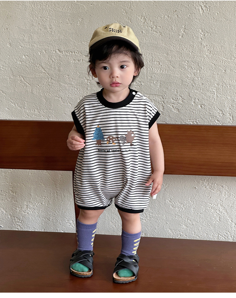 Youhe 2025 nueva ropa delgada de verano para bebés, mampara de bebé de estilo occidental a rayas coreanas
