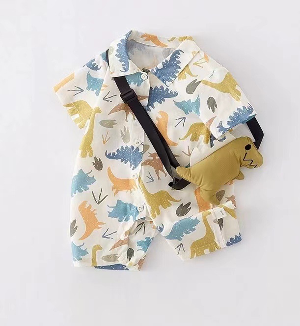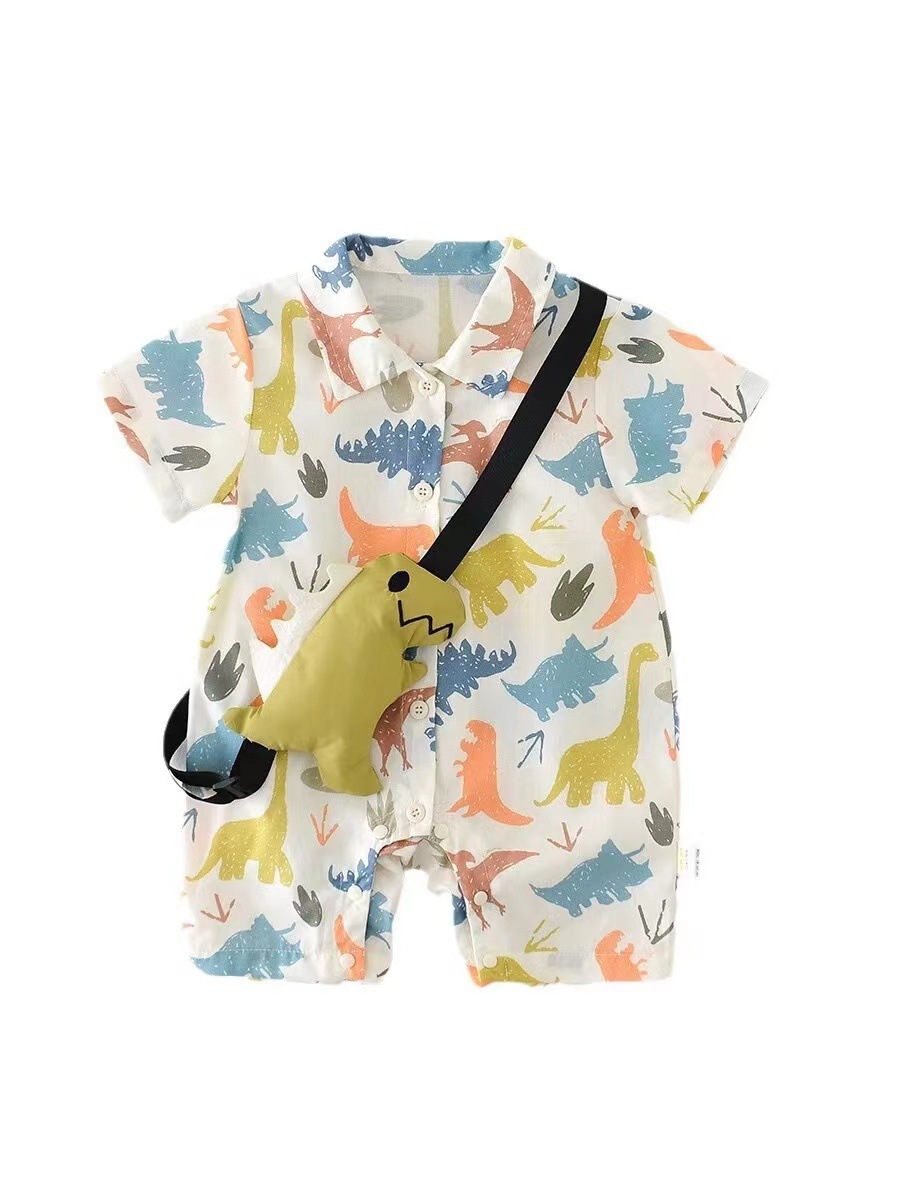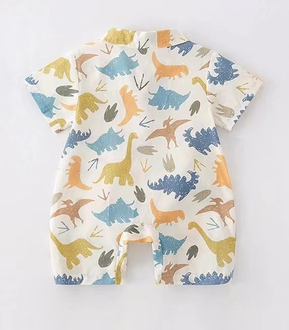 Ropa de verano para niños, ropa de bebé recién nacido, mamelero de manga corta de dinosaurio lindo de verano, una pieza delgada, muñeca de verano