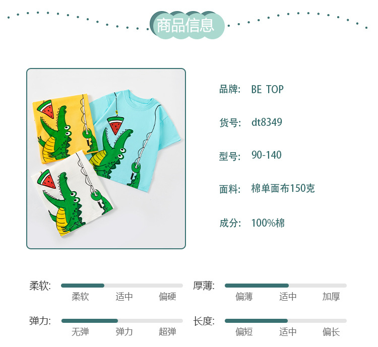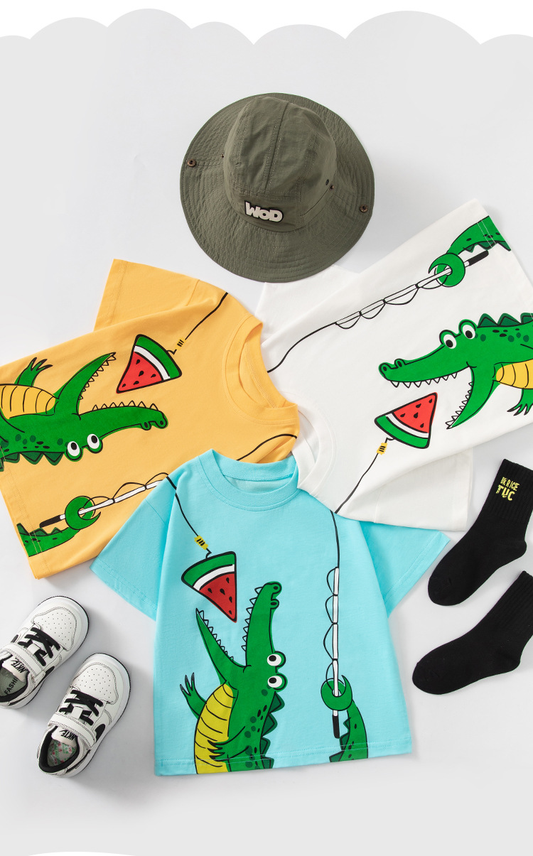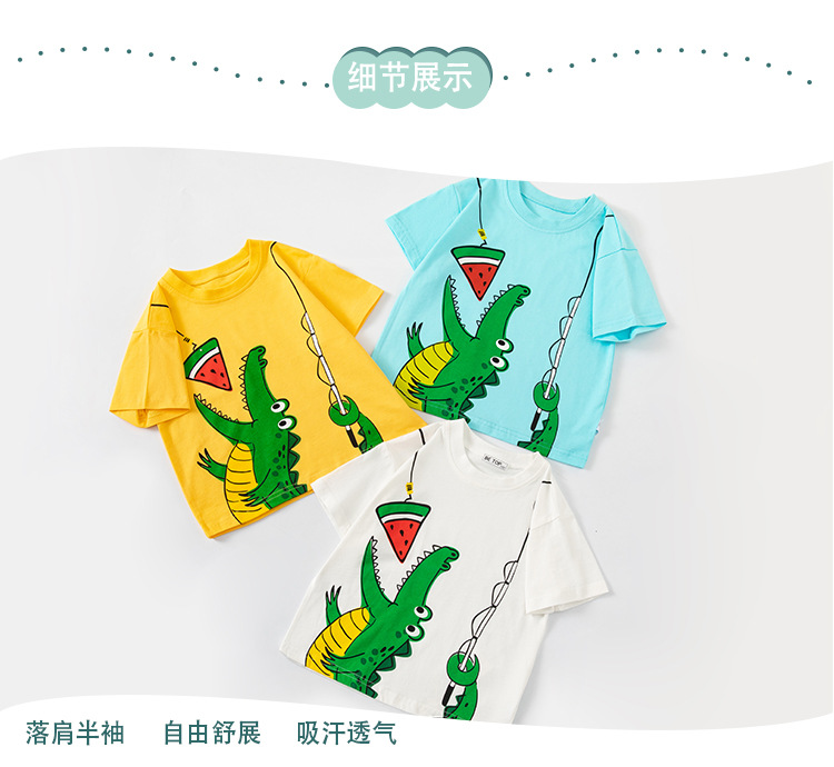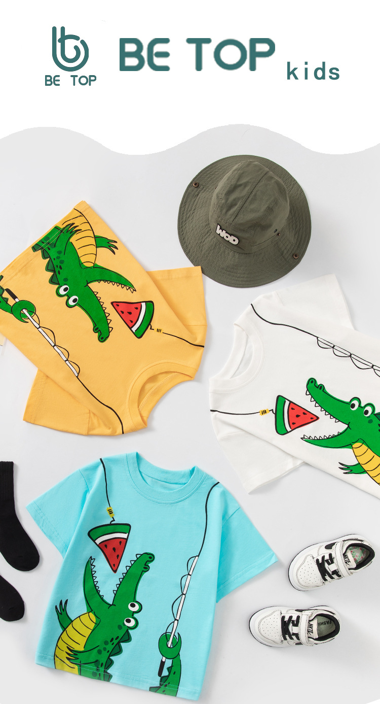 Betop ropa para niños camiseta de manga corta para niños verano cocodrilo estampado niño ropa de bebé media manga fuente de Douyin