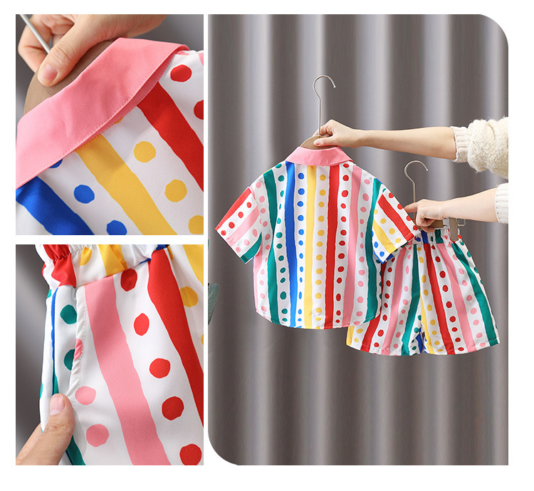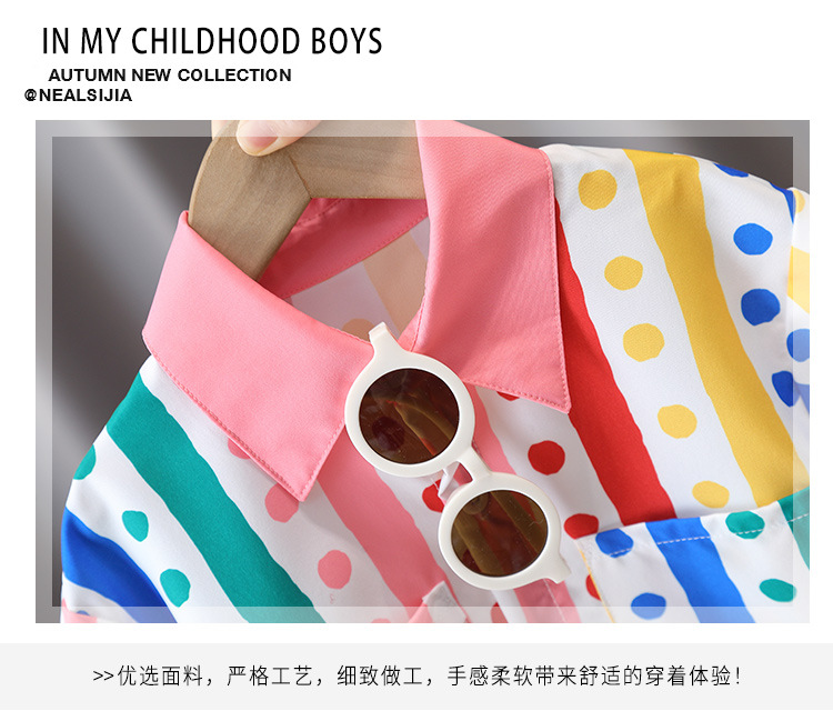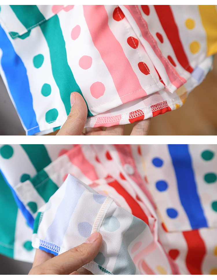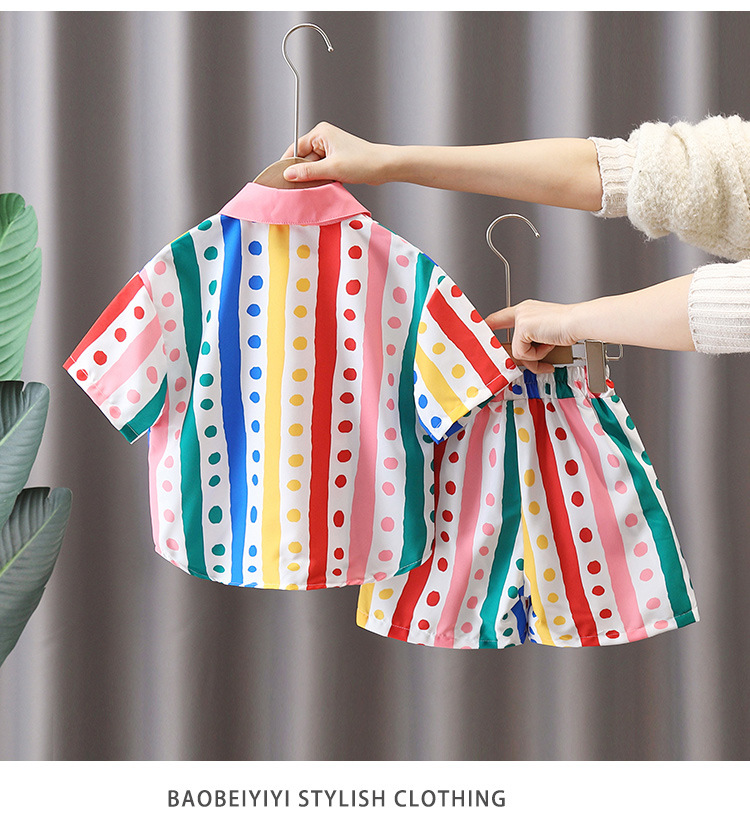 7114 Traje de camisa para niños 2025 verano nuevo estilo niño ropa de vacaciones bebé estilo occidental vestido de verano de manga corta