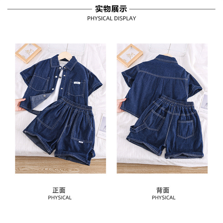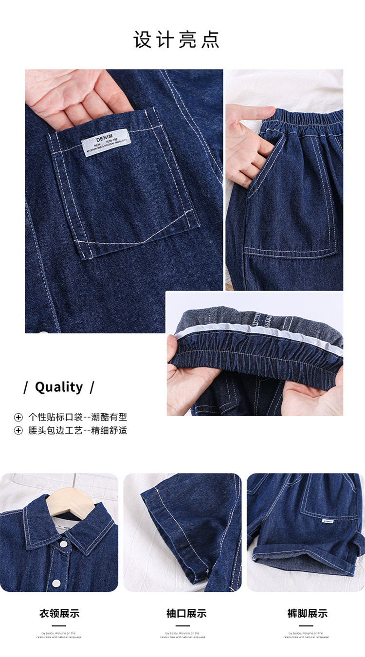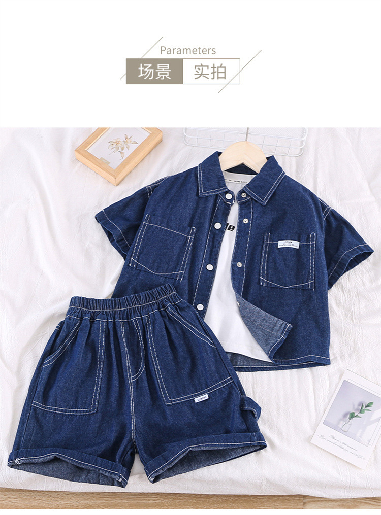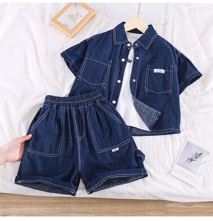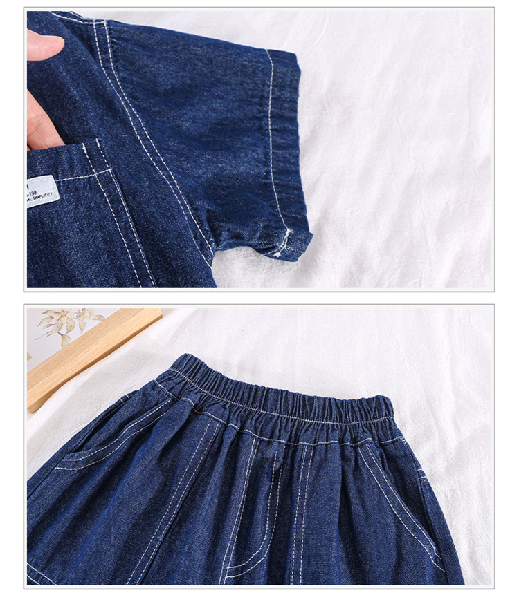 5290 Traje de verano para niños Traje de dos piezas de mezclilla delgado Ropa de bebé elegante y hermosa para niños Calle frita para niños Verano
