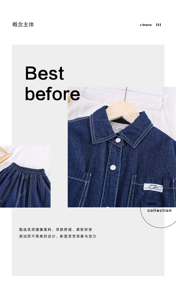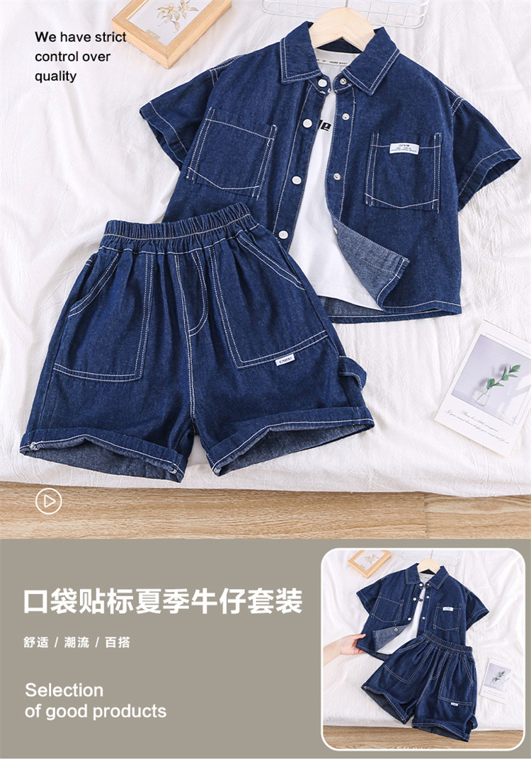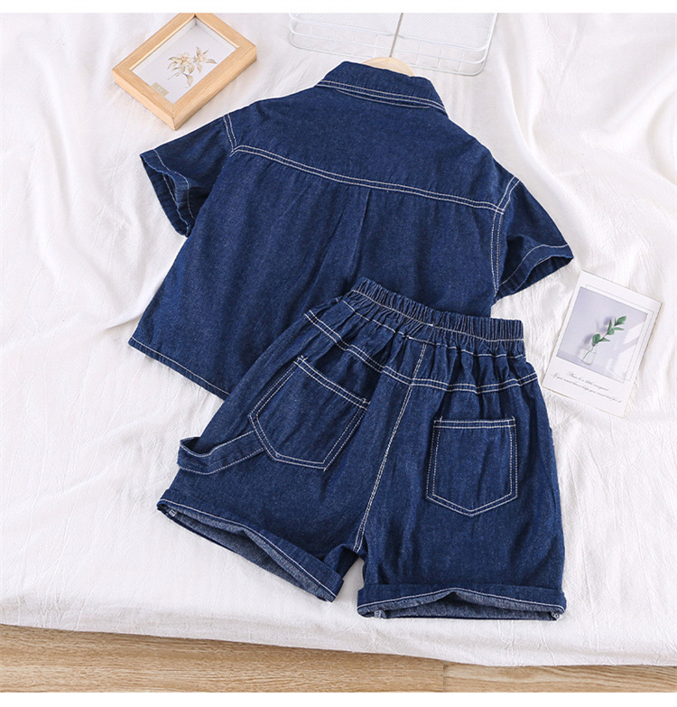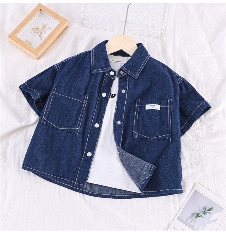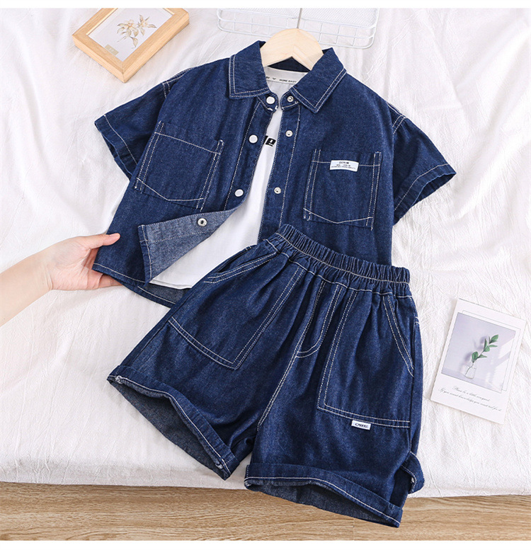 5290 Traje de verano para niños Traje de dos piezas de mezclilla delgado Ropa de bebé elegante y hermosa para niños Calle frita para niños Verano