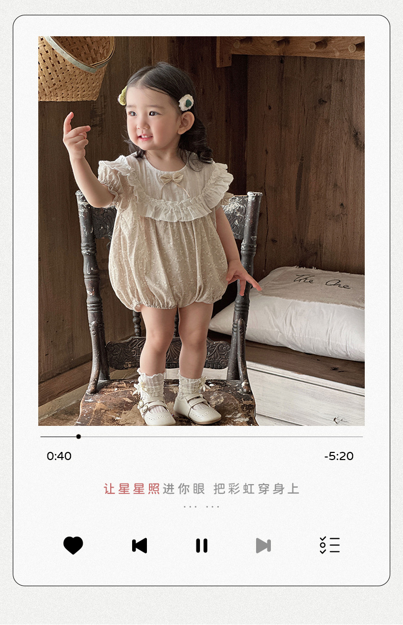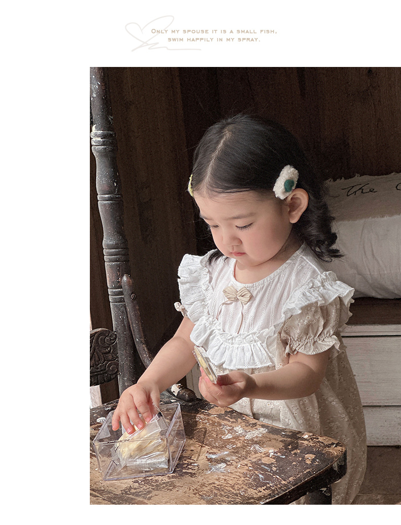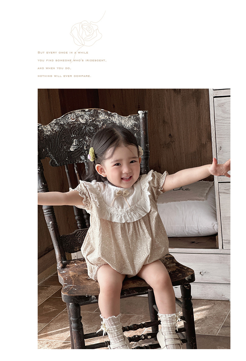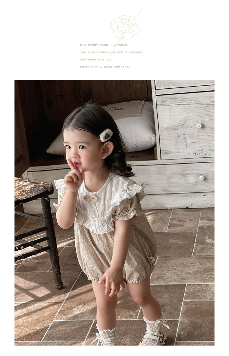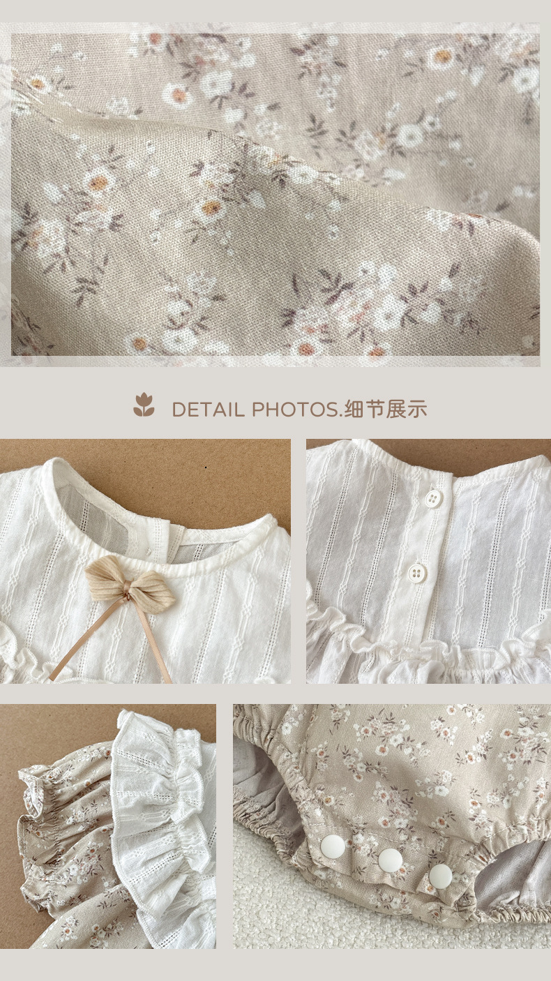 Verano para bebés nuevo estilo mampara de manga corta con costuras florales, ropa de salida para bebés y niños pequeños, ropa de pedo para bebés lindos