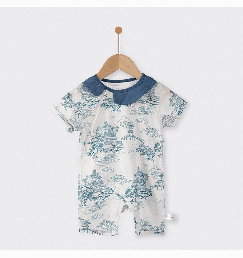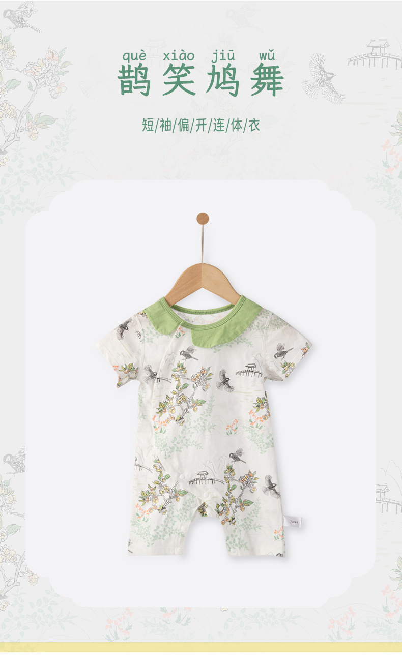 China estilo Han traje recién nacido bata de verano delgado conjunto de cuello de flor abierto de manga corta de algodón ropa de escalada