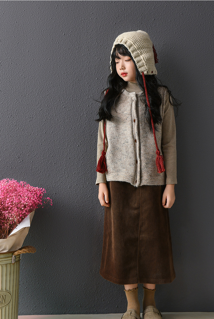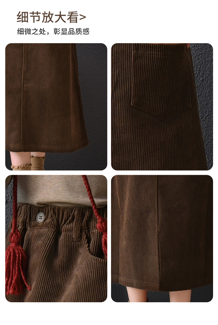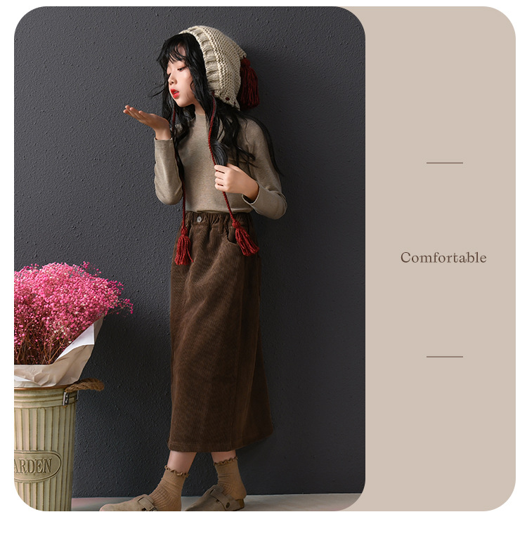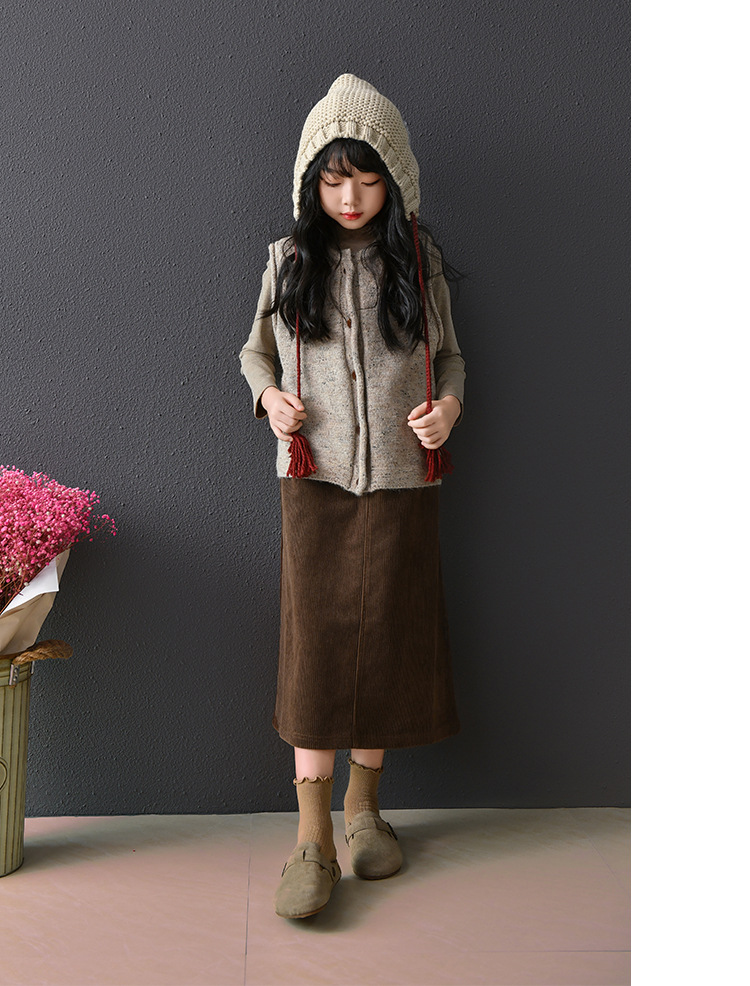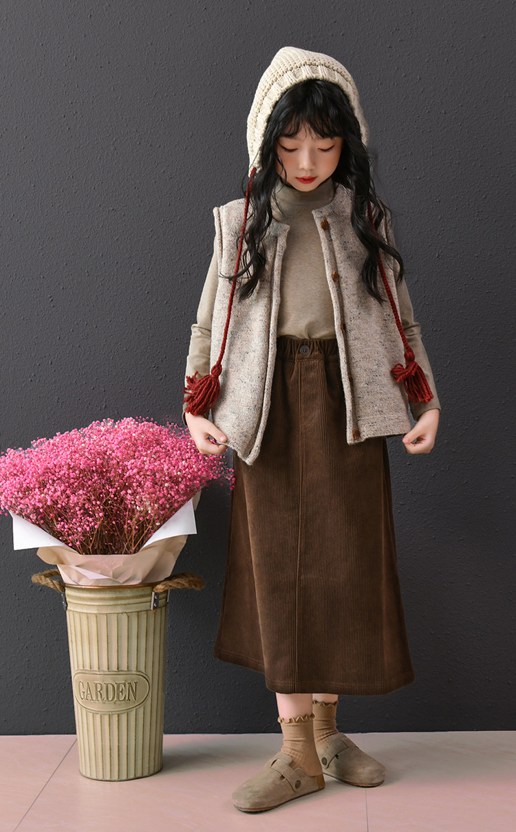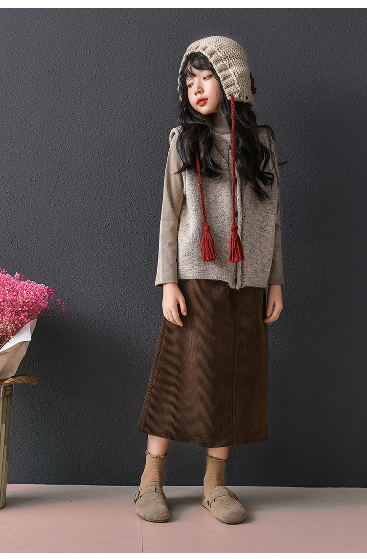 Falda de media longitud para niñas otoño e invierno para niños, falda cálida de pana de cintura alta retro para niños
