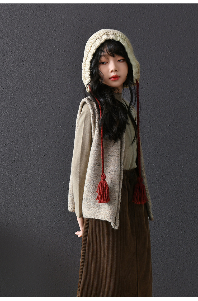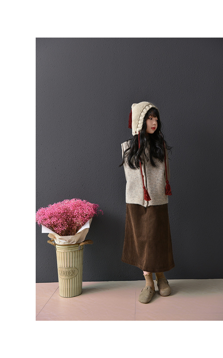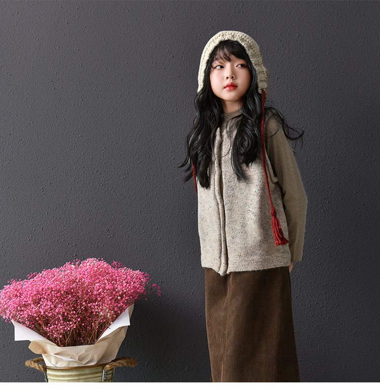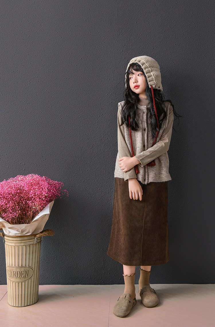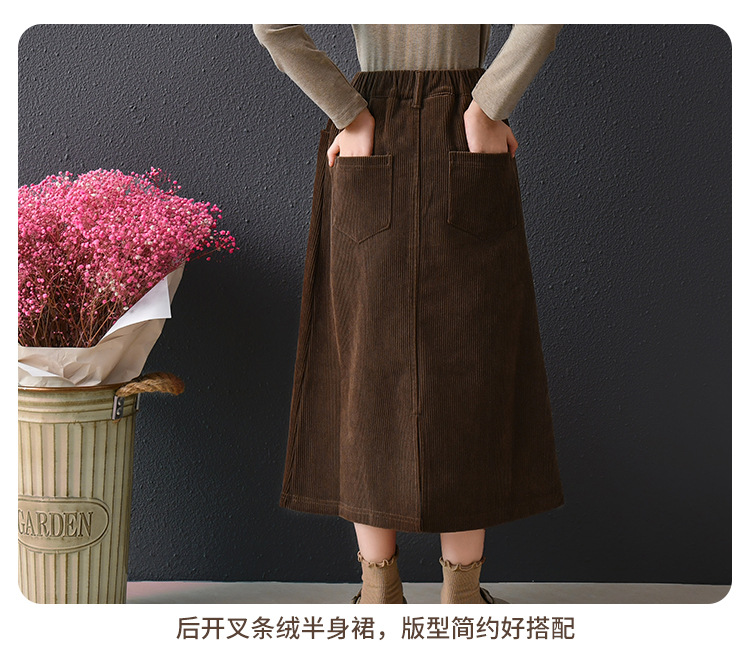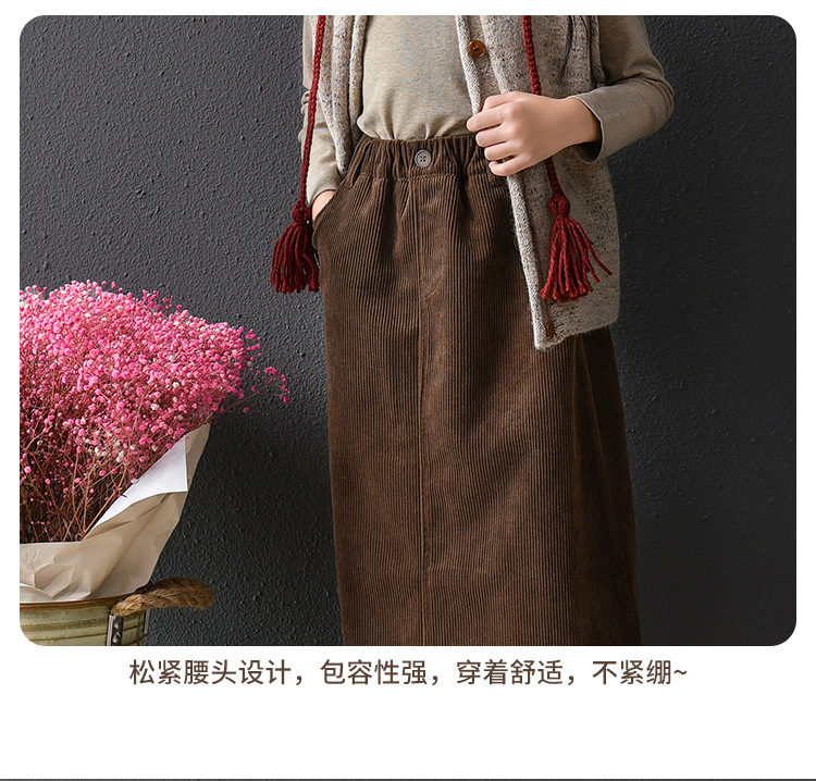 Falda de media longitud para niñas otoño e invierno para niños, falda cálida de pana de cintura alta retro para niños