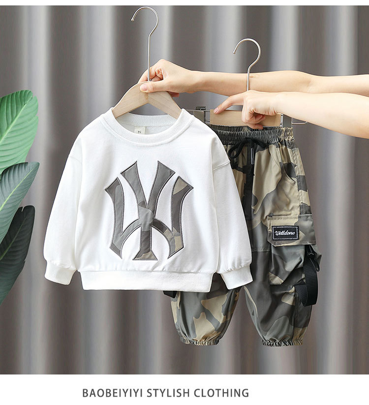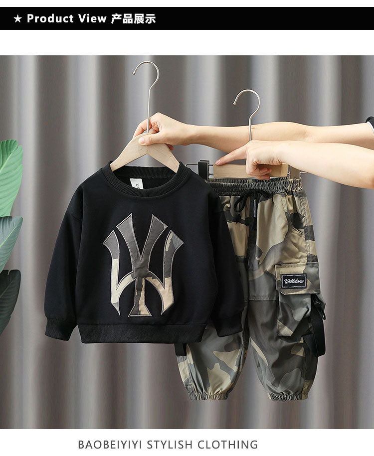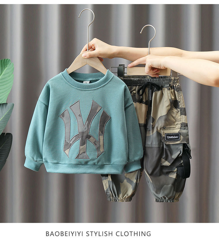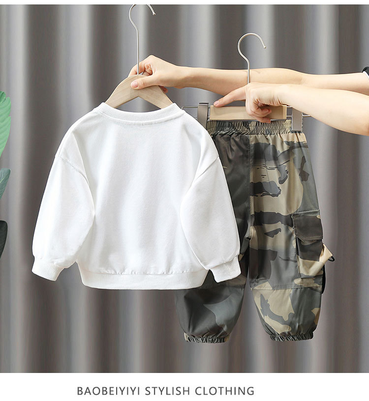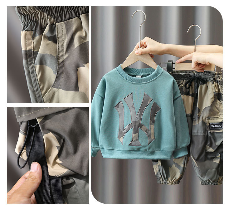 4012 traje de suéter de primavera y otoño para niños camuflaje de otoño para niños ropa de celebridades de Internet 2023 nuevo estilo frito calle traje de dos piezas moda