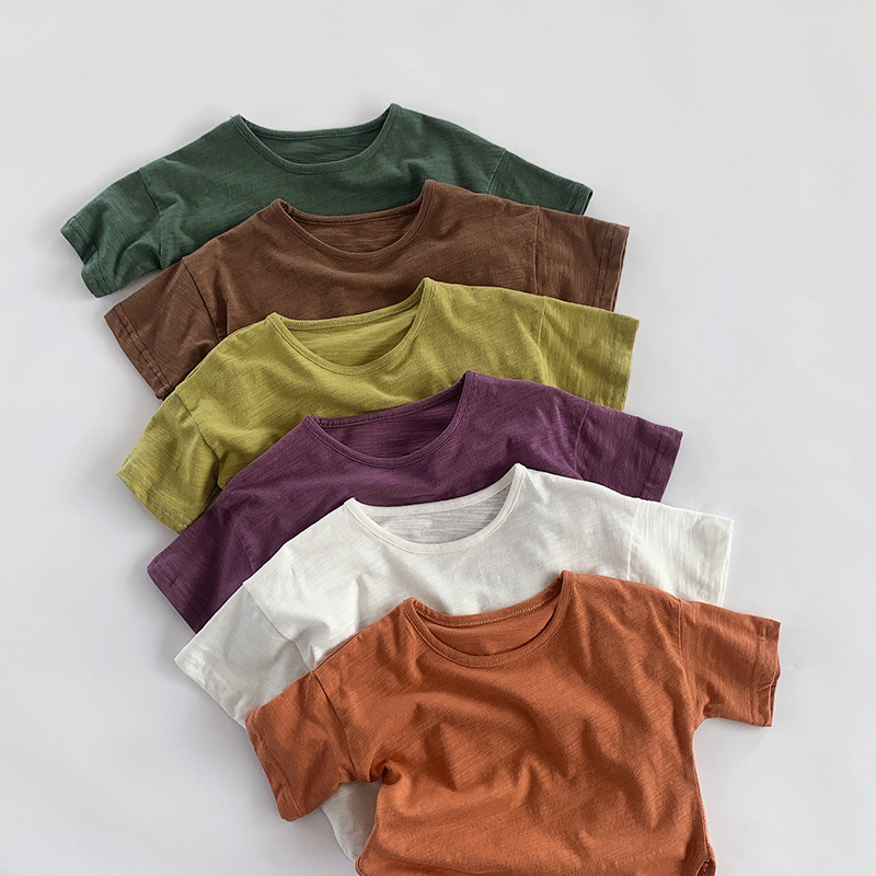 Camiseta de manga corta de algodón flameado para niños estilo coreano para niñas de verano camiseta personalizada de algodón versátil para niños top japonés ropa para niños