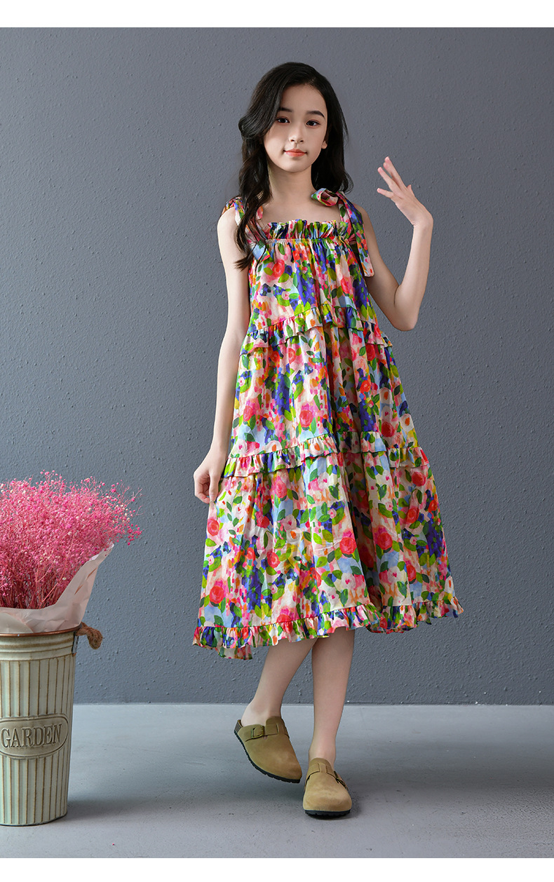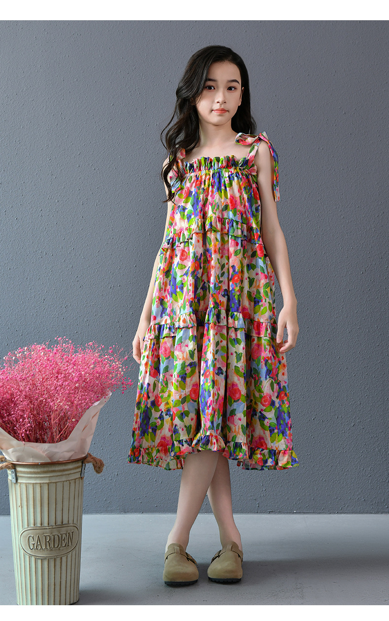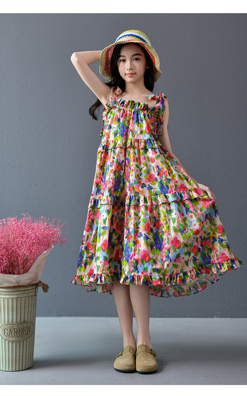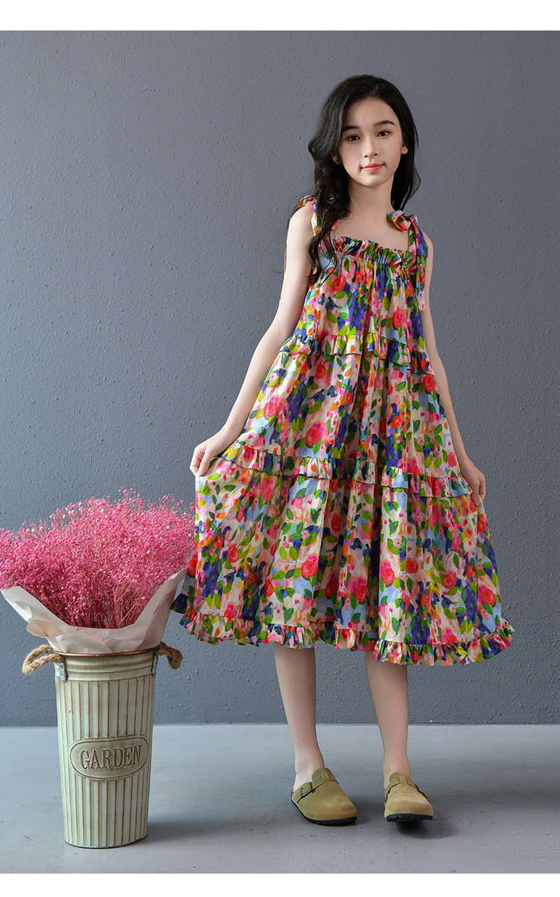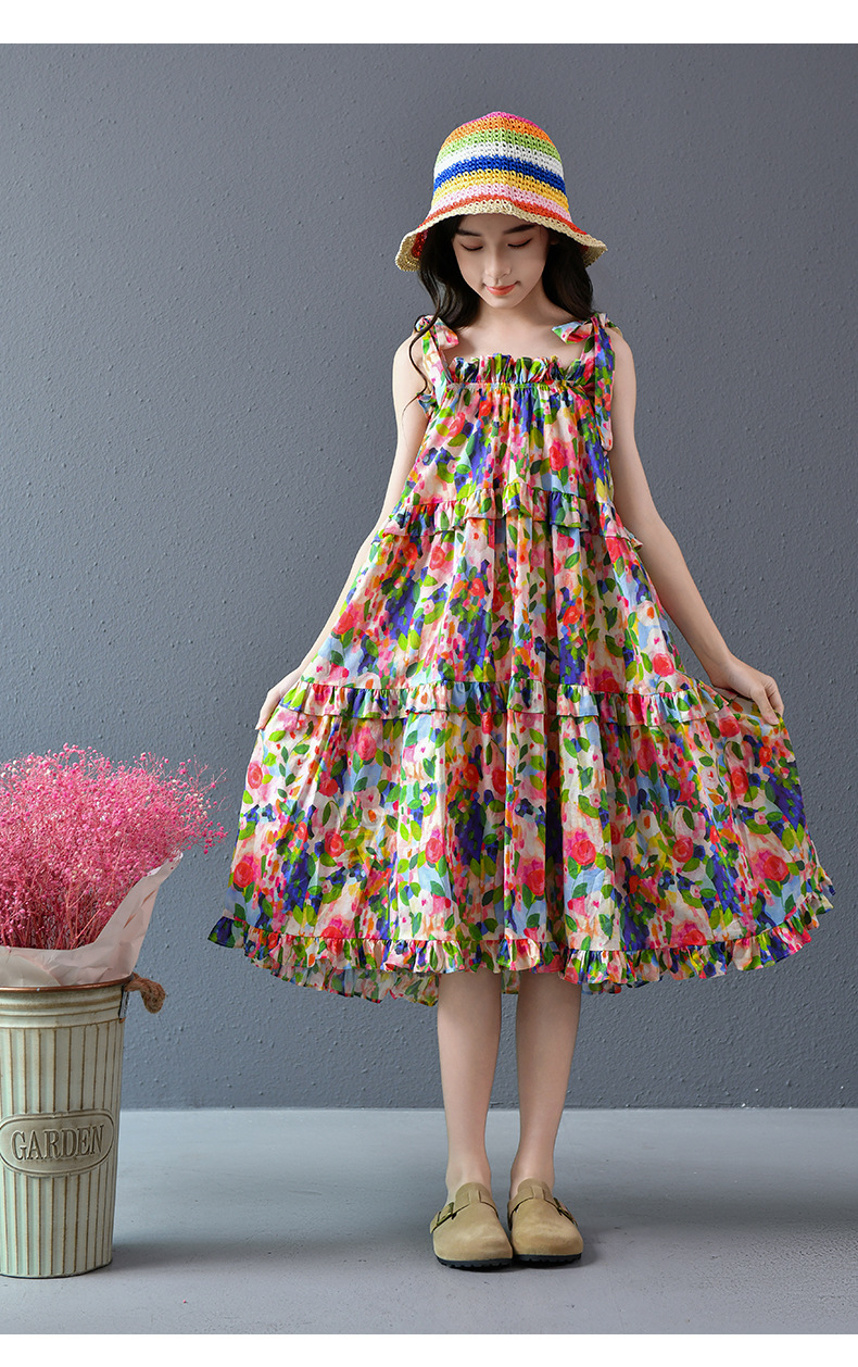 Nueva falda grande para niñas, vestido de flores, falda de tirantes para niñas de verano, 2025, nueva falda de playa para niños de verano