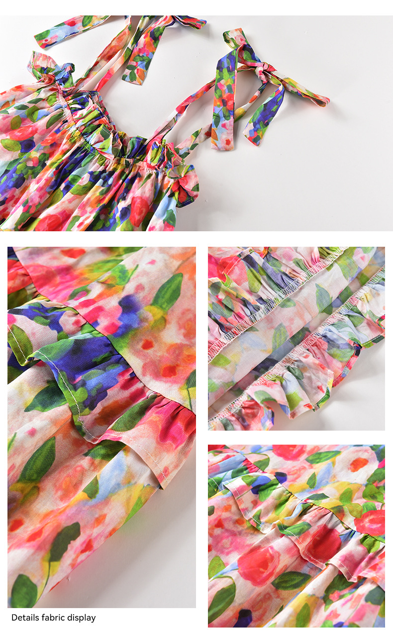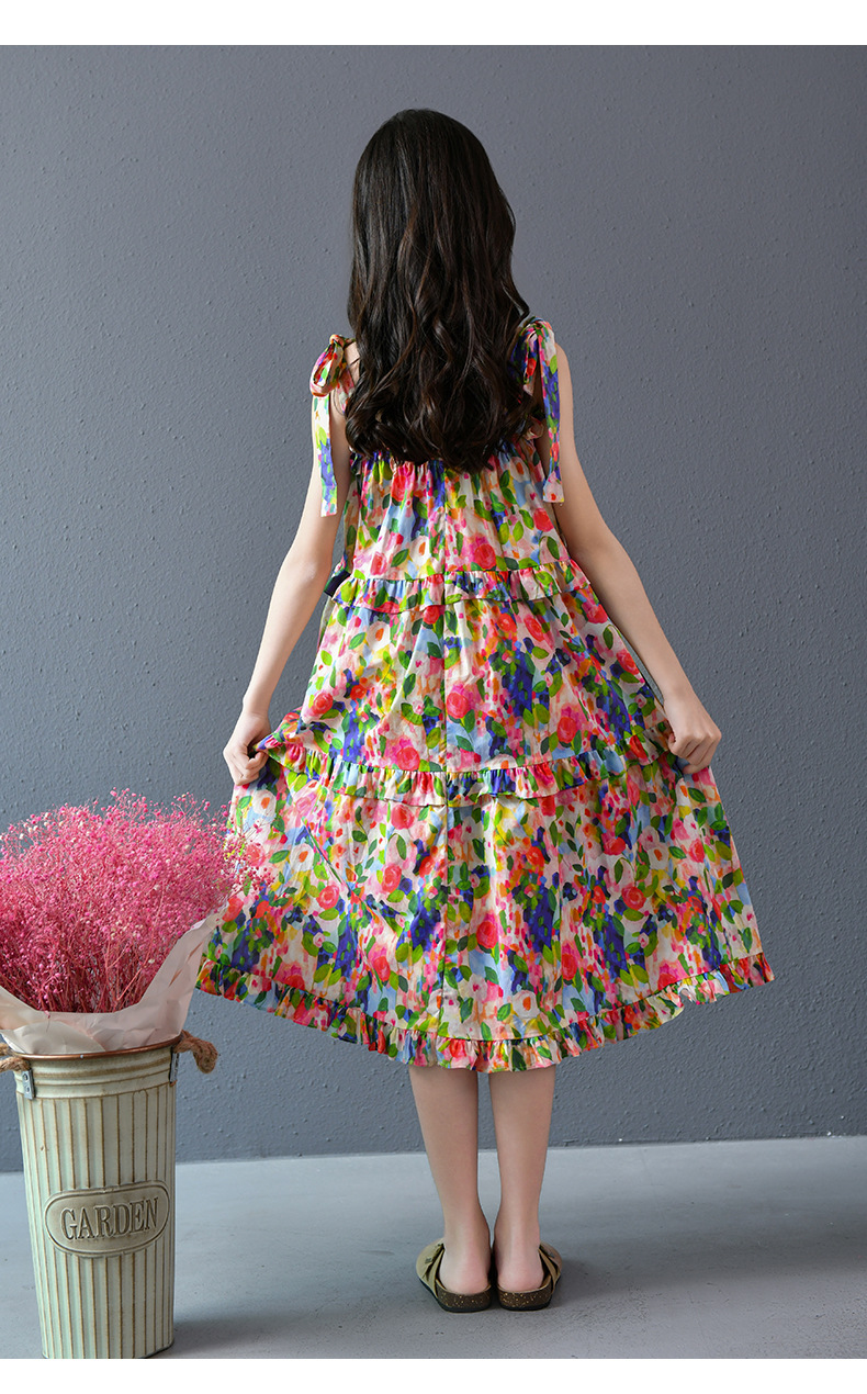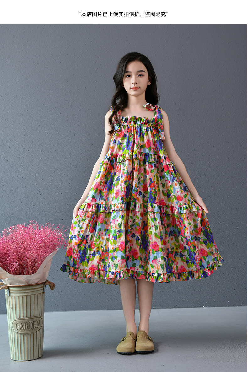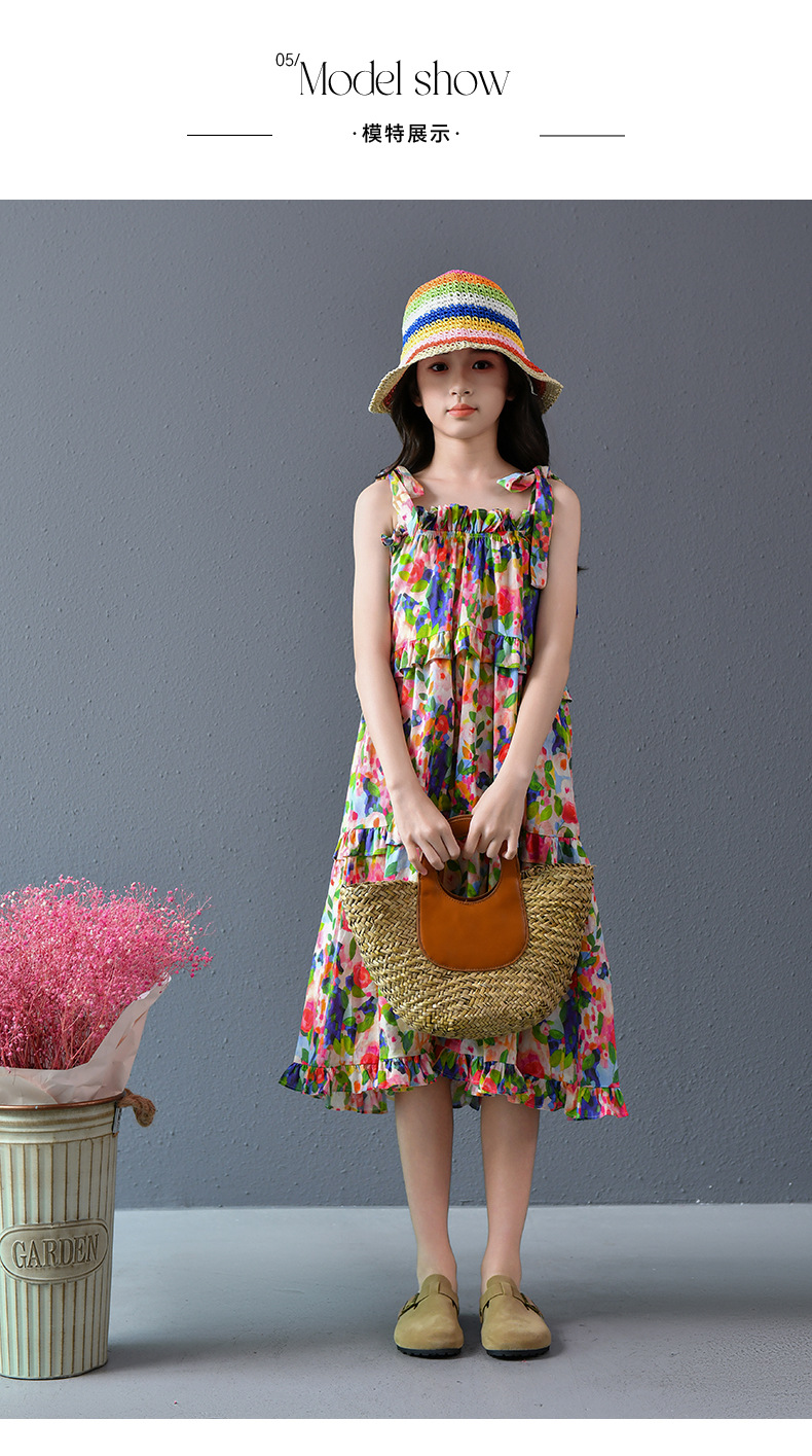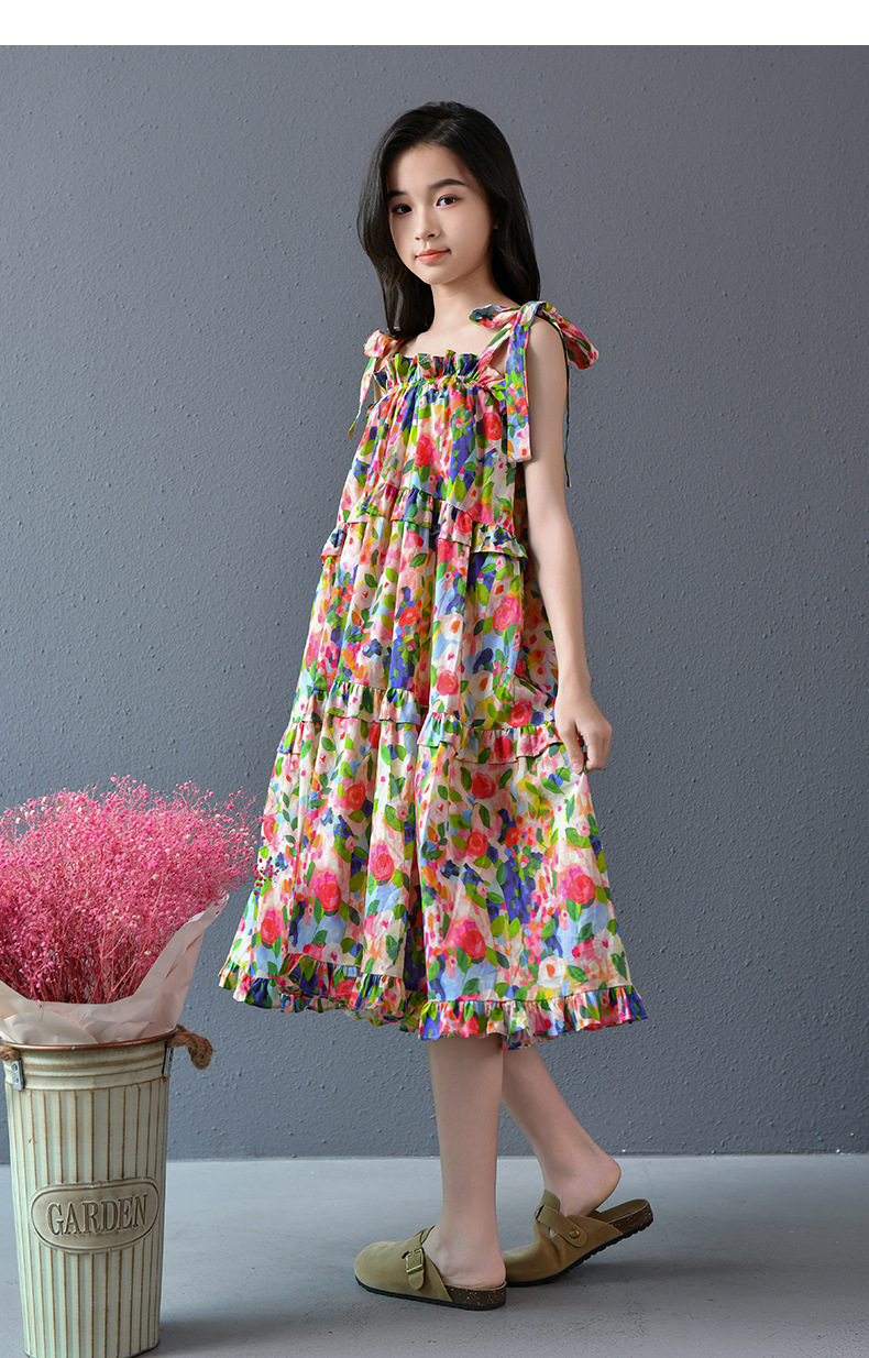 Nueva falda grande para niñas, vestido de flores, falda de tirantes para niñas de verano, 2025, nueva falda de playa para niños de verano