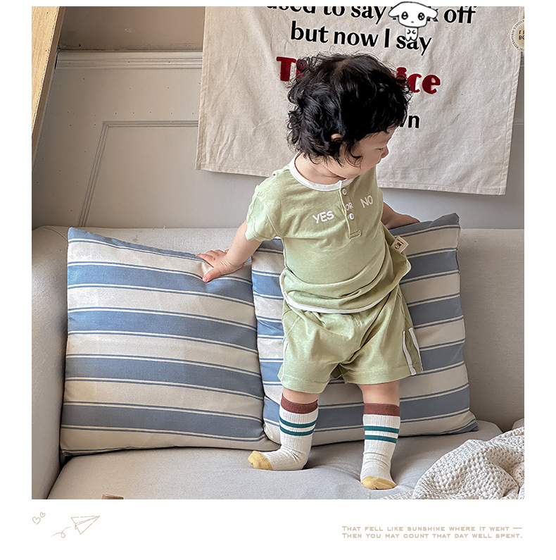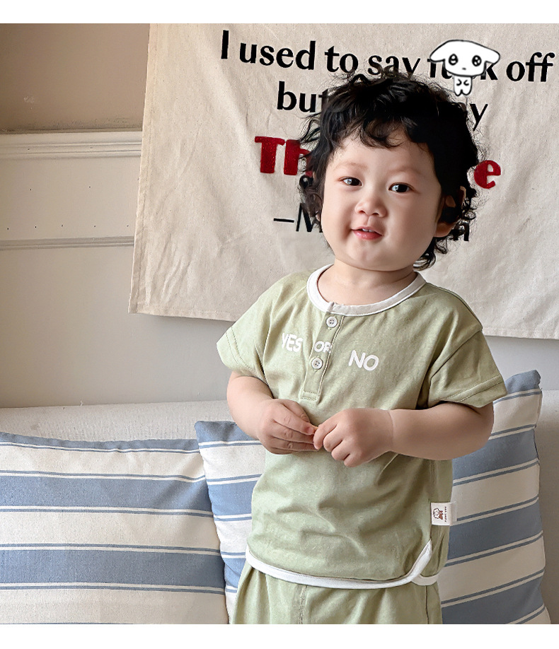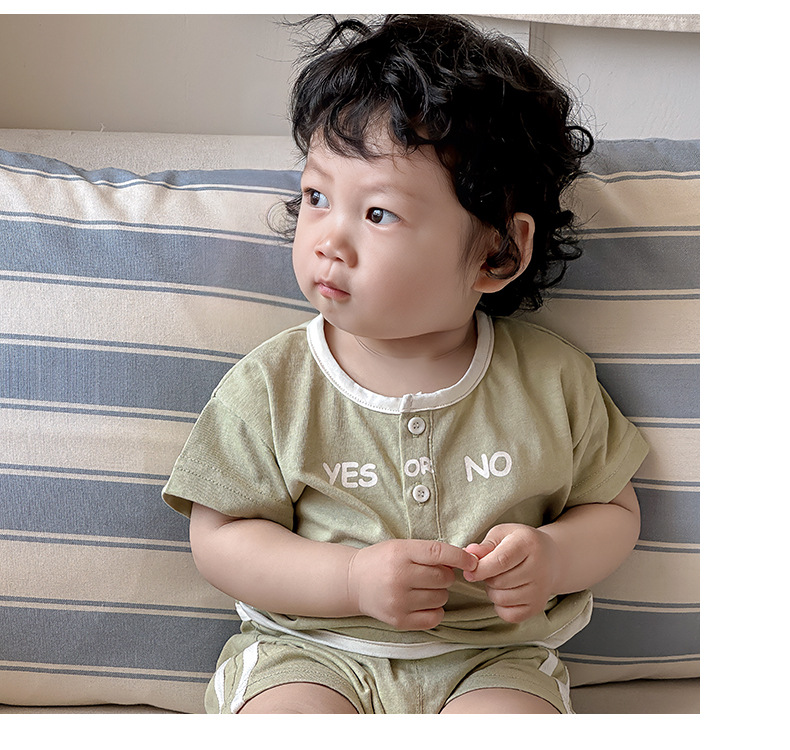 Verano 1-3 años tesoro masculino versión coreana estilo ins nuevo bebé ropa para niños letras pantalones cortos casuales de manga corta traje de dos piezas