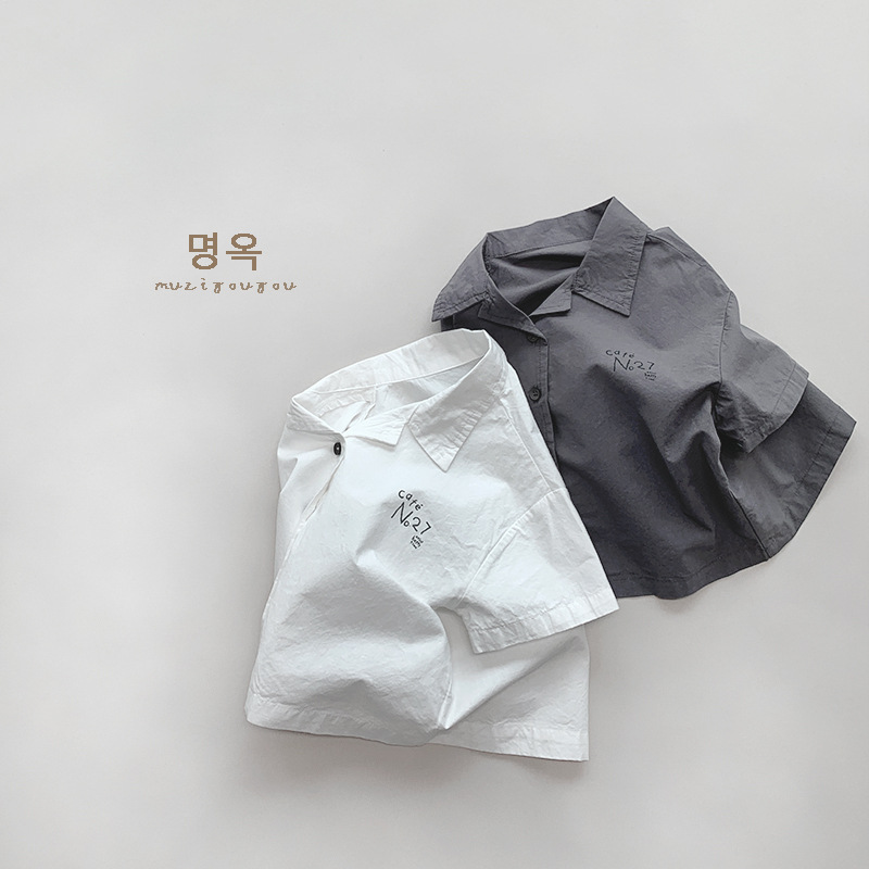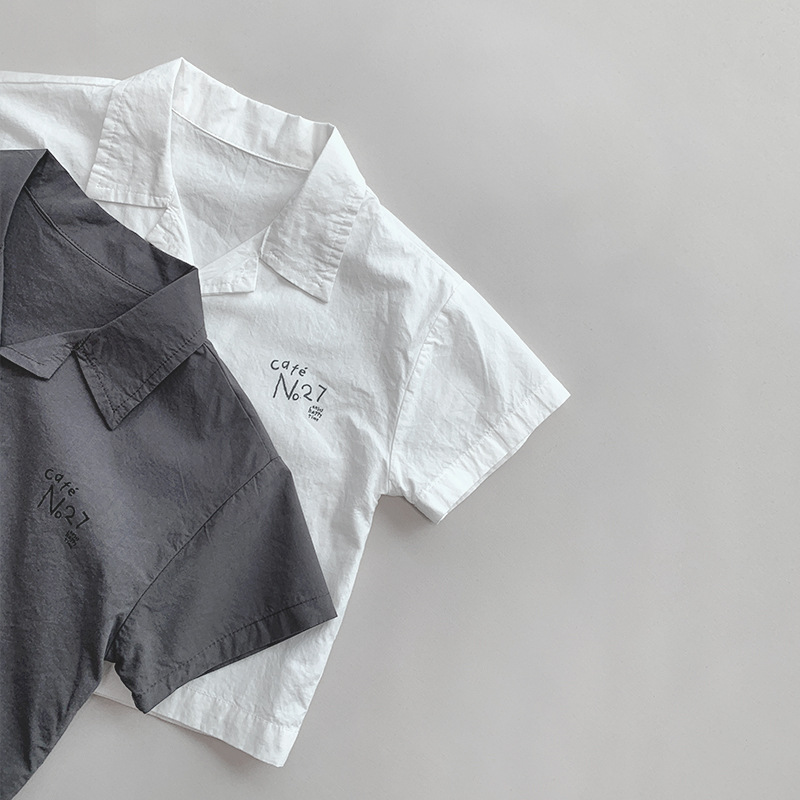 Camisa de algodón ligera 2025 verano nuevos niños y niñas estilo coreano personalidad japonesa tops de moda para niños ropa para niños