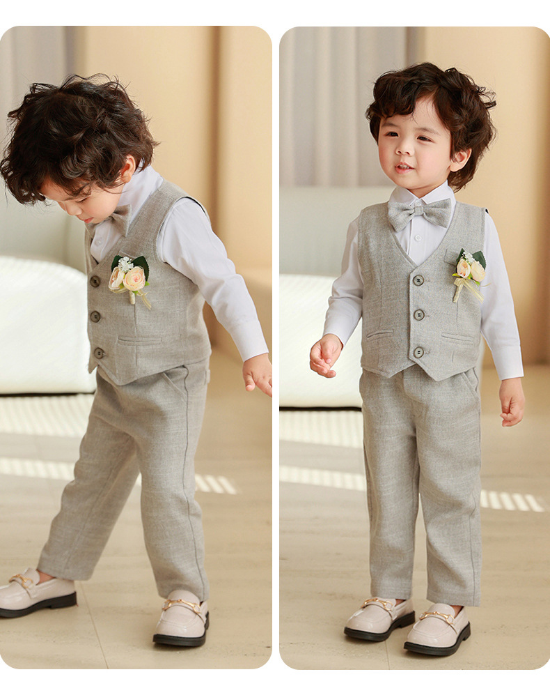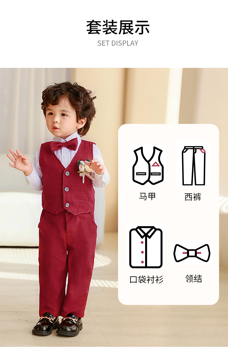 Conjunto de vestido de chaleco de primavera y otoño para niños Anfitrión del cumpleaños del bebé Traje de interpretación de piano de niña de las flores para niños