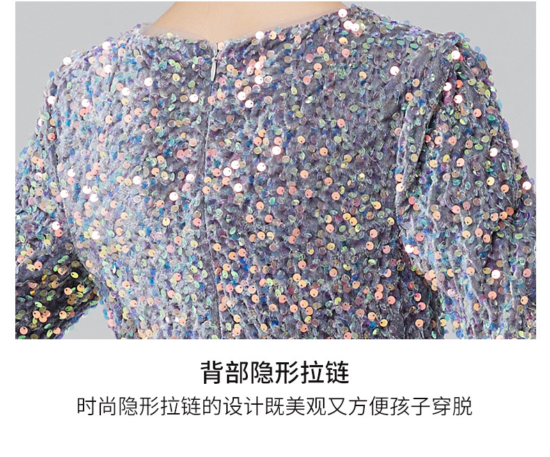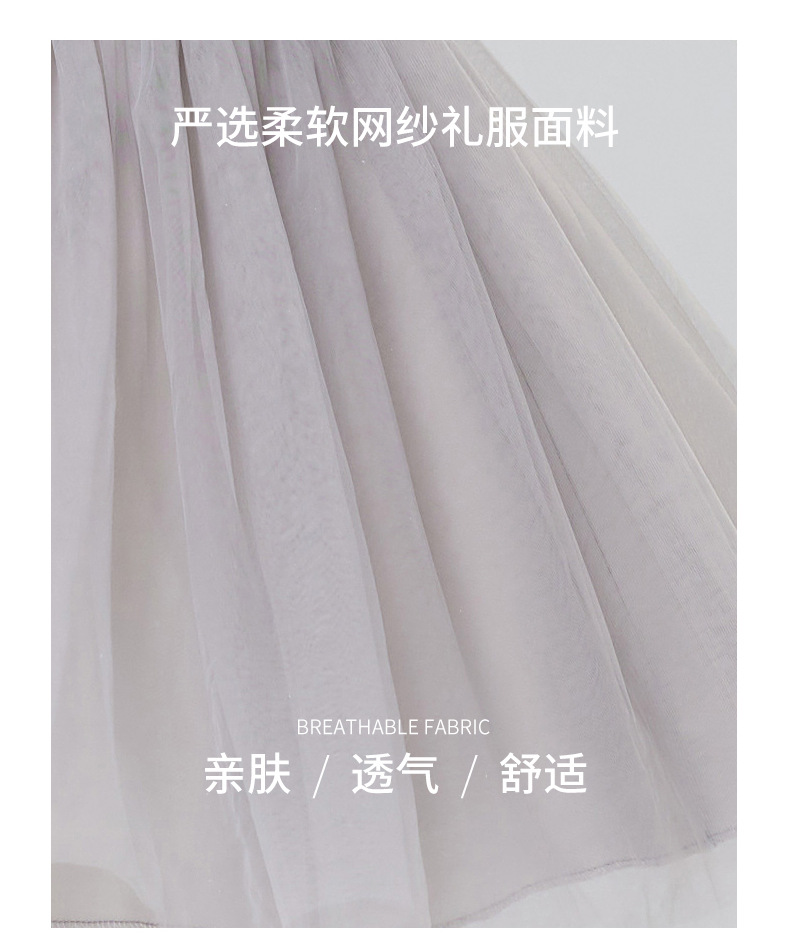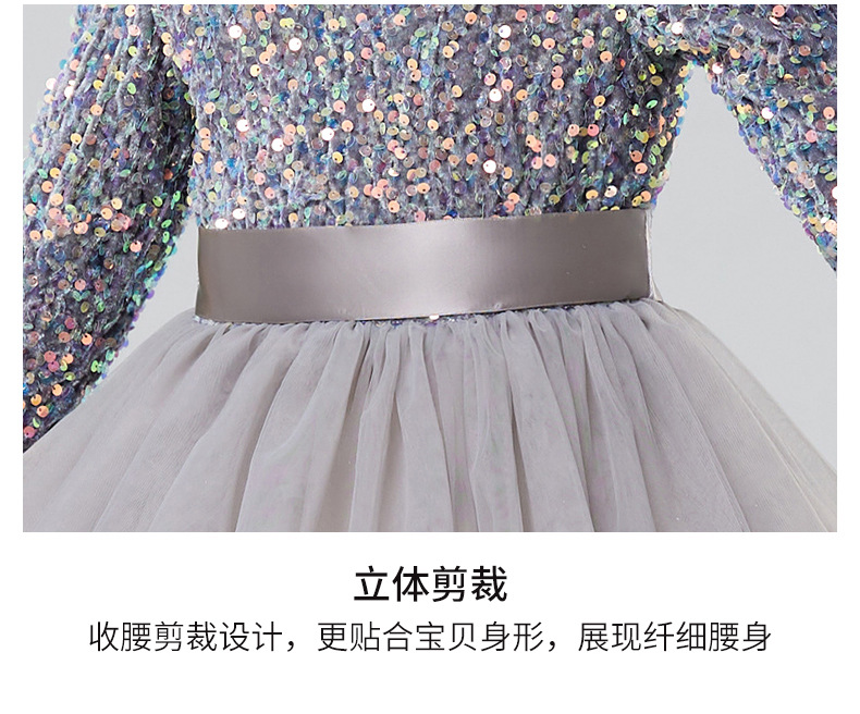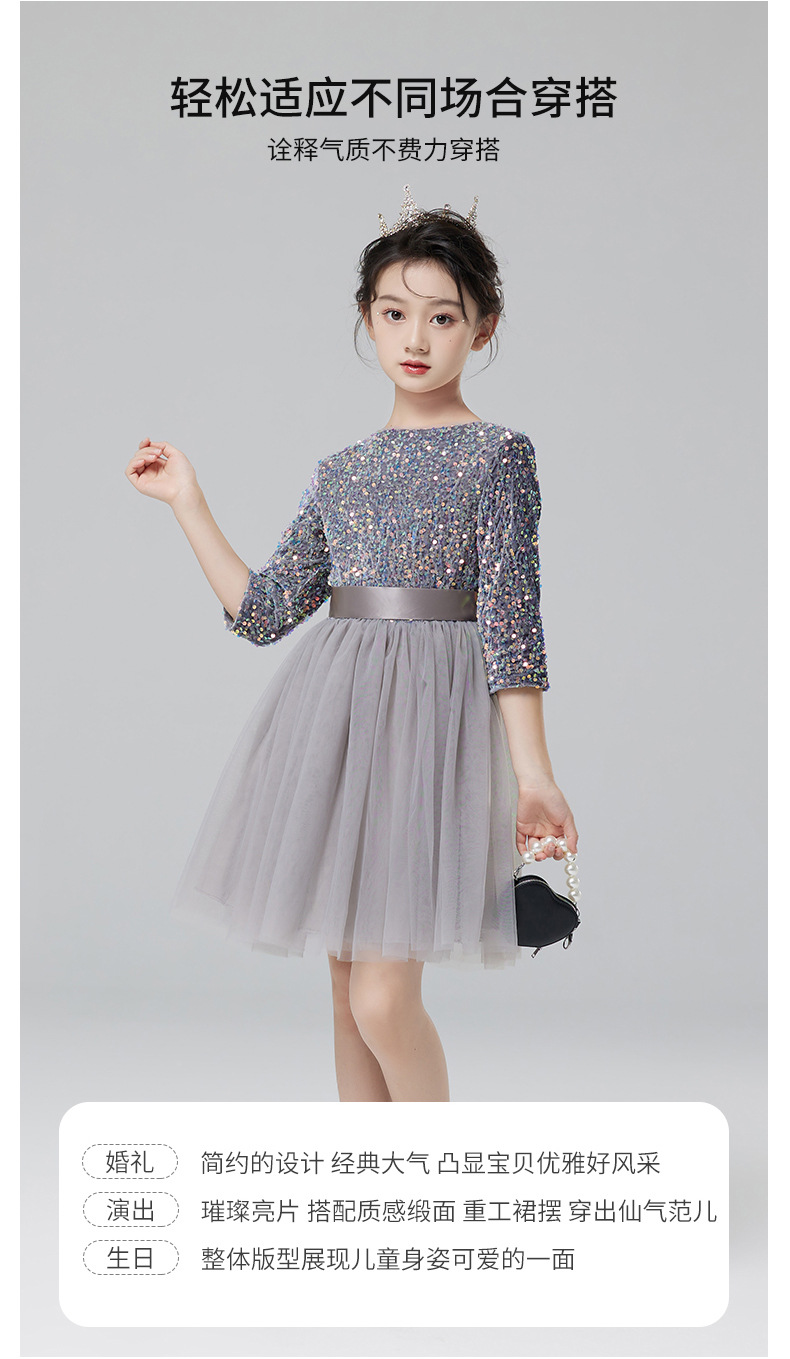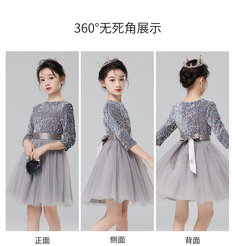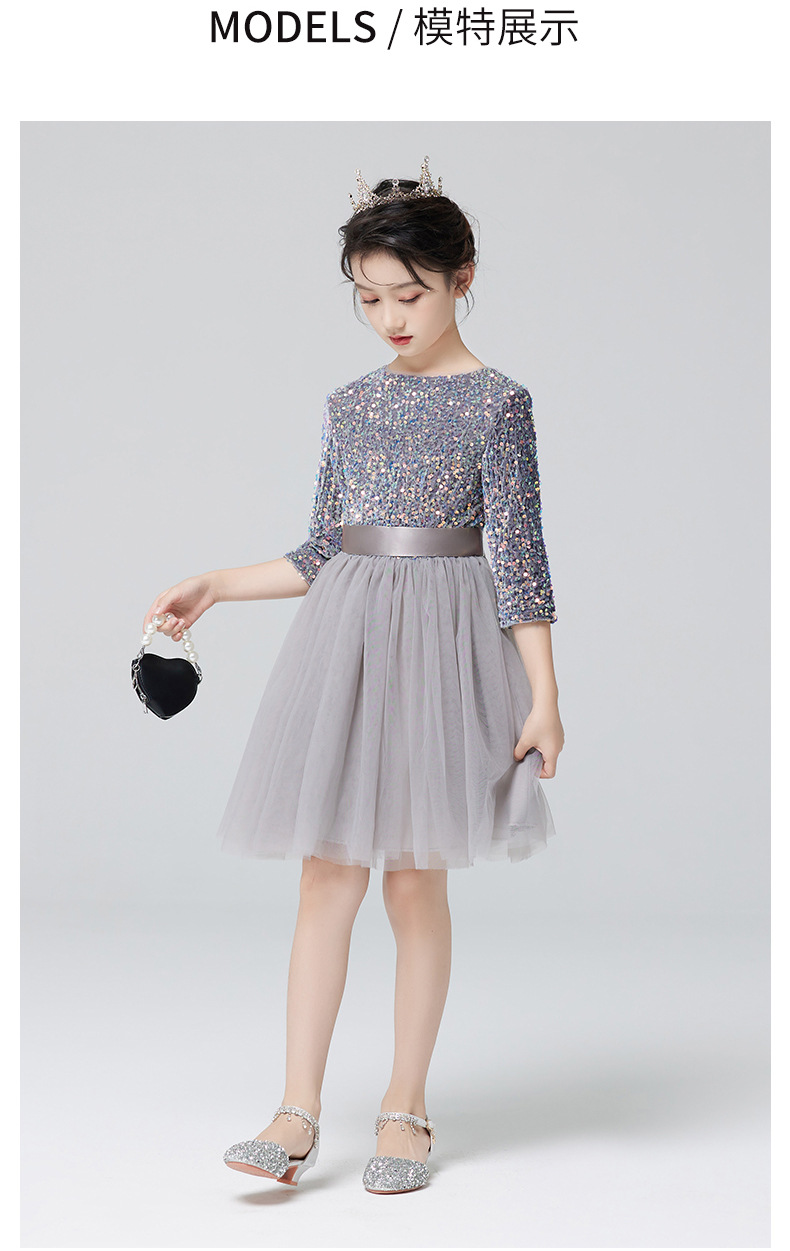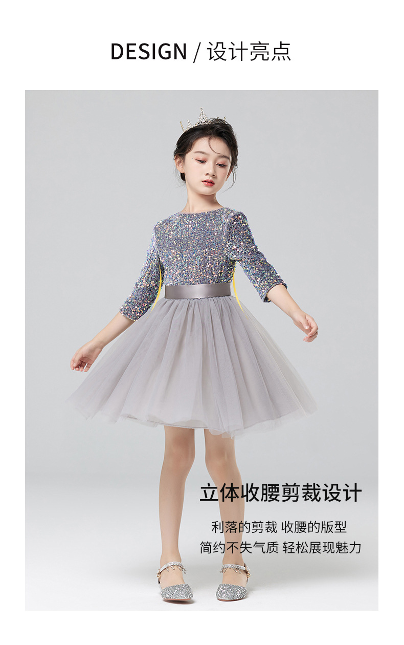 Vestidos para niños, vestidos de princesa de alta gama para niñas, vestidos de interpretación de piano gris, vestidos cortos de manga larga para niños