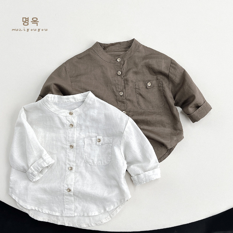 Ramio algodón camisa de los niños ropa de cuero de excursión de los niños de estilo coreano de aire acondicionado respirable ligero cardigan ropa de protección solar de las niñas de moda