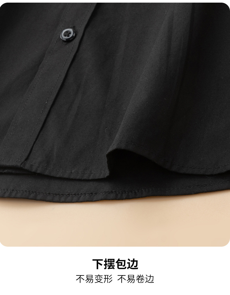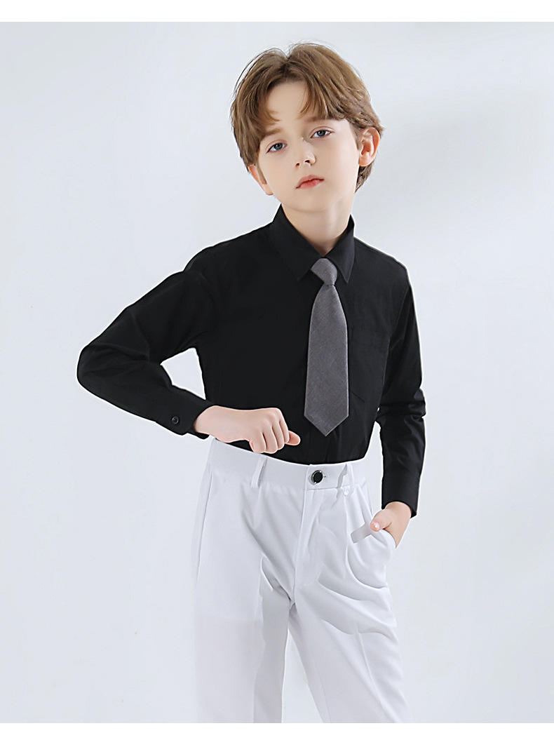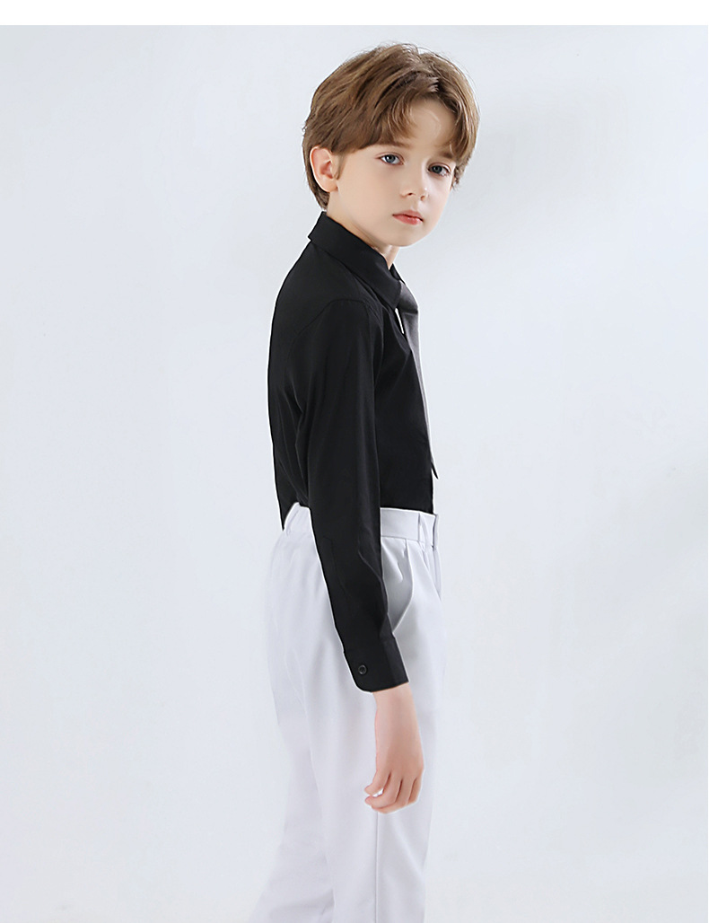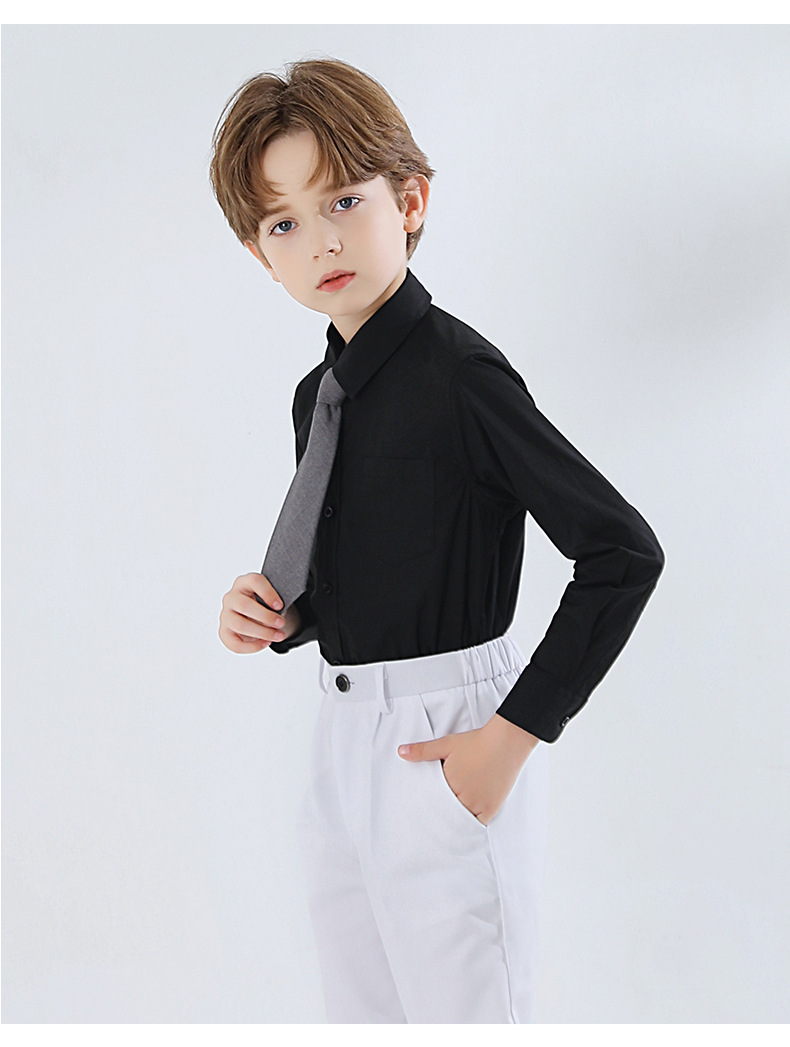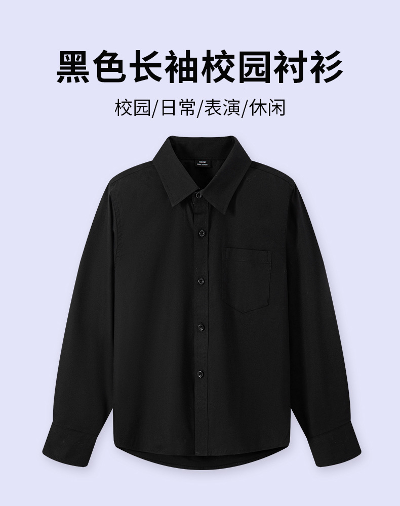 Camisas para estudiantes y niños Camisas negras de manga larga de algodón puro con cuello cuadrado para niños