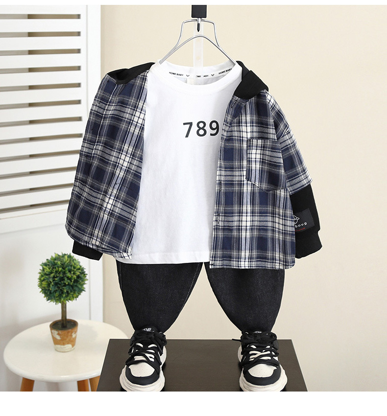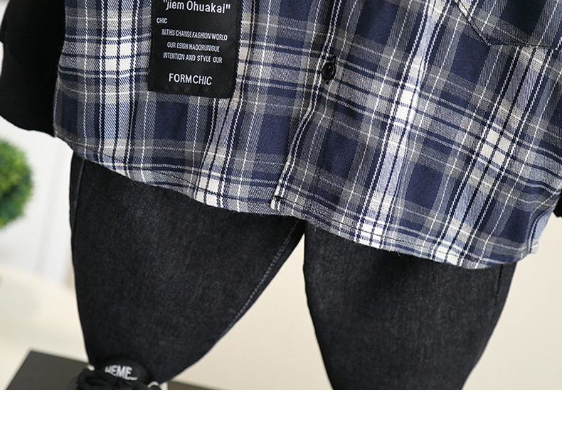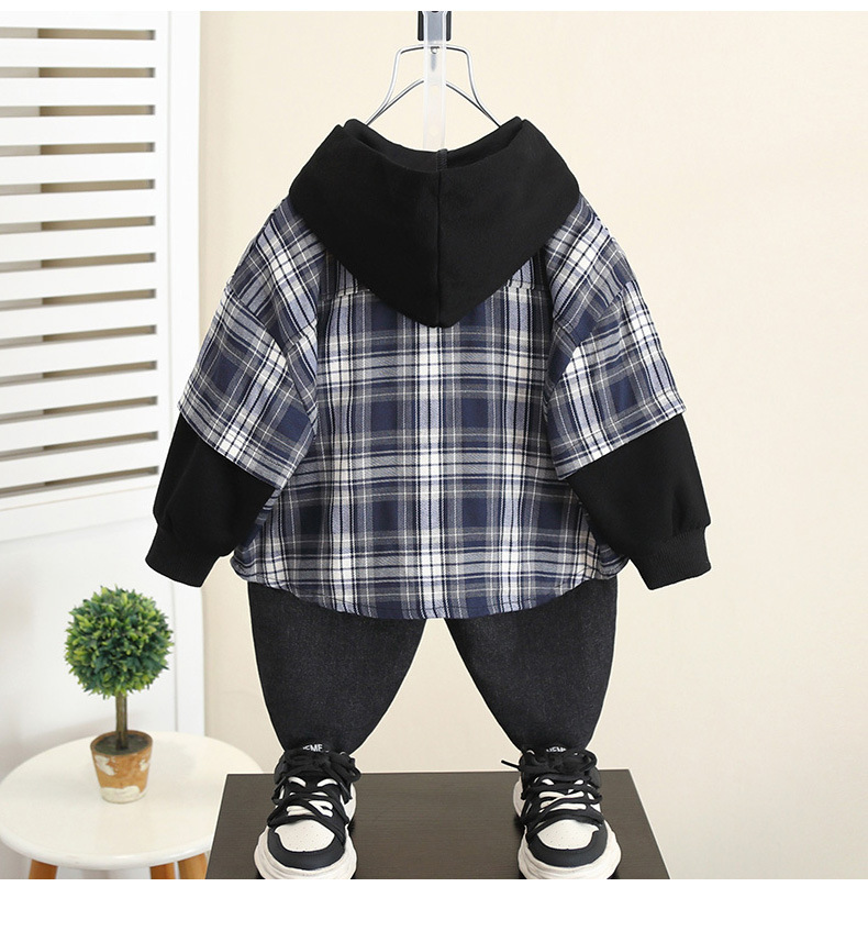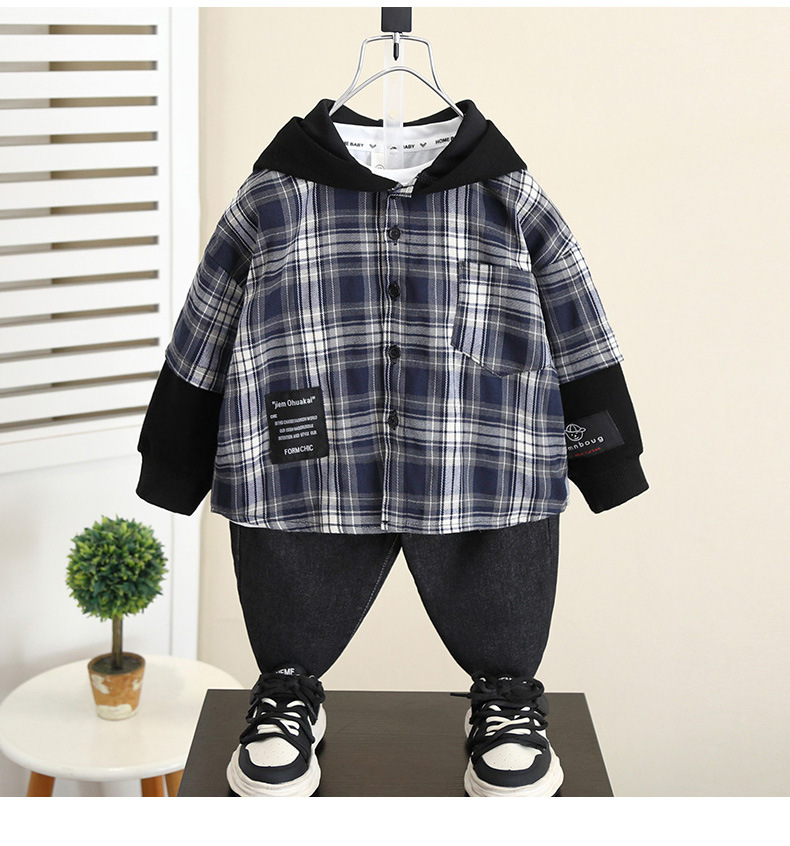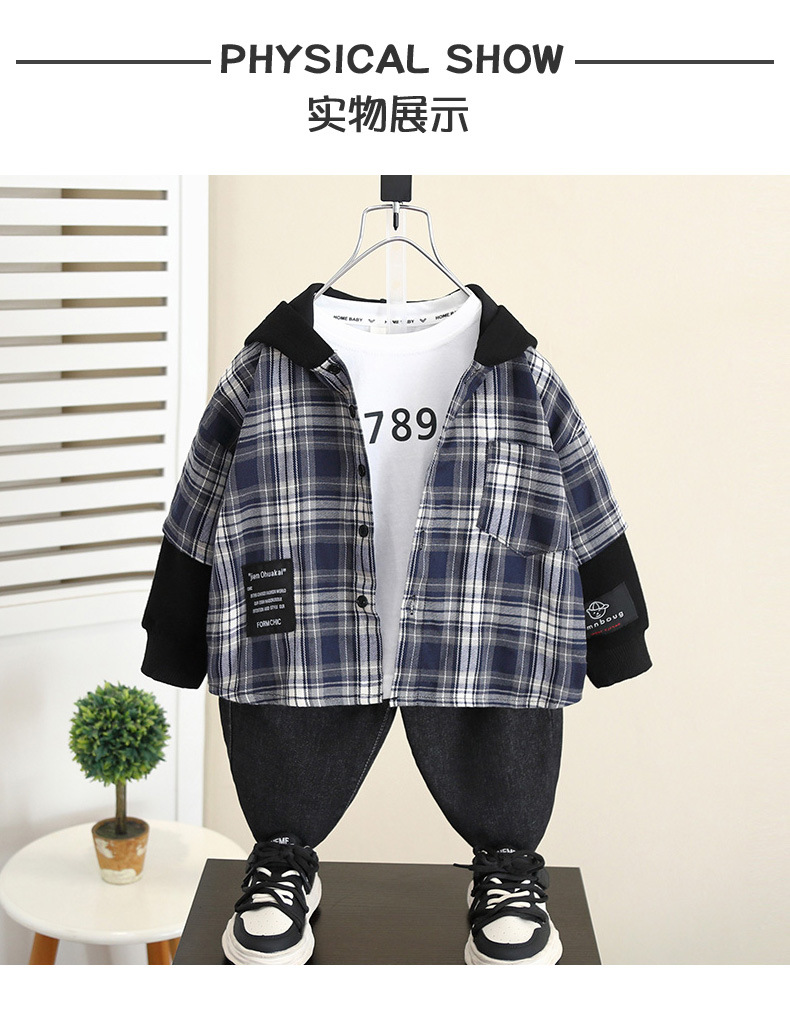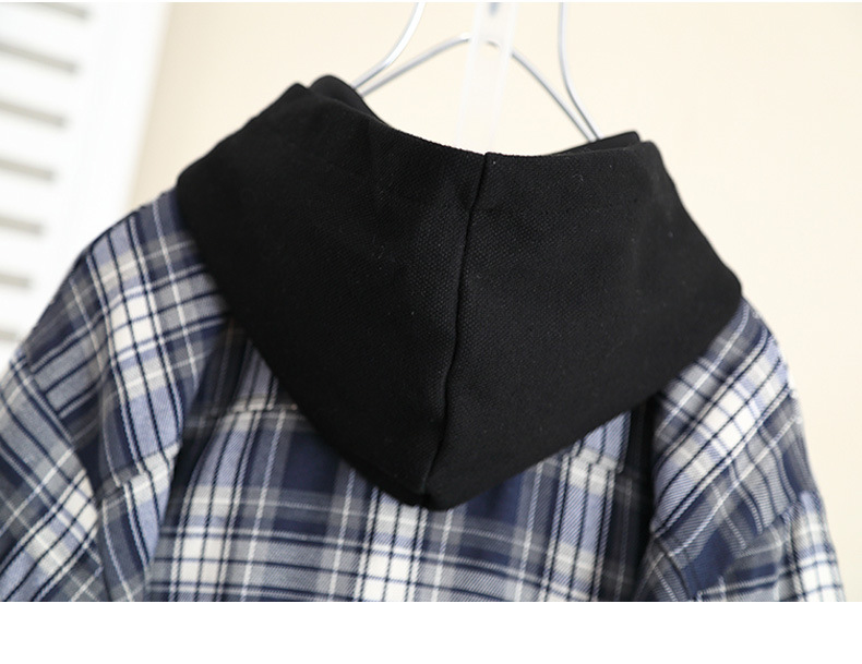 5989 Chaqueta de camisa con capucha de otoño para niños 2024 Nueva camisa a cuadros de manga larga de primavera y otoño para niños