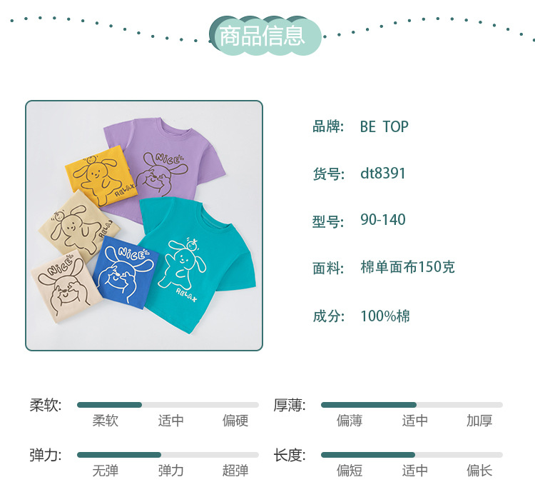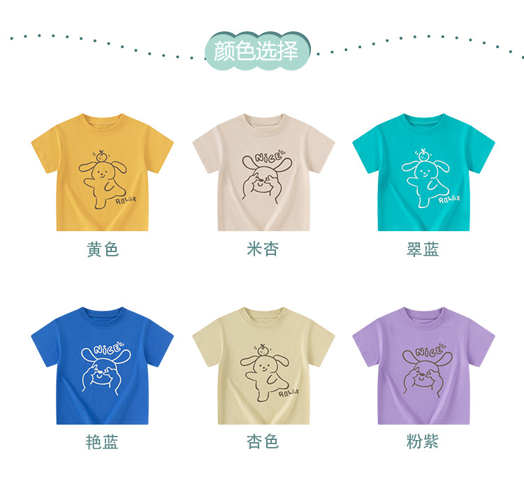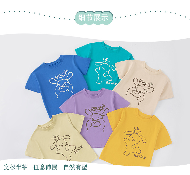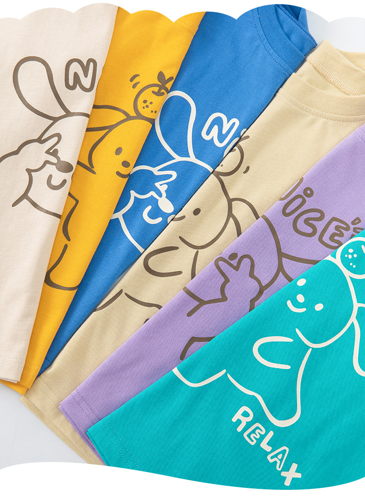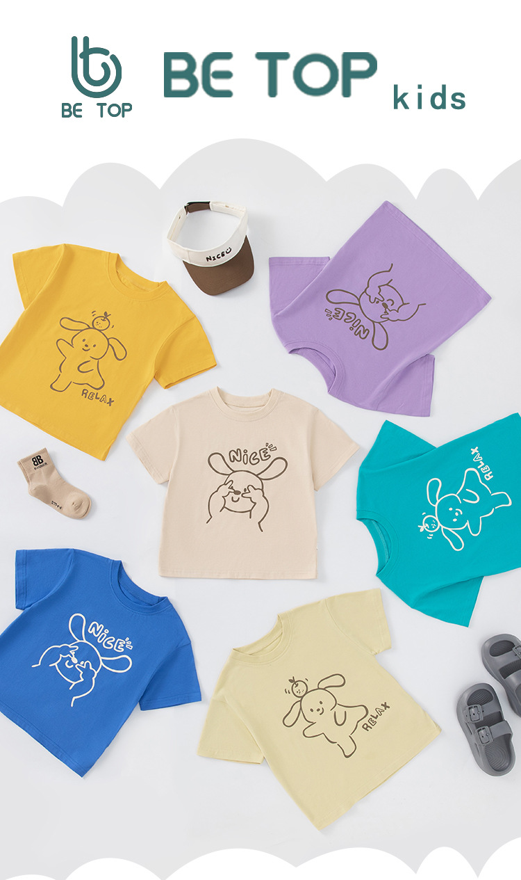 Betop verano nueva ropa para niños camiseta de manga corta versión coreana de dibujos animados para niños conejo niño ropa de color sólido cabello de una pieza