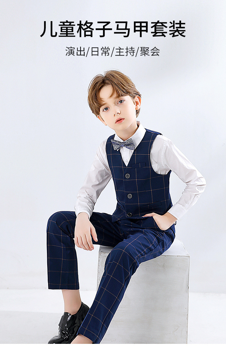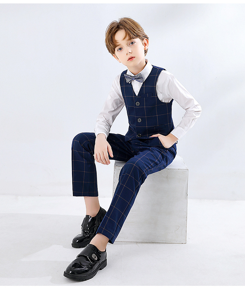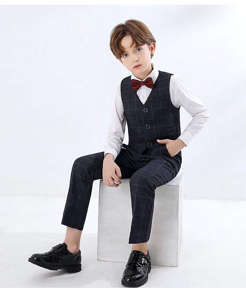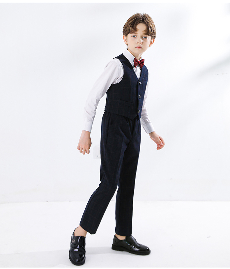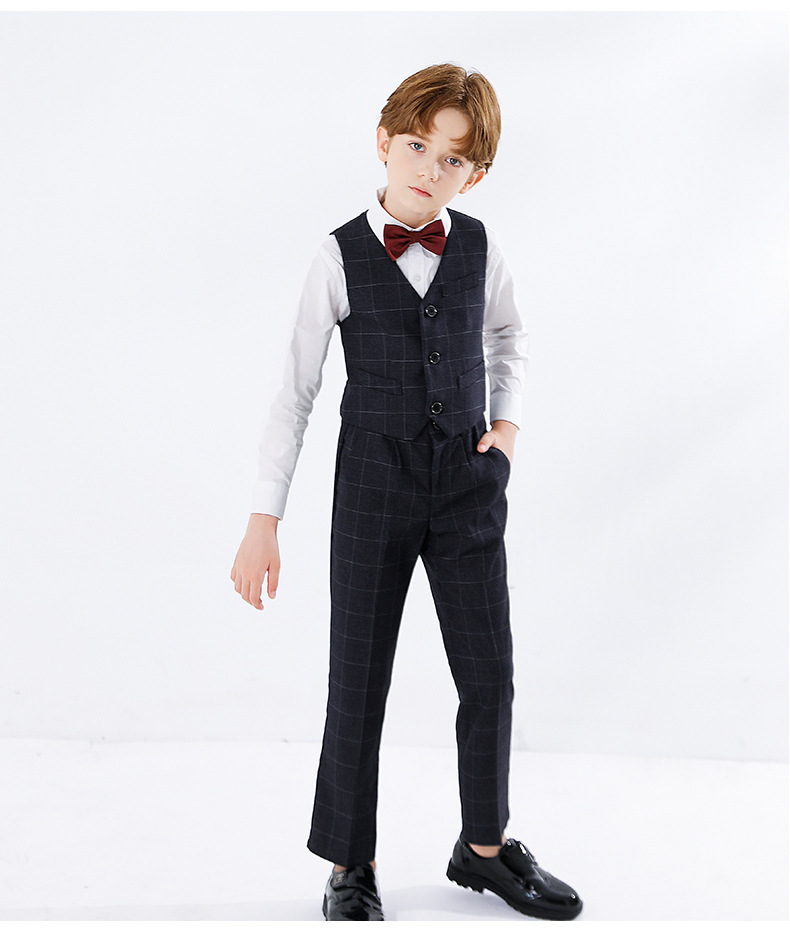 Flor de niño chaleco vestido traje de los niños pequeño traje de estilo británico de piano traje anfitrión