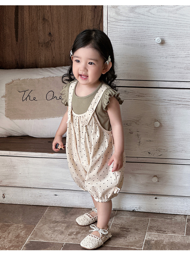 Youhe ropa para niños coreanos mono de verano 1-3 años bebé de estilo extranjero lunares lindo bebé traje de correa de clase A